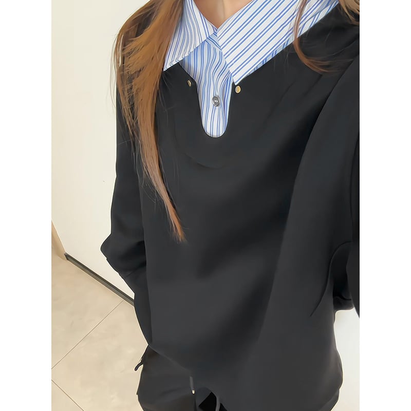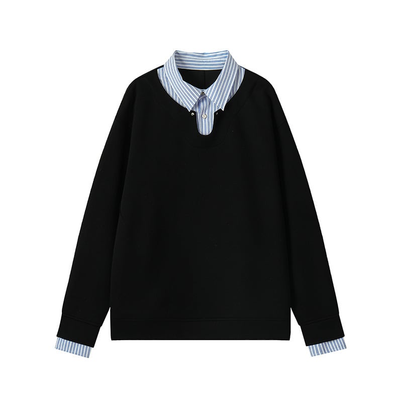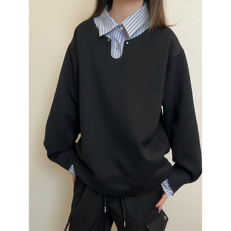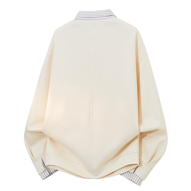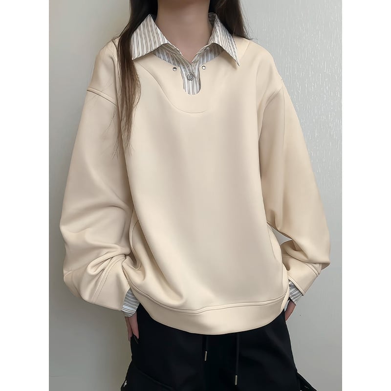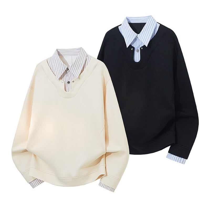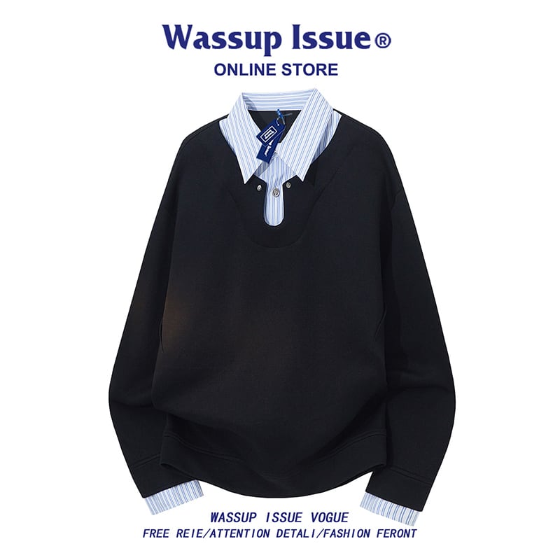 ♥シャツカラー、スウェットのくつろぎ!【WSシリーズ】★POLOシャツ★ ユニセックス 2color トップス メンズ フェイクレイヤード 縦縞 縞模様