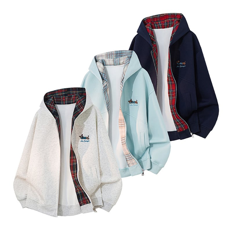 ♥わんこ&チェックのアウター!【WSシリーズ】★アウター★ ユニセックス 3color ジャケット メンズ チェック柄 犬 犬柄