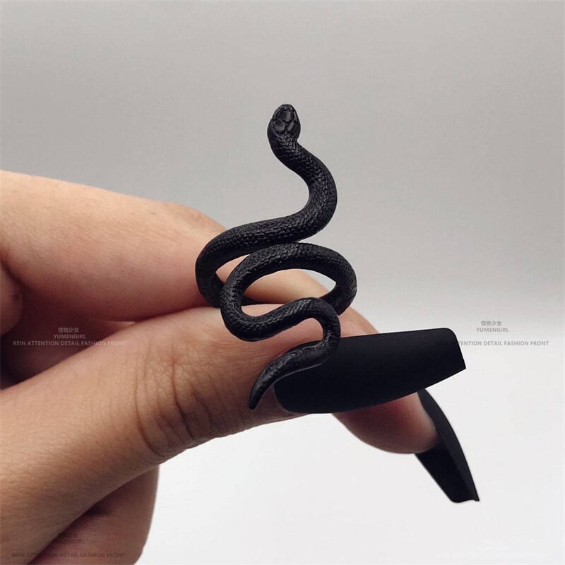 ✿黒蛇が纏う、闇夜のきらめき!【GWSNシリーズ】★指輪★ 飾り物 アクセサリー 開け口調整可 小物 蛇