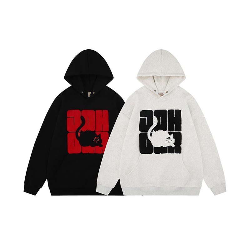 ♥裏起毛可愛い猫柄パーカー!【JINXIUシリーズ】★パーカー★ 裏起毛 ユニセックス 2color トップス 猫柄 猫 ねこ ネコ
