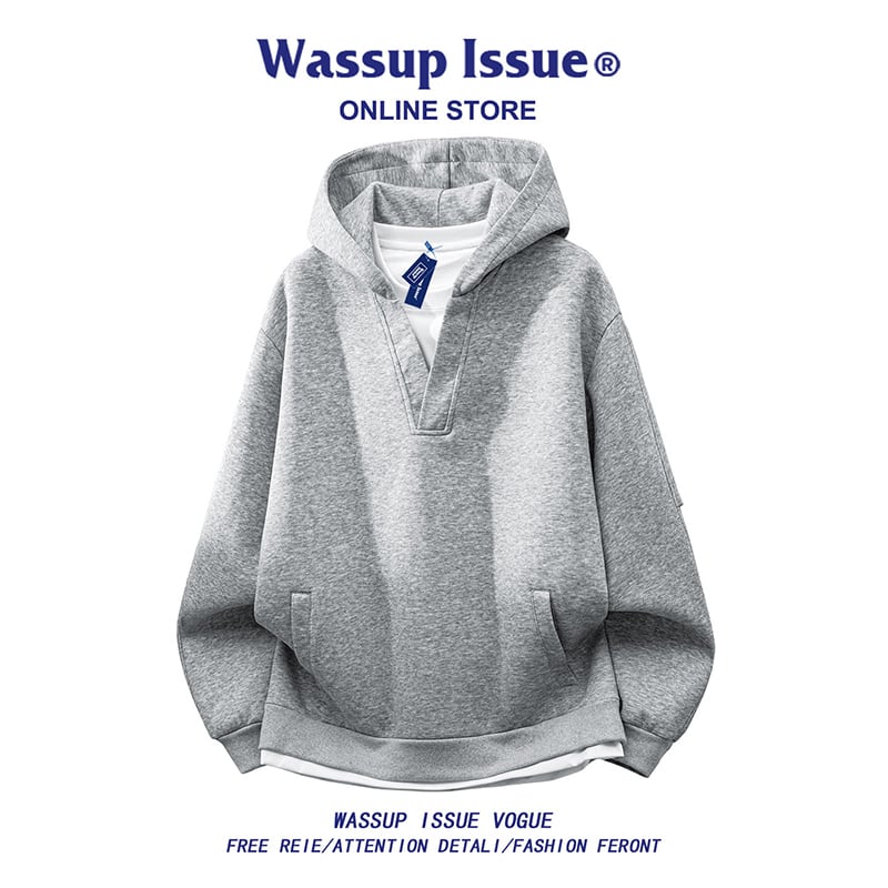♥裏起毛フェイクレイヤードパーカー!【WSシリーズ】★パーカー★ 裏起毛 ユニセックス 3color トップス メンズ フェイクレイヤード Vネック
