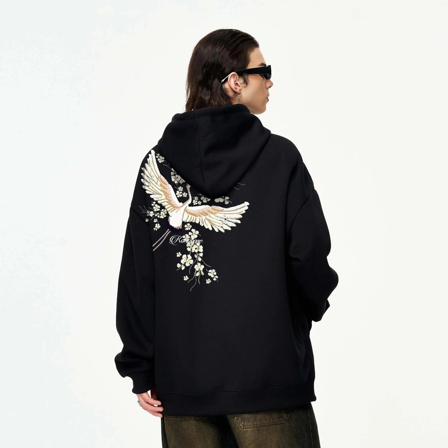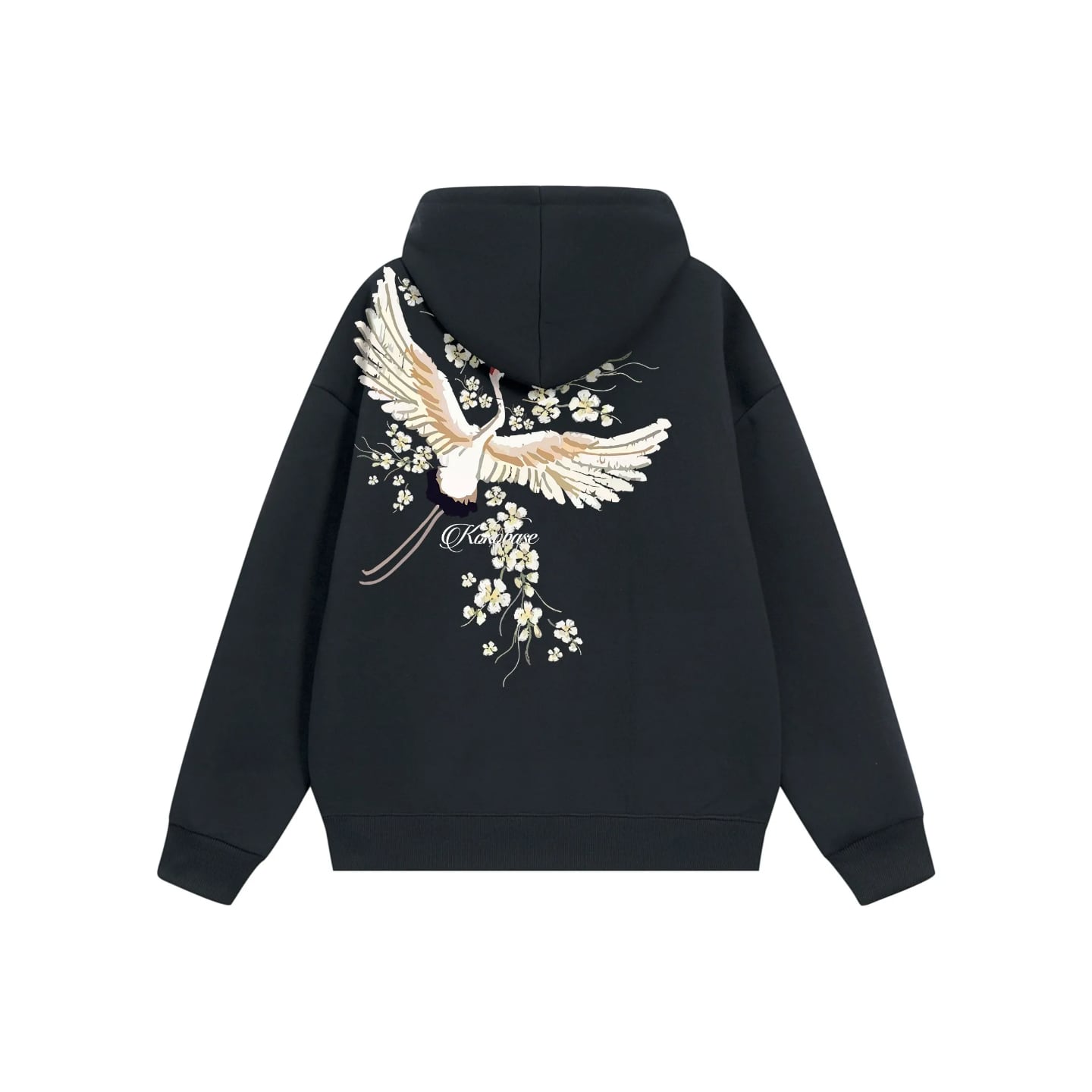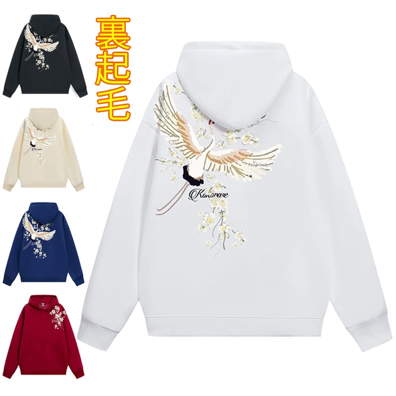♥裏起毛鶴柄パーカー!【ImcTLシリーズ】★チャイナ風トップス★ 裏起毛 ユニセックス 5color パーカー メンズ レディース 鶴 つる