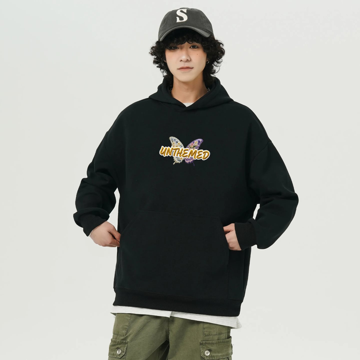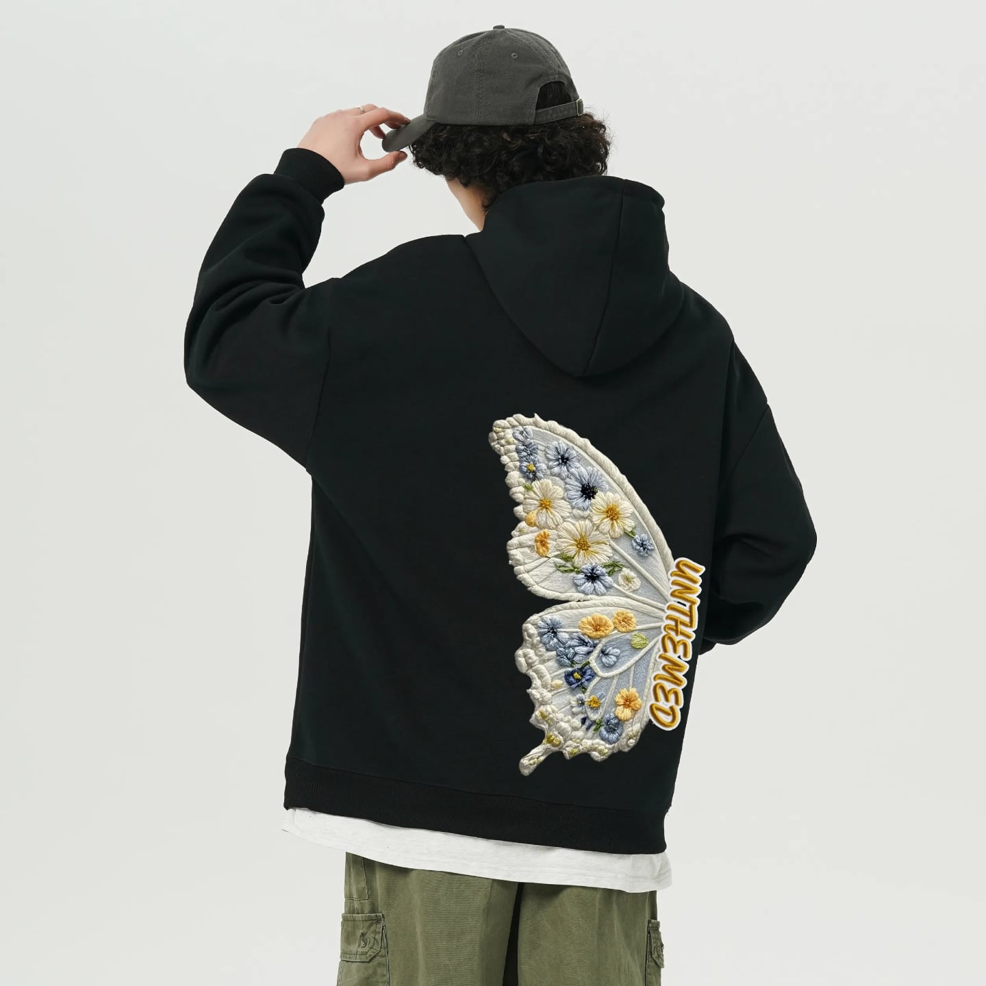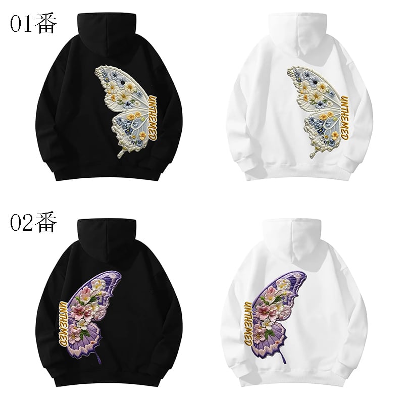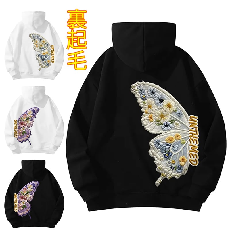 ♥裏起毛蝶々パーカー!【ImcTLシリーズ】★チャイナ風トップス★ 裏起毛 ユニセックス 2color パーカー メンズ レディース 蝶々 花柄