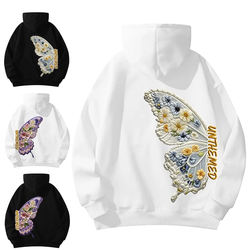 ♥蝶々フラワーレターパーカー!【ImcTLシリーズ】★チャイナ風トップス★ ユニセックス 2color パーカー メンズ レディース 蝶々 花柄