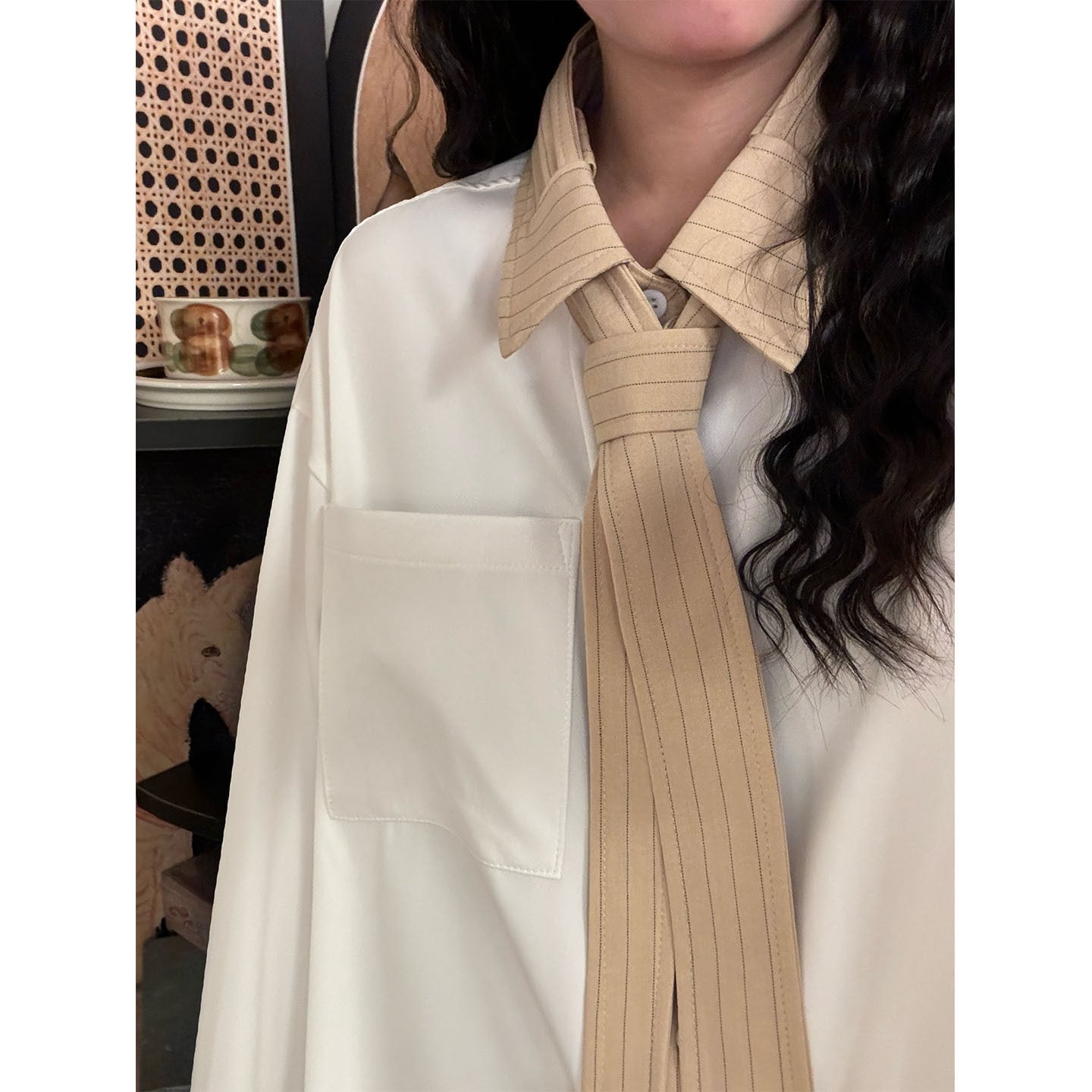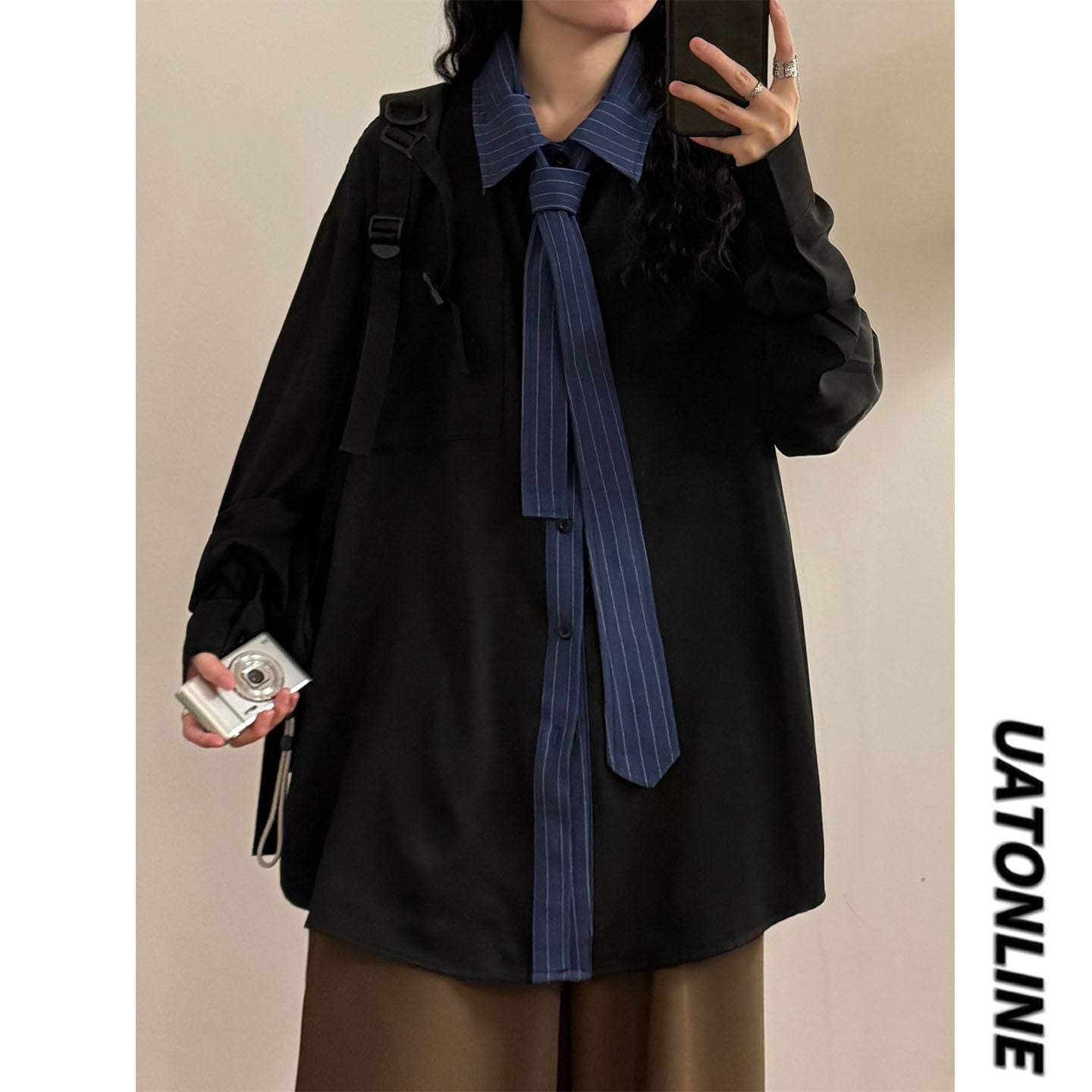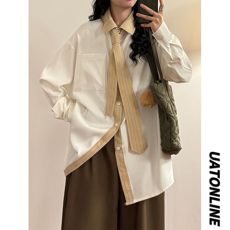 ♥ネクタイ付きシャツ!【UATONLINEシリーズ】★シャツ★ ユニセックス 2color トップス メンズ カジュアル 縦縞 縞模様