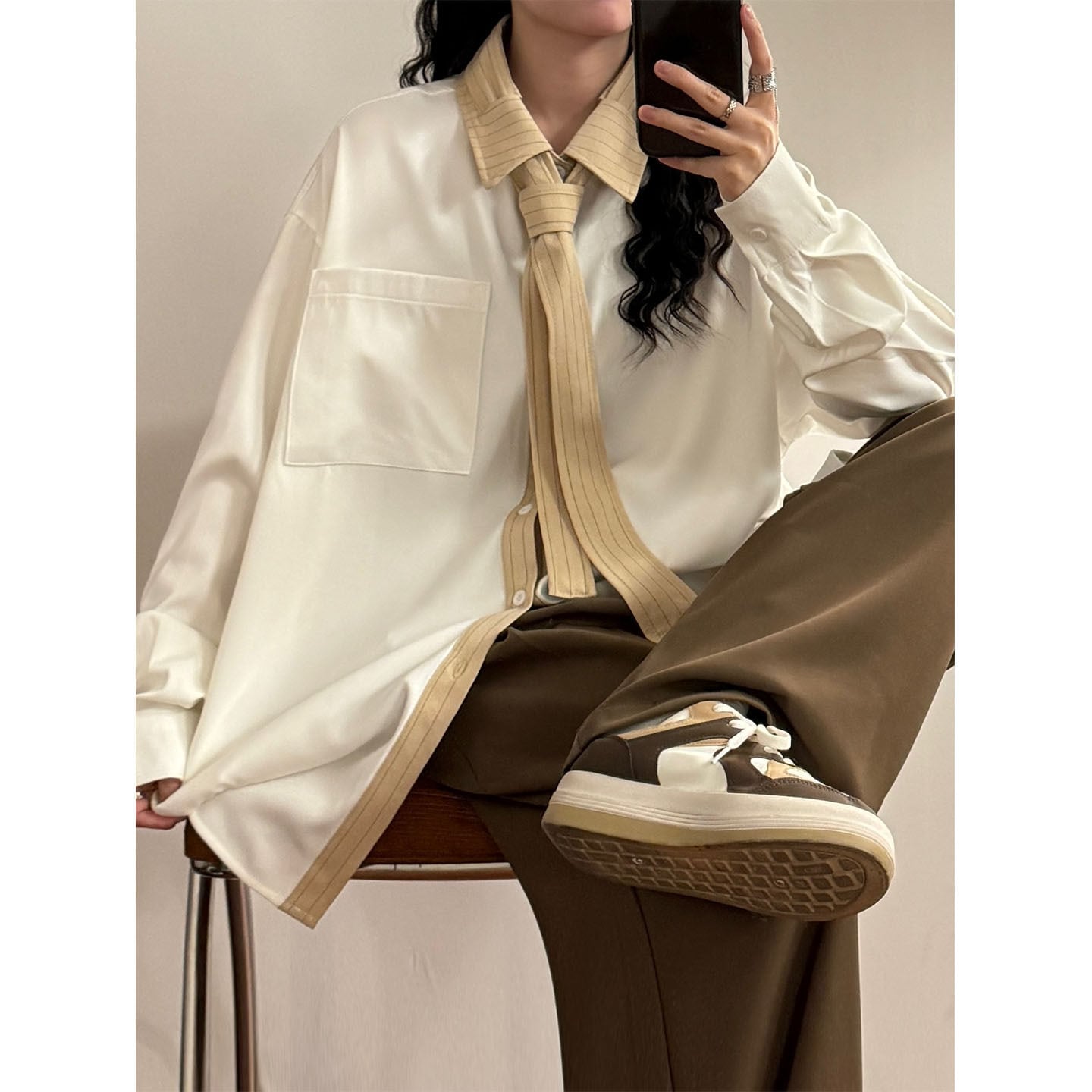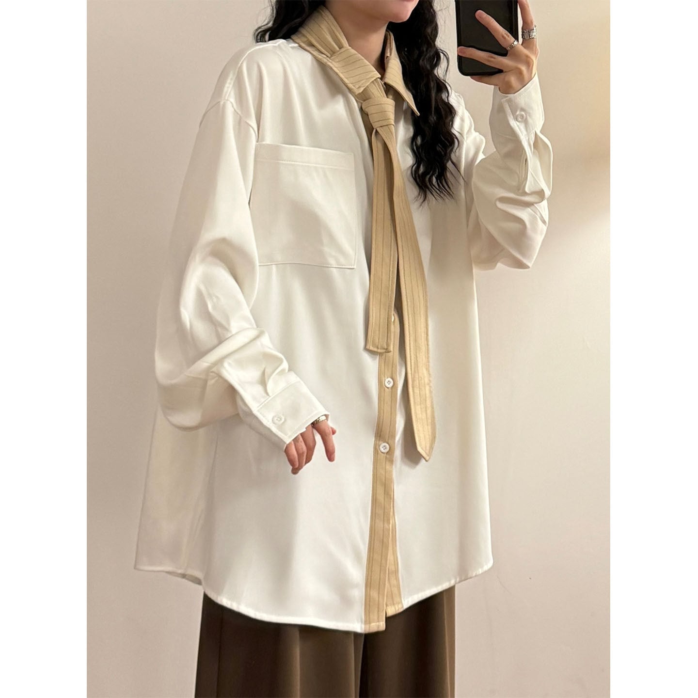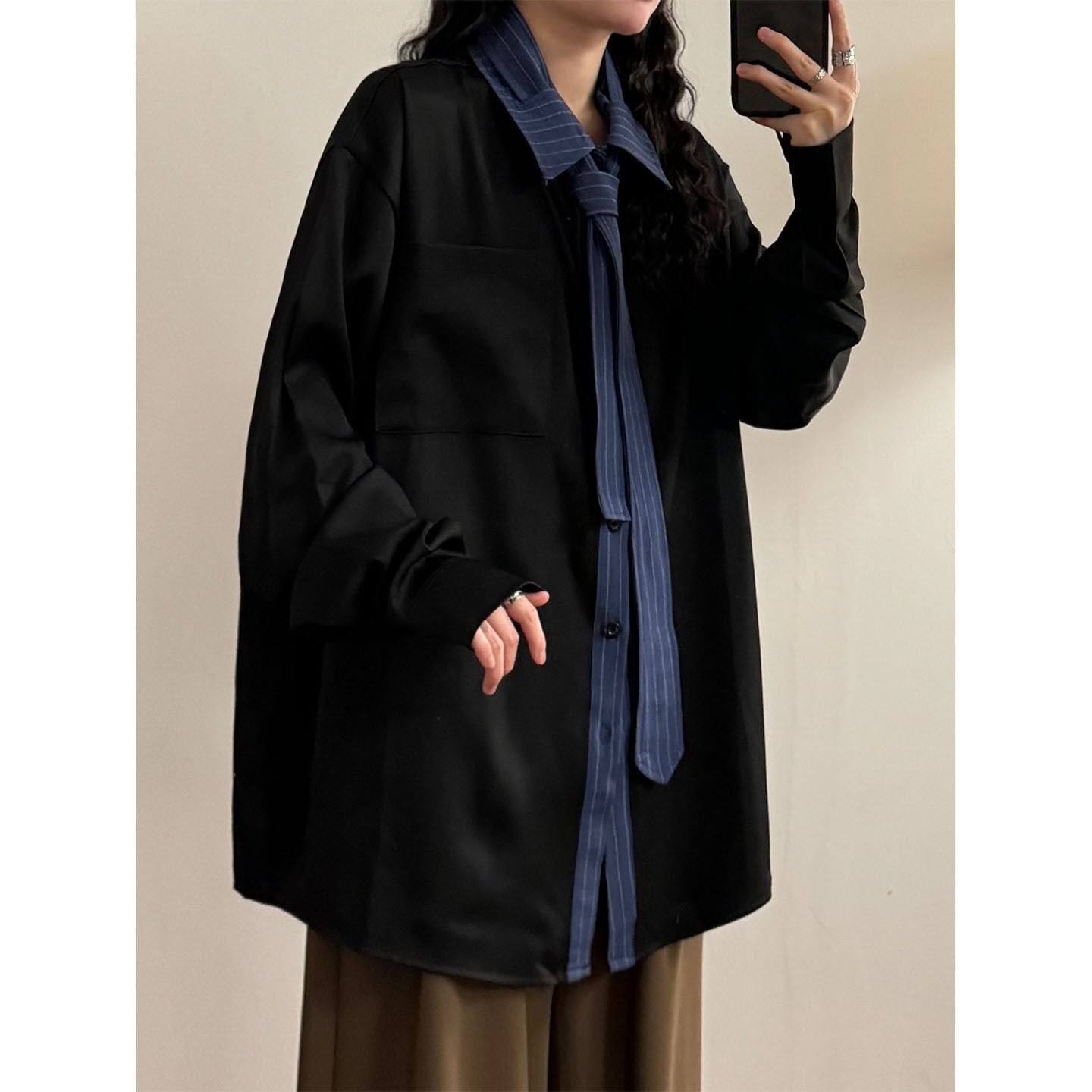 ♥ネクタイ付きシャツ!【UATONLINEシリーズ】★シャツ★ ユニセックス 2color トップス メンズ カジュアル 縦縞 縞模様