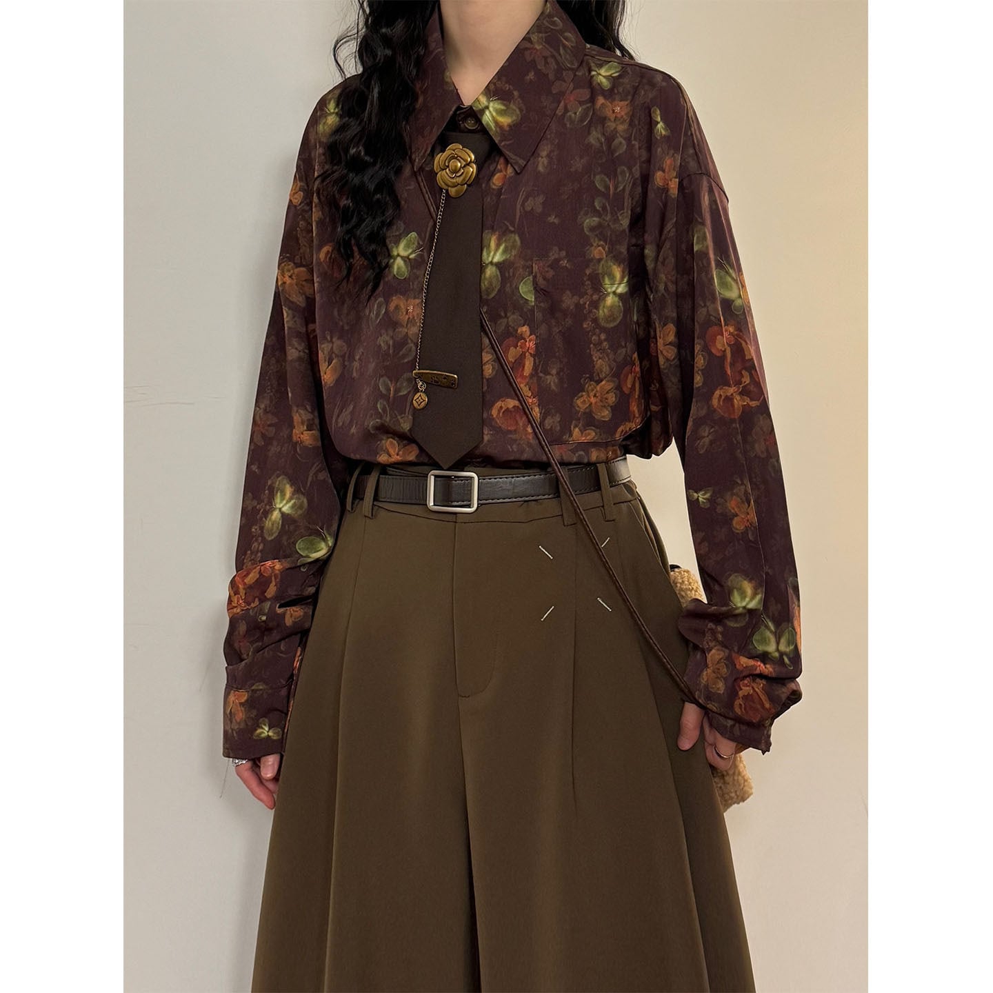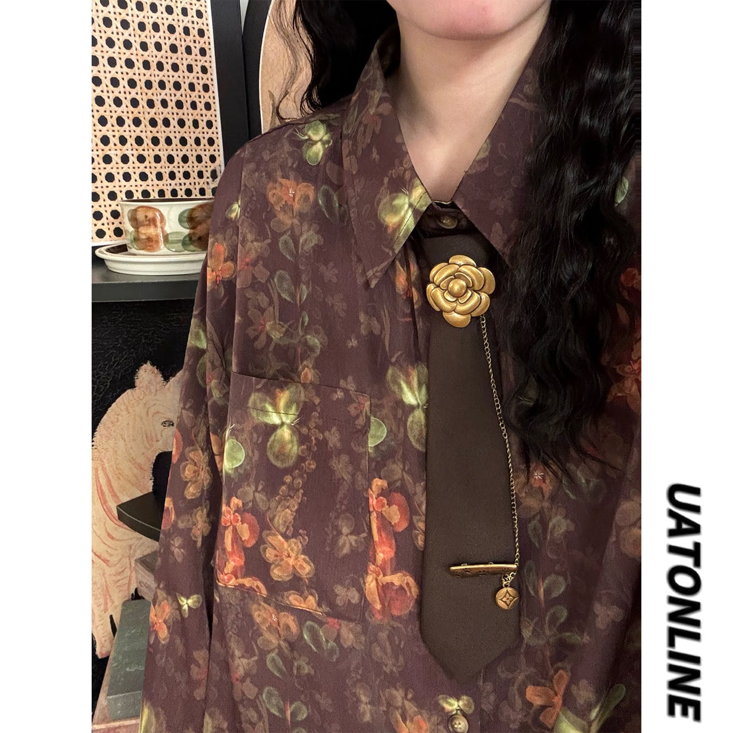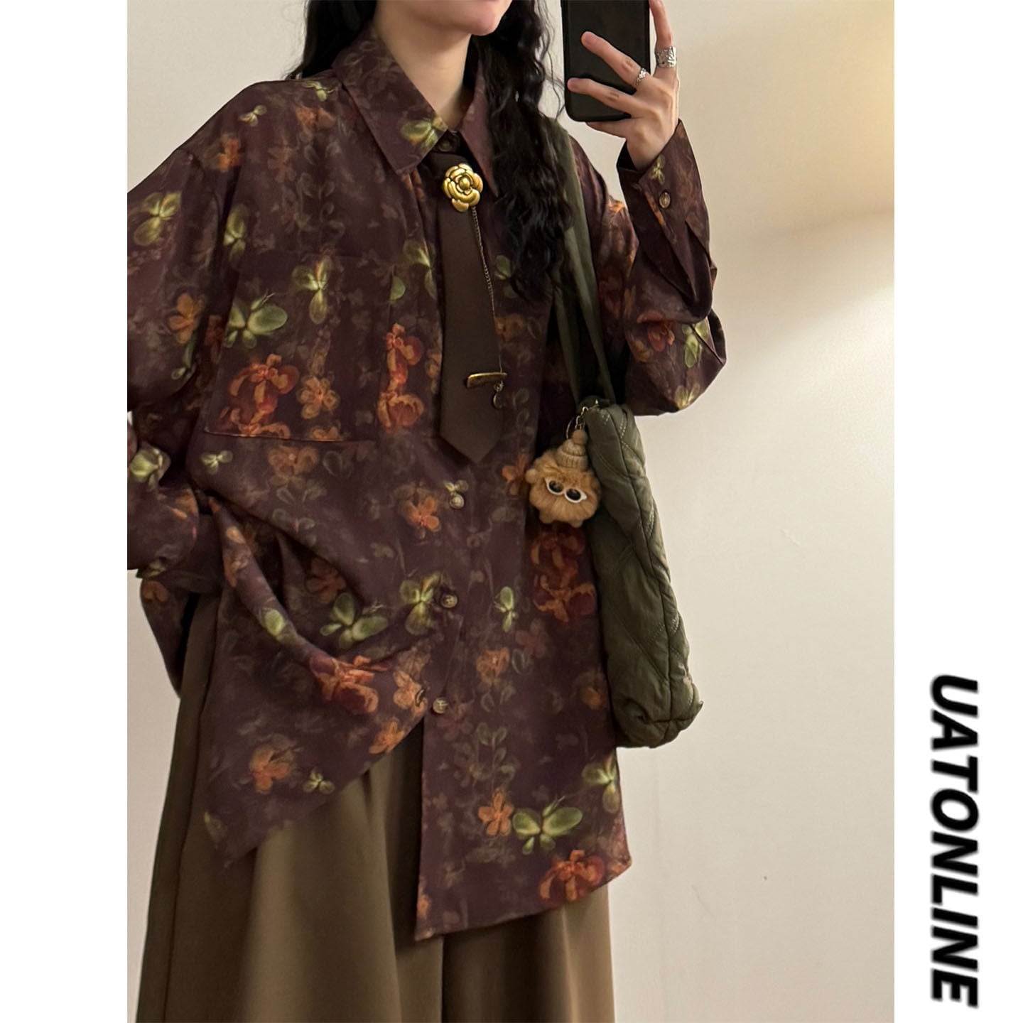 ♥ビンテージフラワーシャツ!【UATONLINEシリーズ】★シャツ★ ネクタイ付きシャツ ユニセックス トップス 長袖シャツ プリント