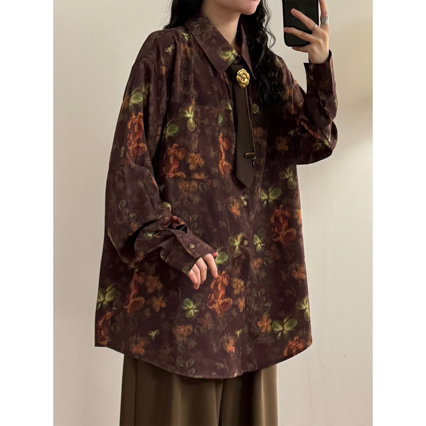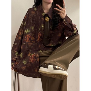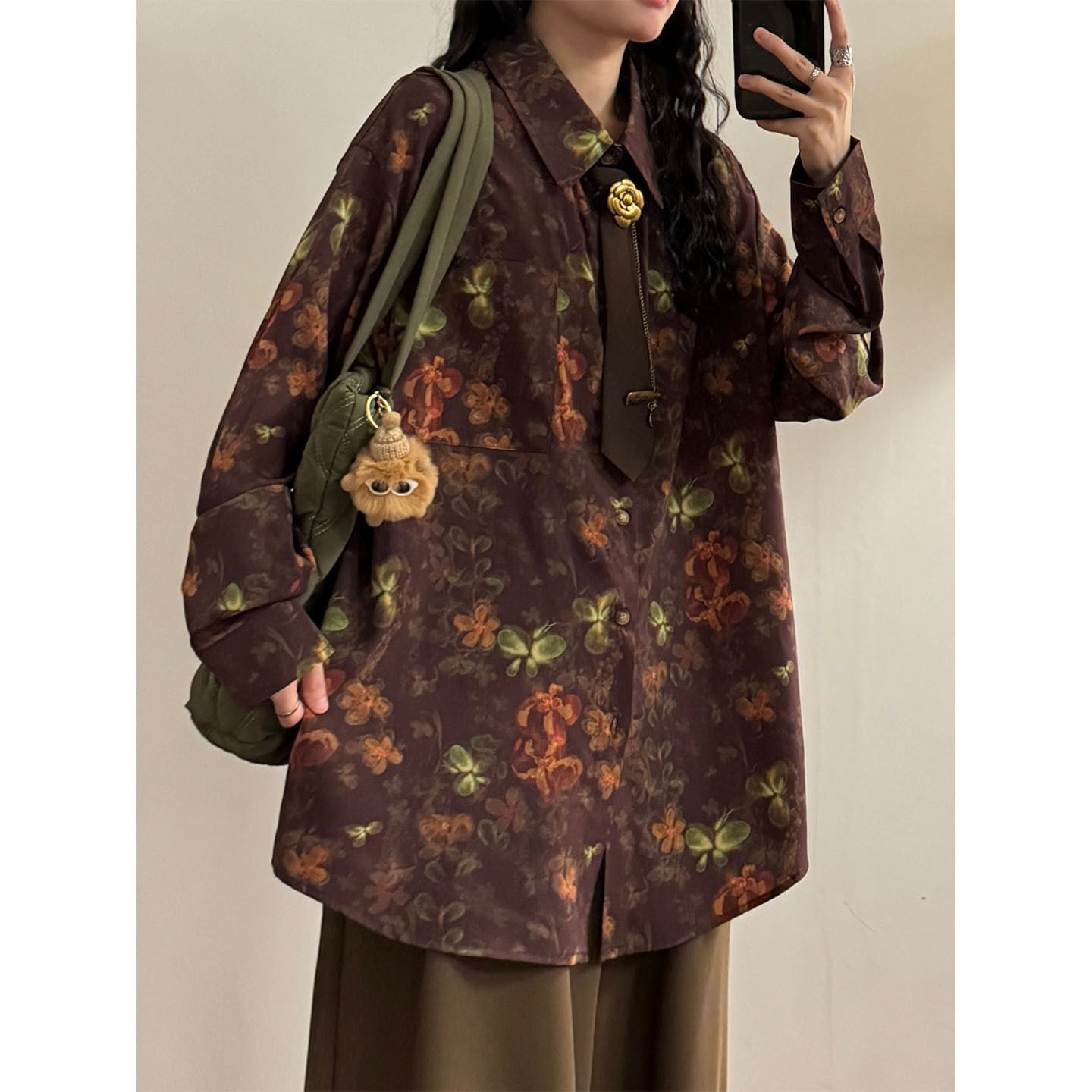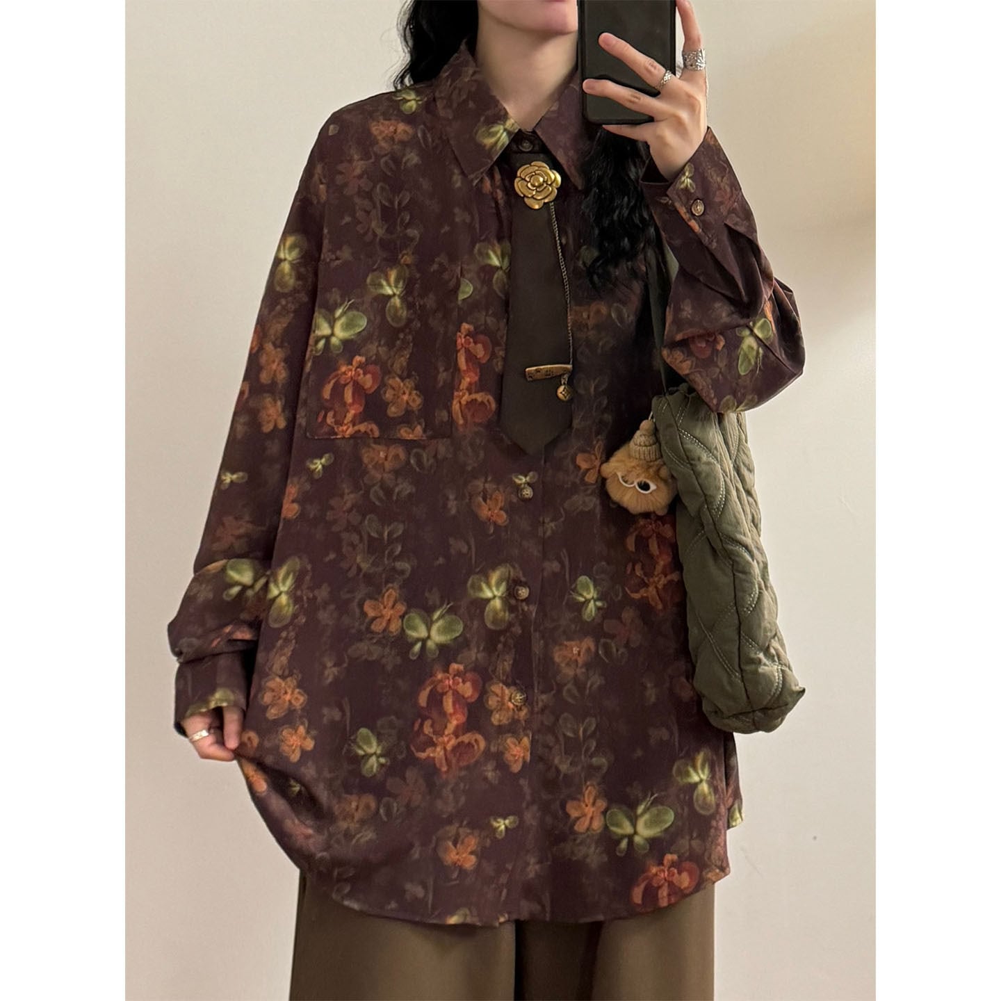 ♥ビンテージフラワーシャツ!【UATONLINEシリーズ】★シャツ★ ネクタイ付きシャツ ユニセックス トップス 長袖シャツ プリント