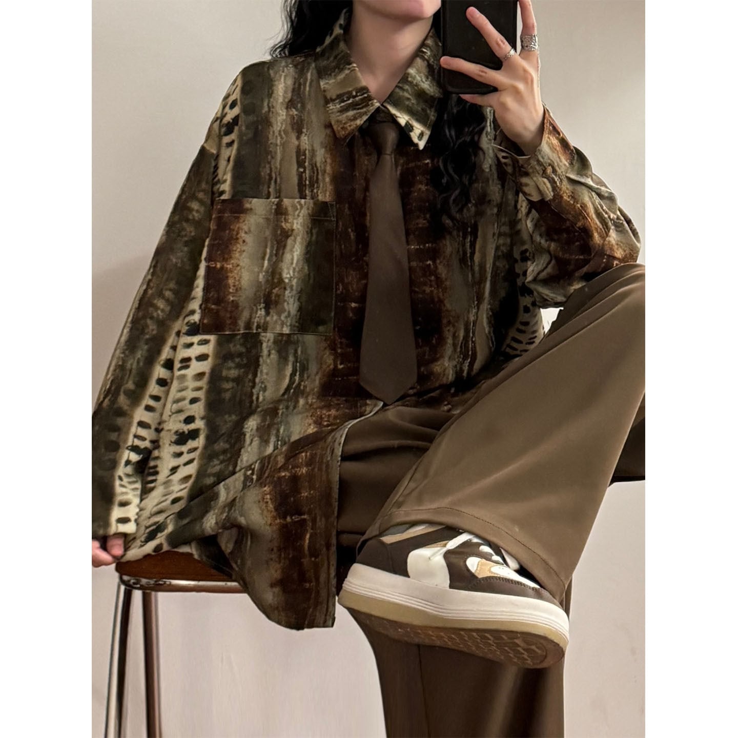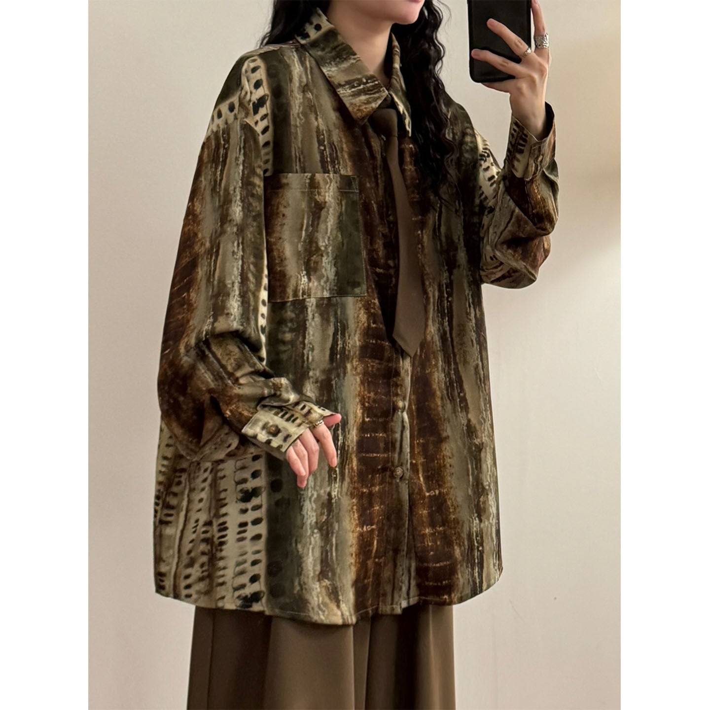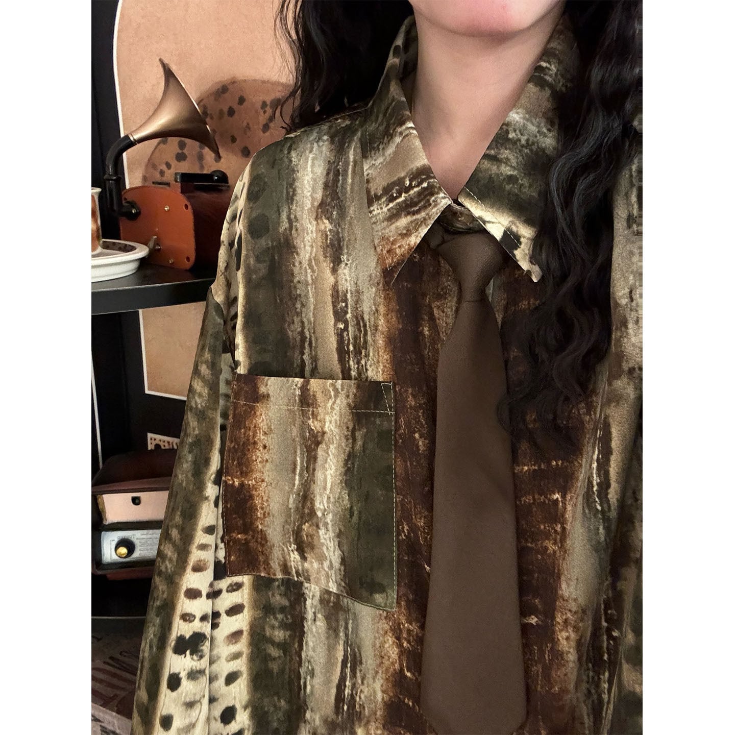 ♥キャンバスはシャツになった!【UATONLINEシリーズ】★シャツ★ ネクタイ付きシャツ ユニセックス トップス 長袖シャツ プリント