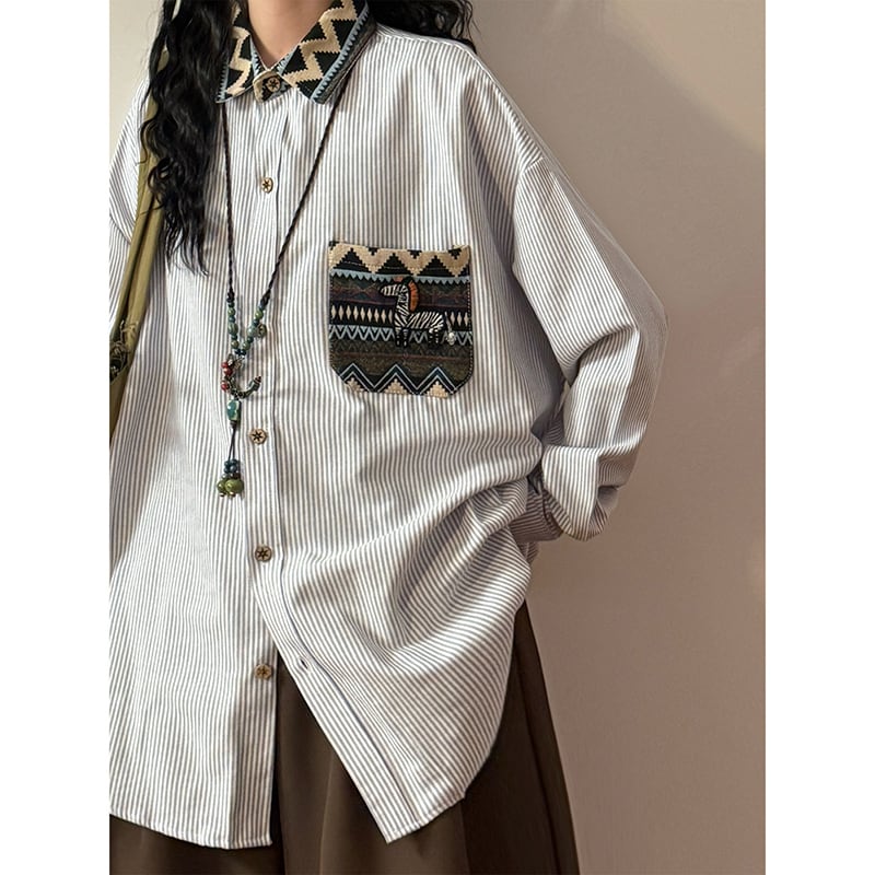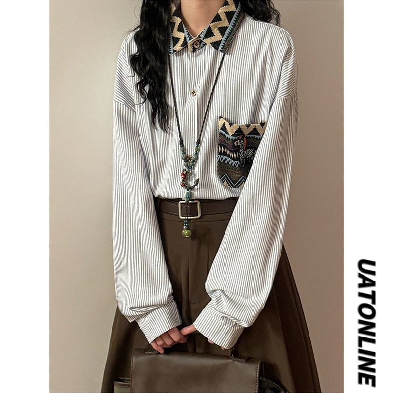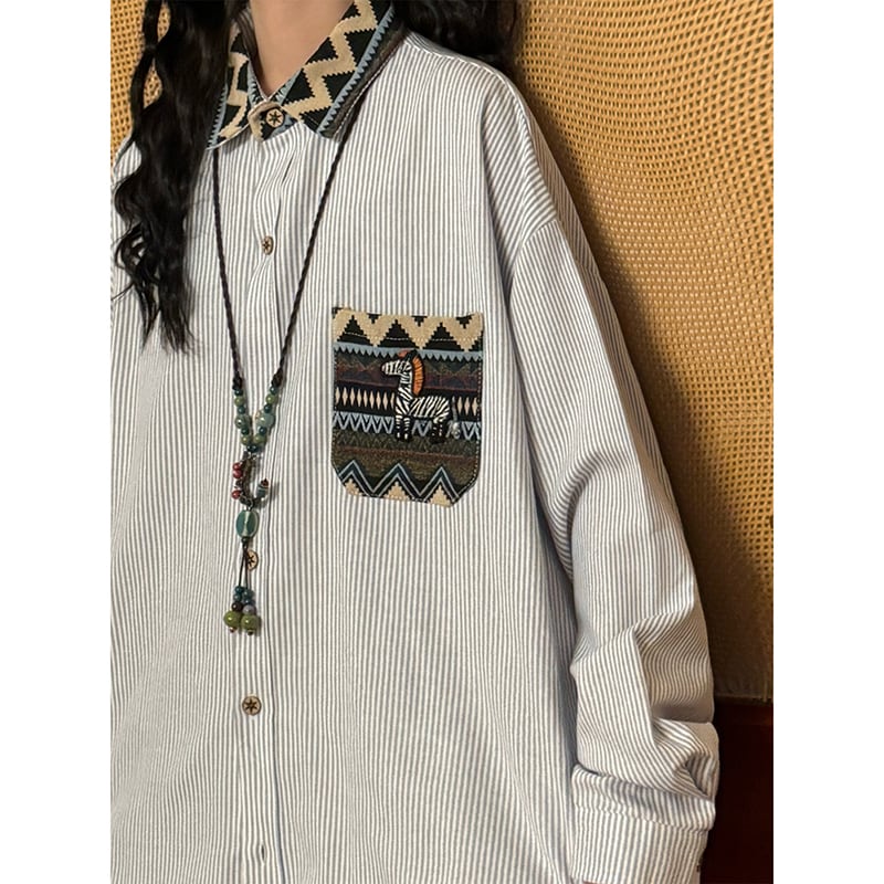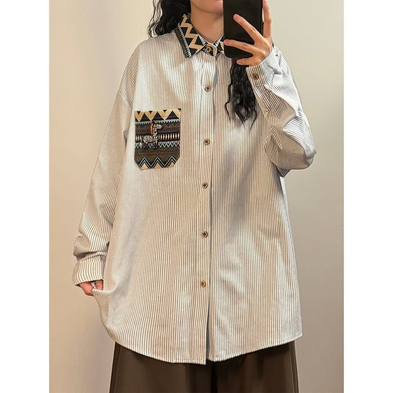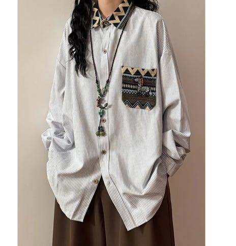 ♥ポケットに民族模様。リバーシブルな襟のアクセント!【UATONLINEシリーズ】★シャツ★ ユニセックス トップス メンズ カジュアル 犬 犬柄