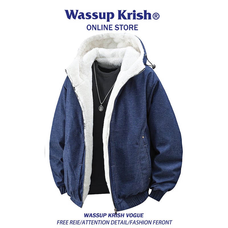 ♥寒い日もこれ一枚!【WSシリーズ】★冬用コート★ 裏起毛 ユニセックス 2color 厚て デニム ブラック ブルー 黒 青