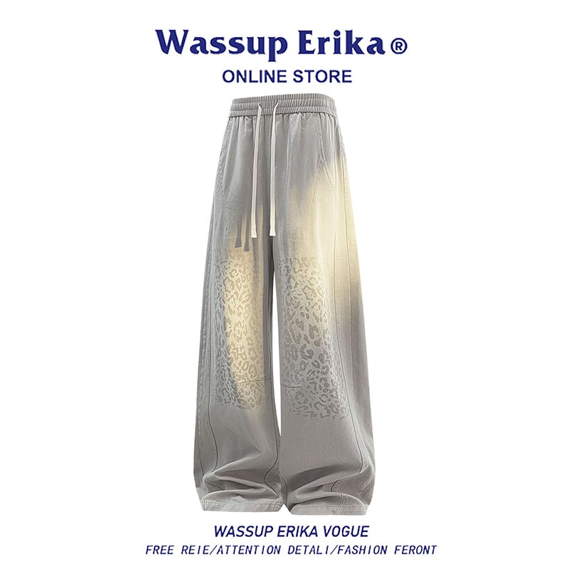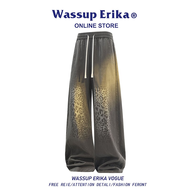 ♥豹柄カジュアルパンツ!【WSシリーズ】★ズボン★ 3color ユニセックス ボトムス ウエストゴム 大きいサイズ 黒 灰 ウエストゴム コットン