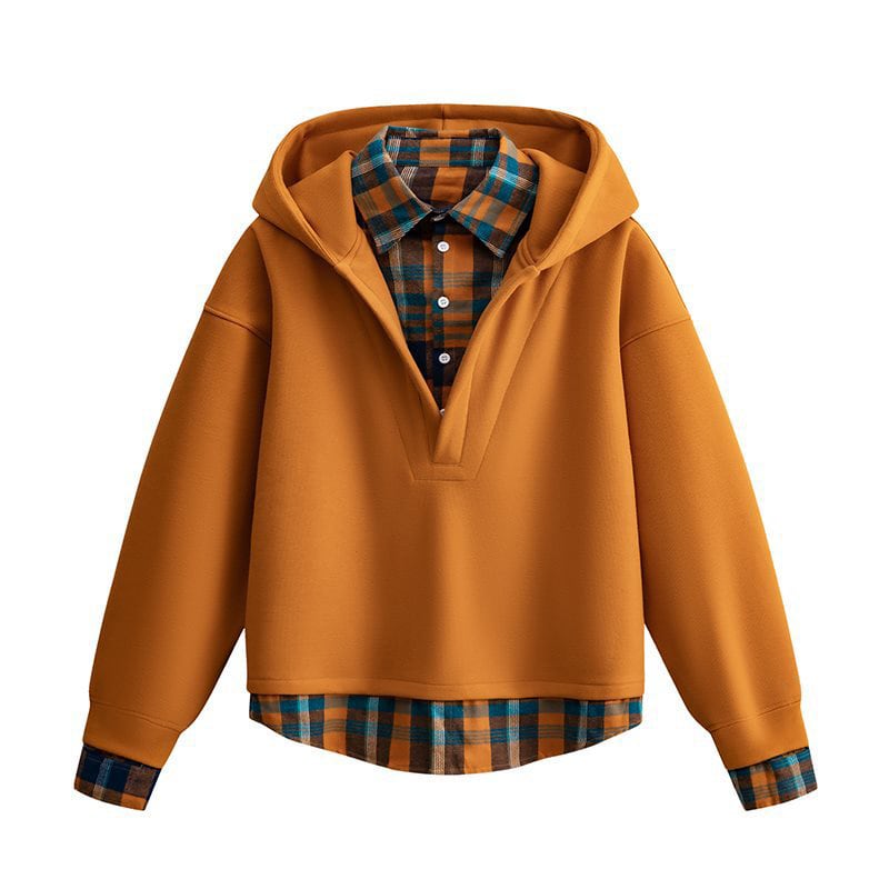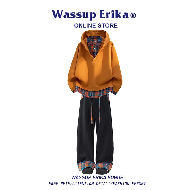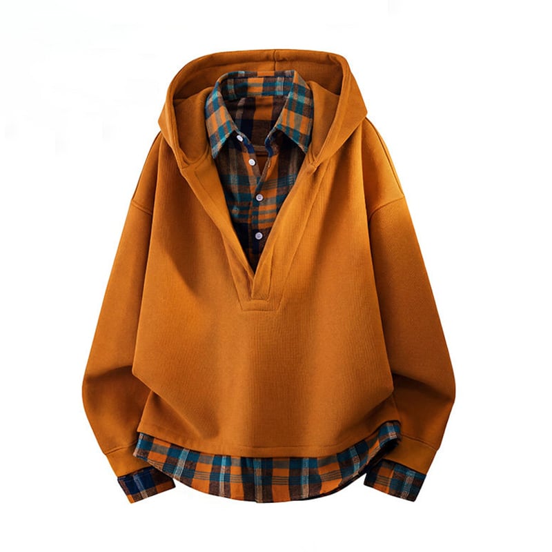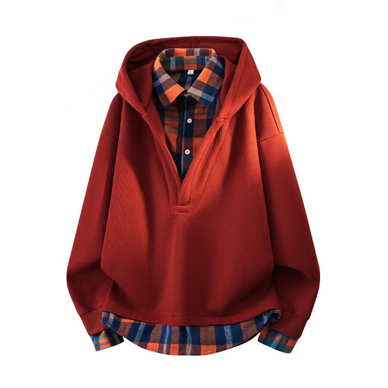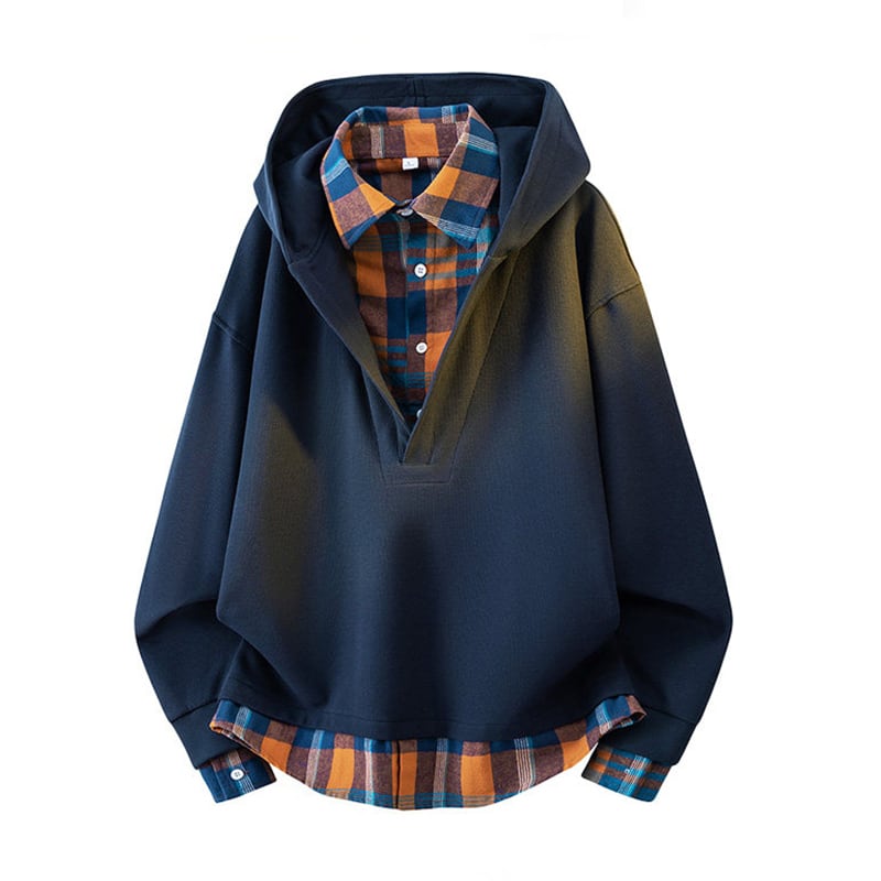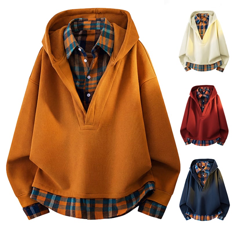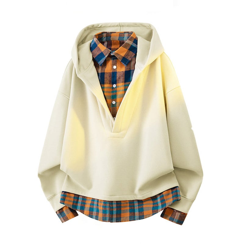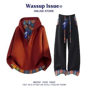 ♥チェック柄シャツパーカー!【WSシリーズ】★パーカー★ ユニセックス 4color トップス フェイクレイヤード チェック柄
