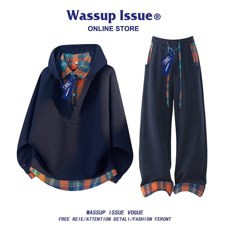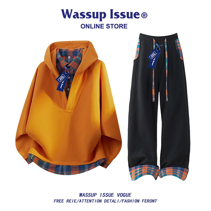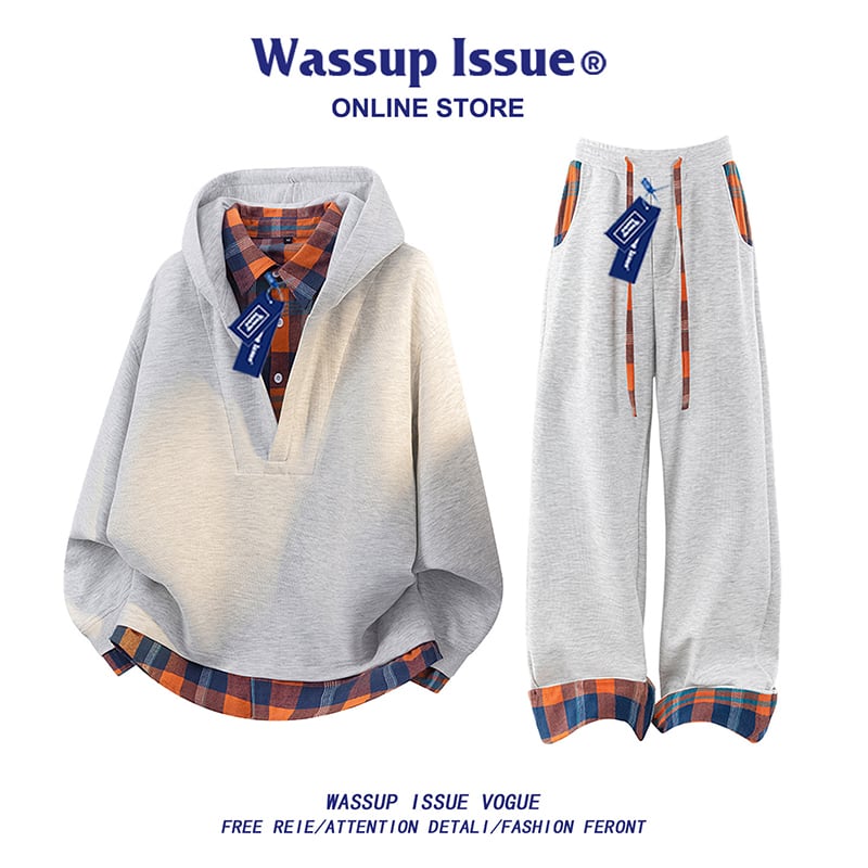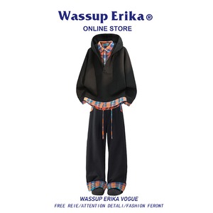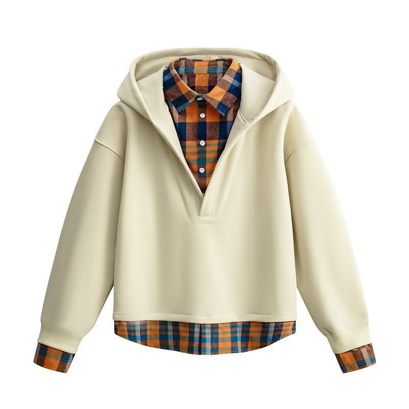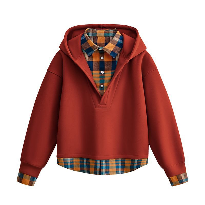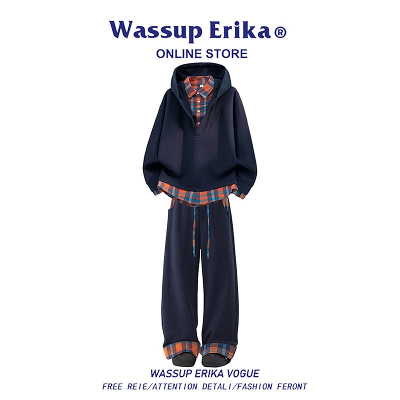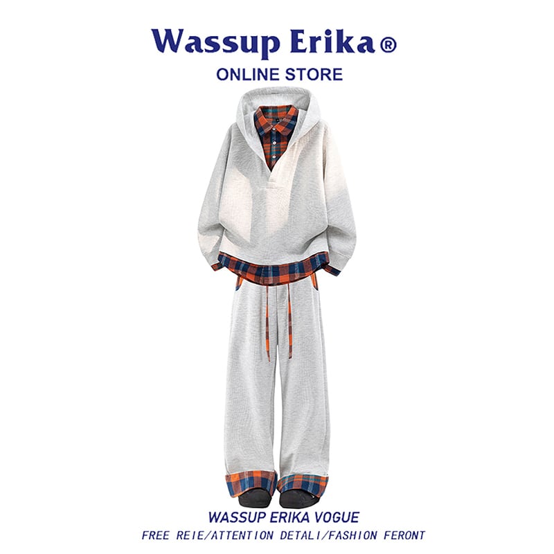 ♥チェック柄シャツパーカー!【WSシリーズ】★パーカー★ ユニセックス 4color トップス フェイクレイヤード チェック柄