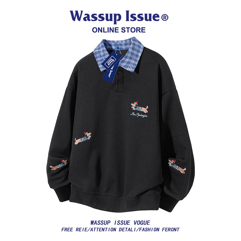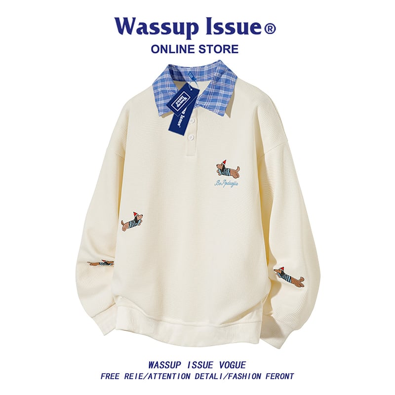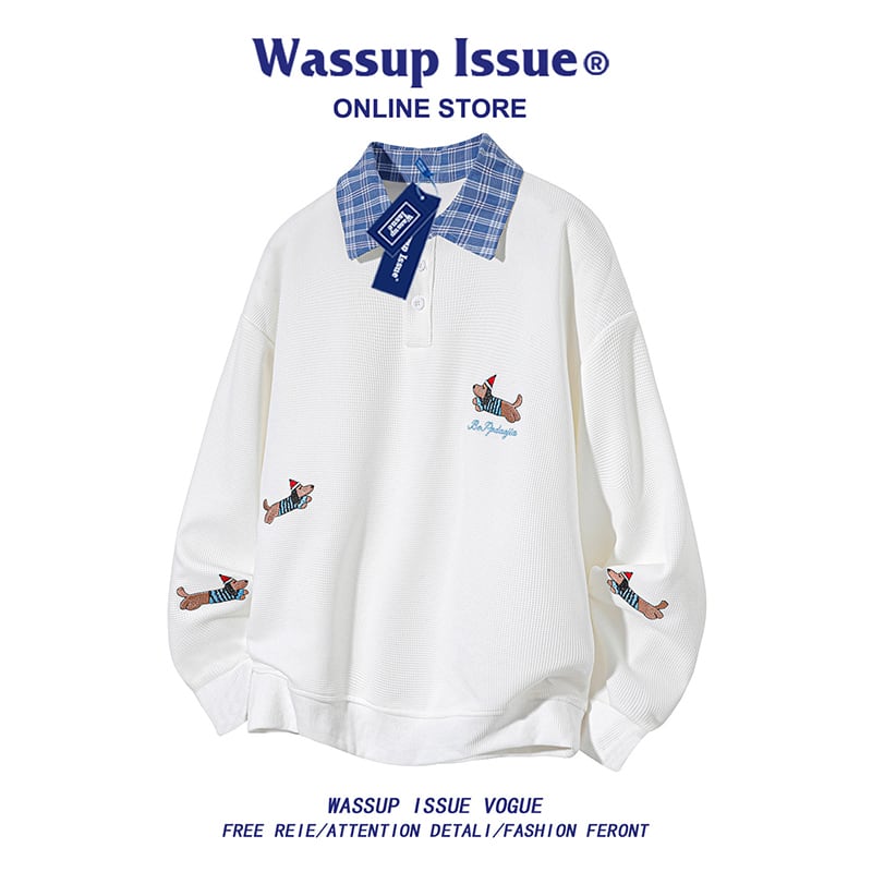 ♥ポロ襟のニューカジュアル!【WSシリーズ】★POLOシャツ★ 3color ユニセックス トップス 大きいサイズ 犬 犬柄 カートゥーン