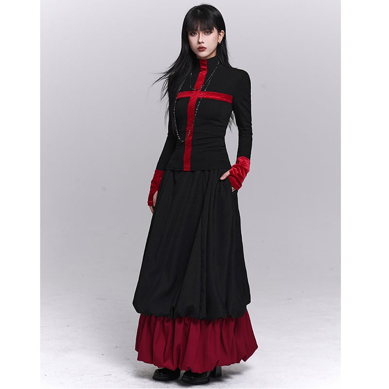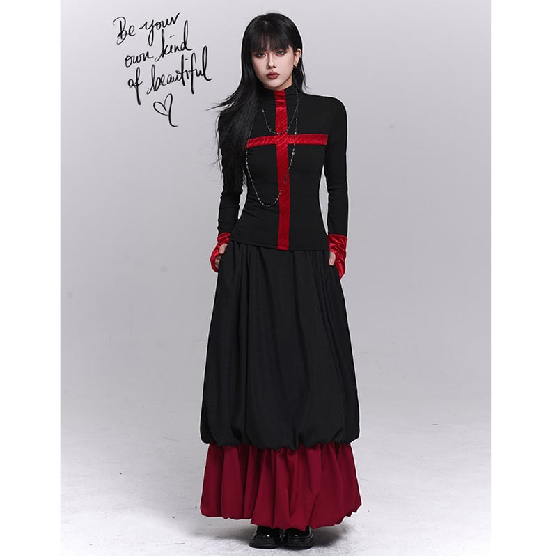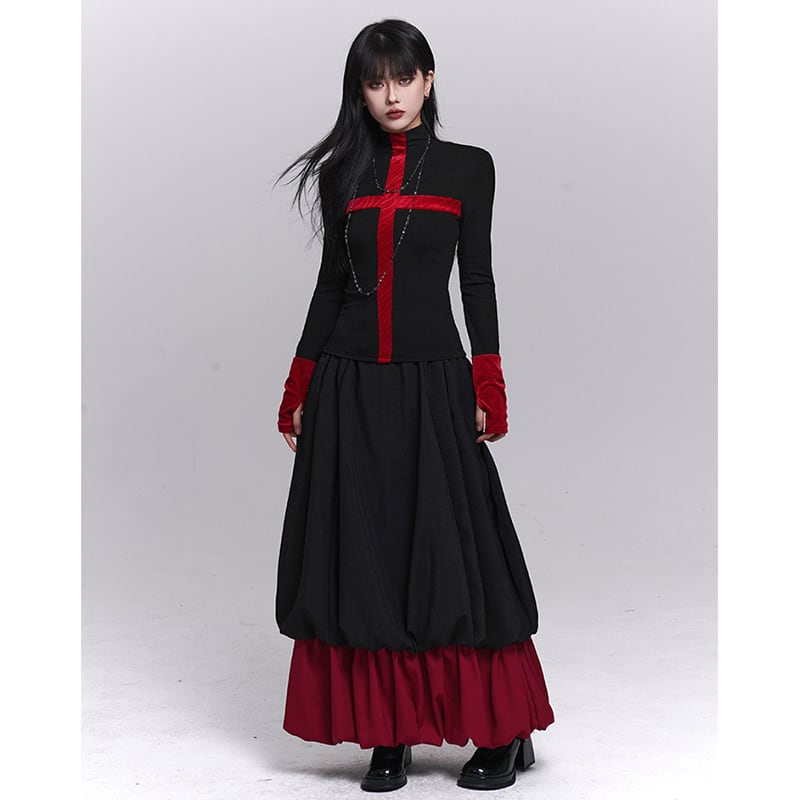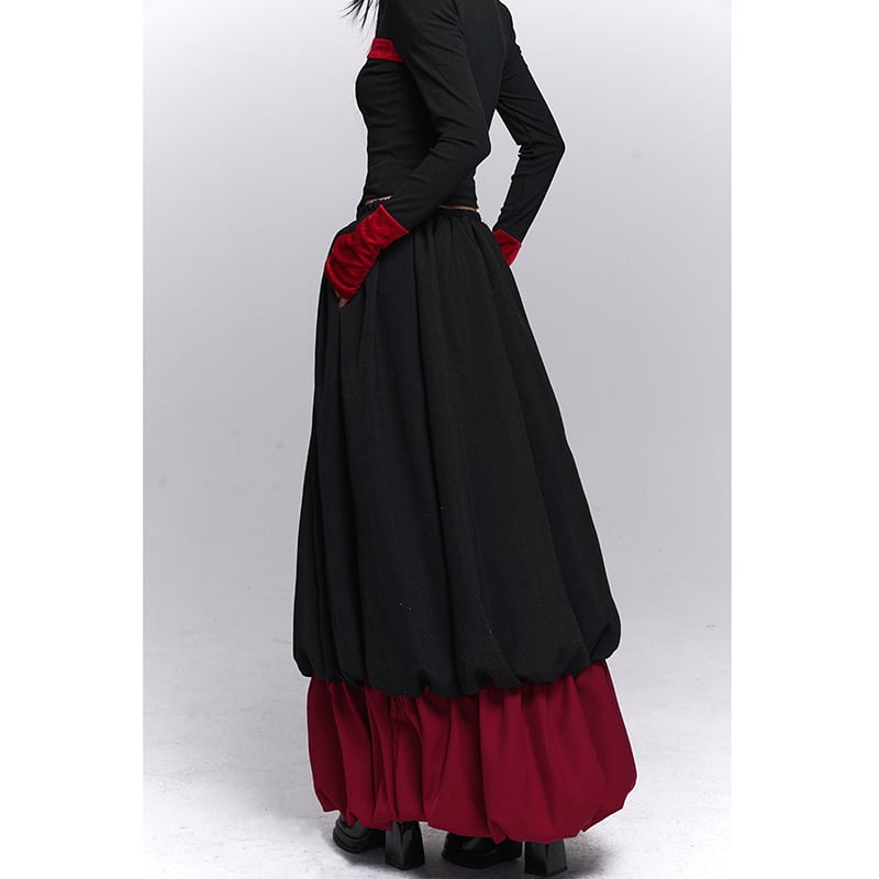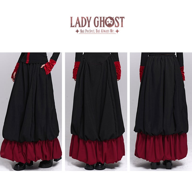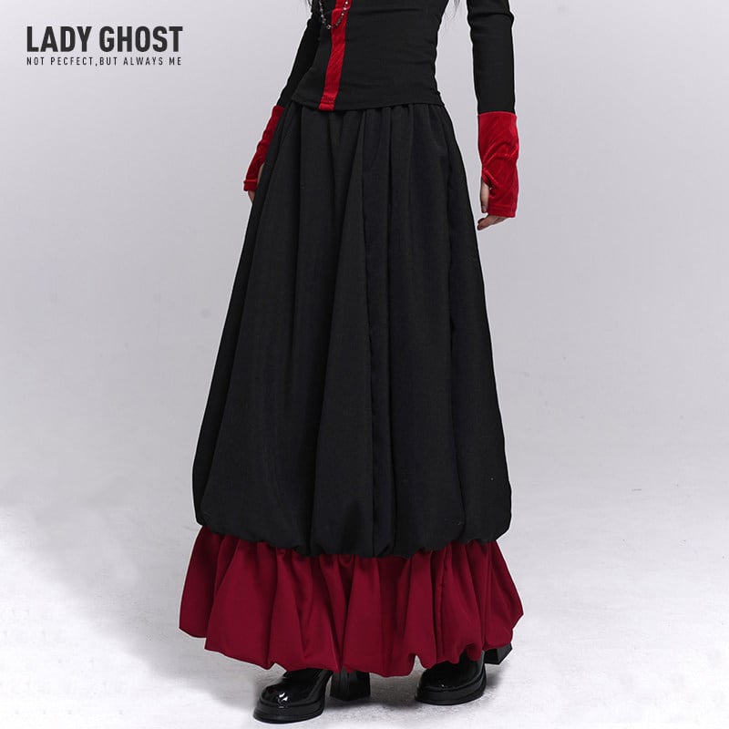 ♥黒赤の切り替え、静かなる狂おしさ!【LadyGhostシリーズ】★スカート★ ボトムス レディース ハイウエスト デザイン性有り 切り替え ブラック 黒