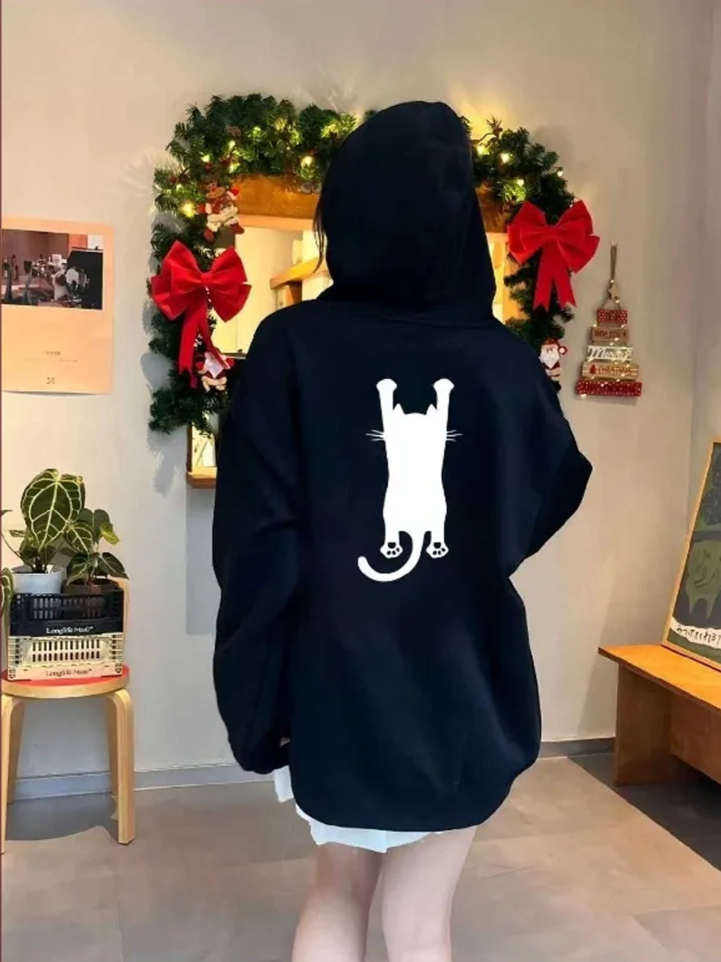 ♥いつものフードに、ちょっとした見守り!【ImcTLシリーズ】★パーカー★ ユニセックス 4color トップス カジュアル メンズ レディース 猫柄 猫 ネコ
