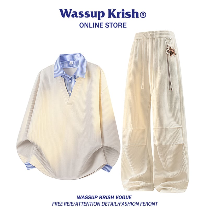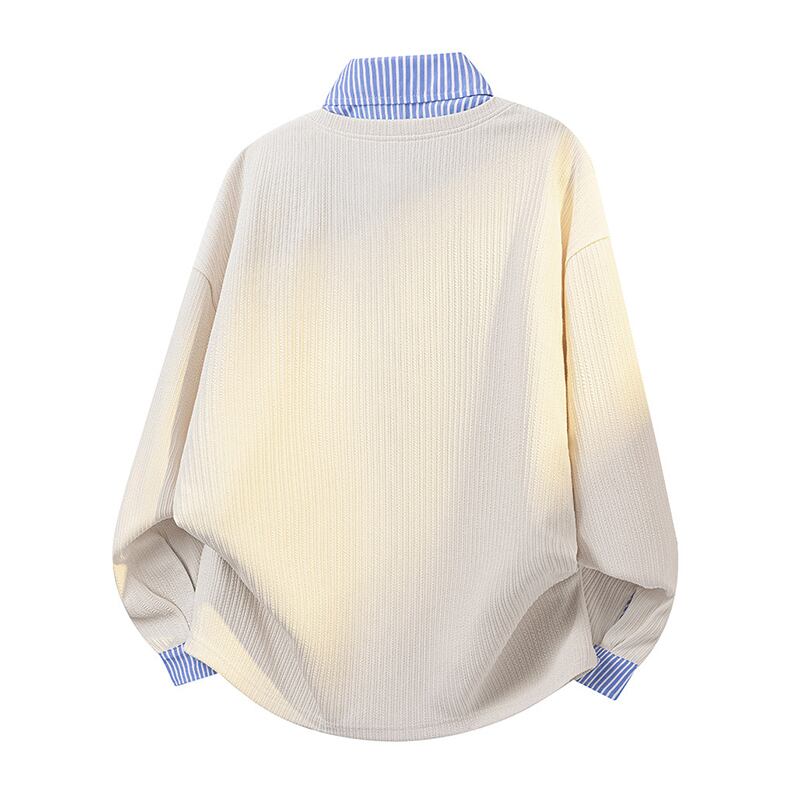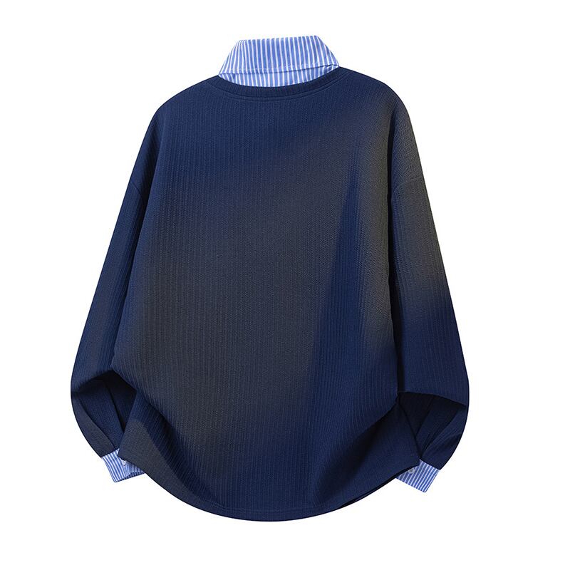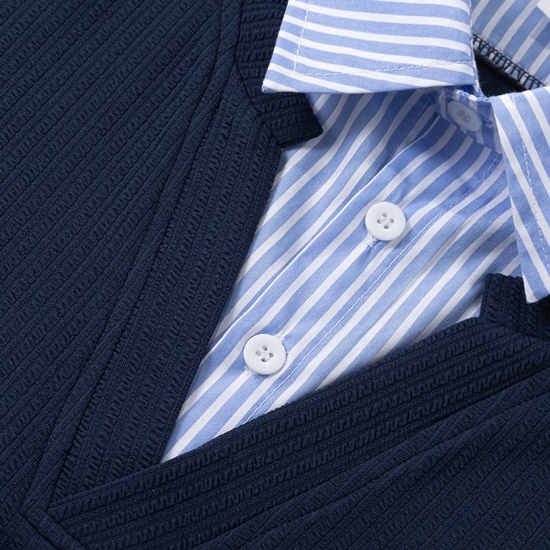 ♥賢いワンタッチ。二枚重ねの風格!【WSシリーズ】★POLOシャツ★ 2color ユニセックス トップス 大きいサイズ 縦縞 縞模様 Vネック POLOネック 切り替え