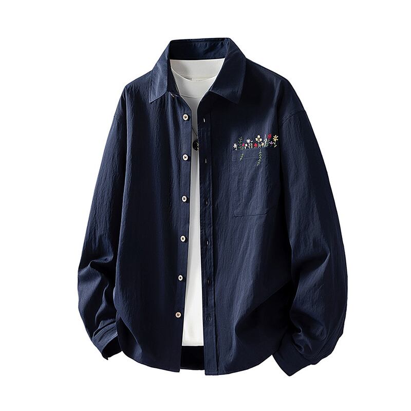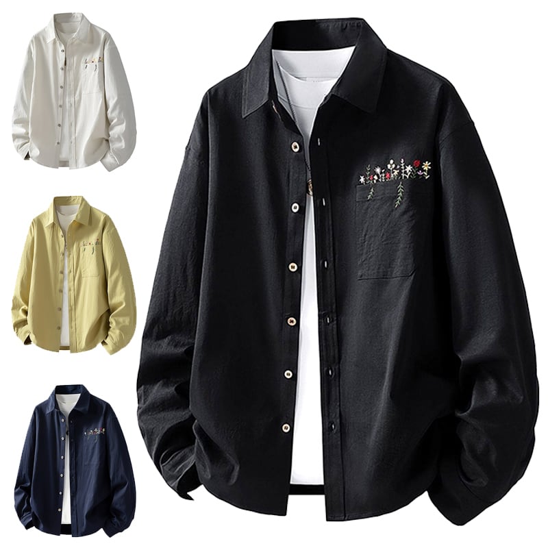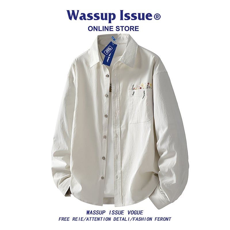 ♥花柄刺繍シャツ!【WSシリーズ】★シャツ★ ユニセックス 4color トップス メンズ 長袖シャツ 花柄 刺繍
