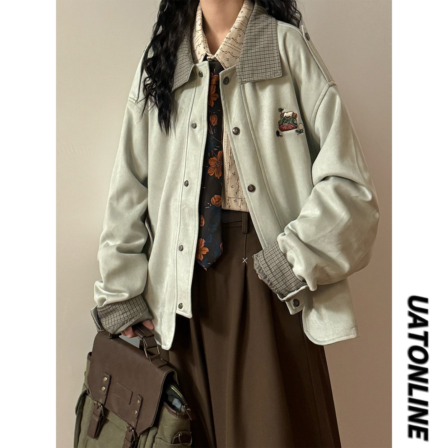 ♥チェック柄襟、刺繍入り!【UATONLINEシリーズ】★ジャケット★ 刺繍 アウター ユニセックス チェック柄