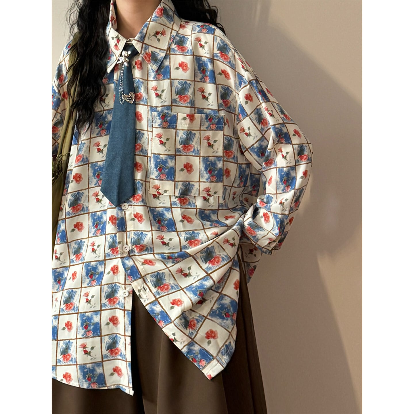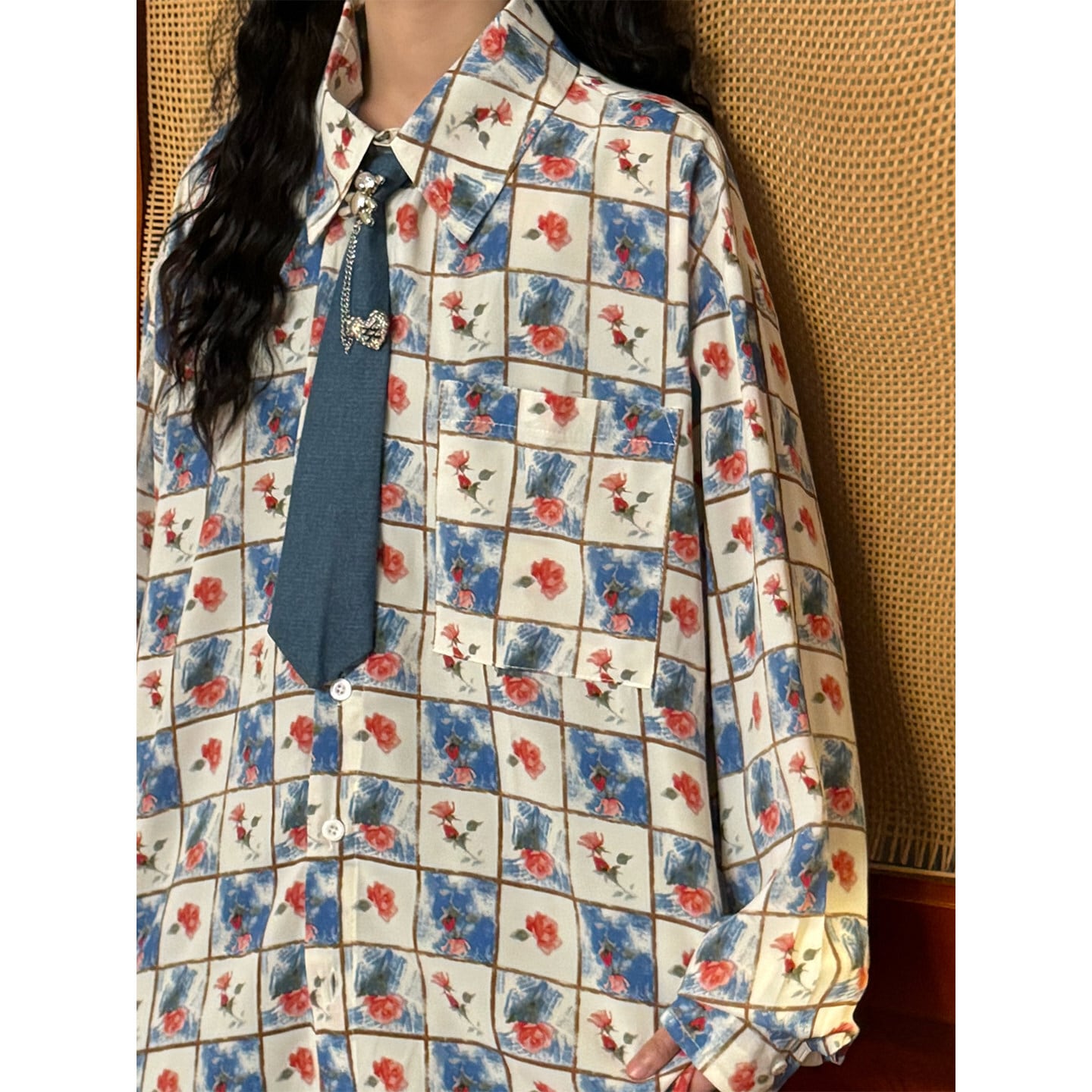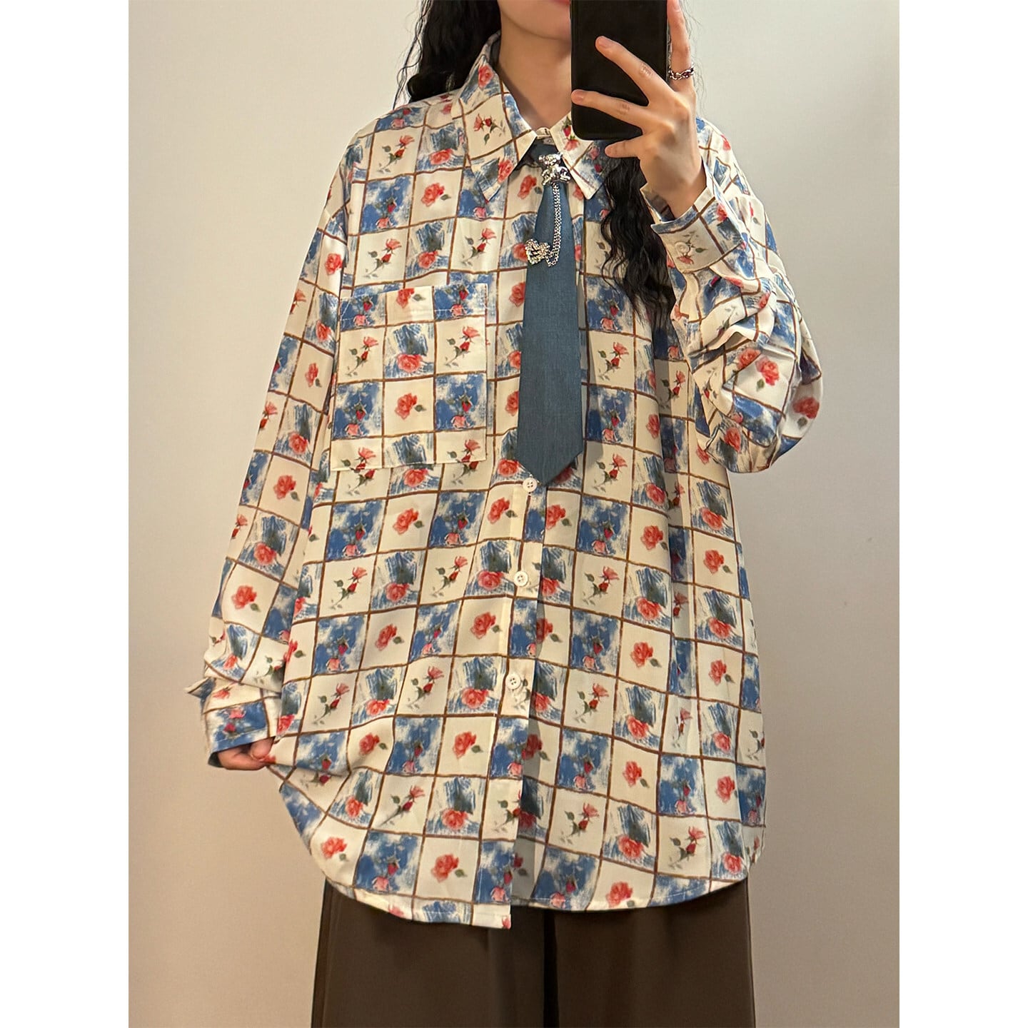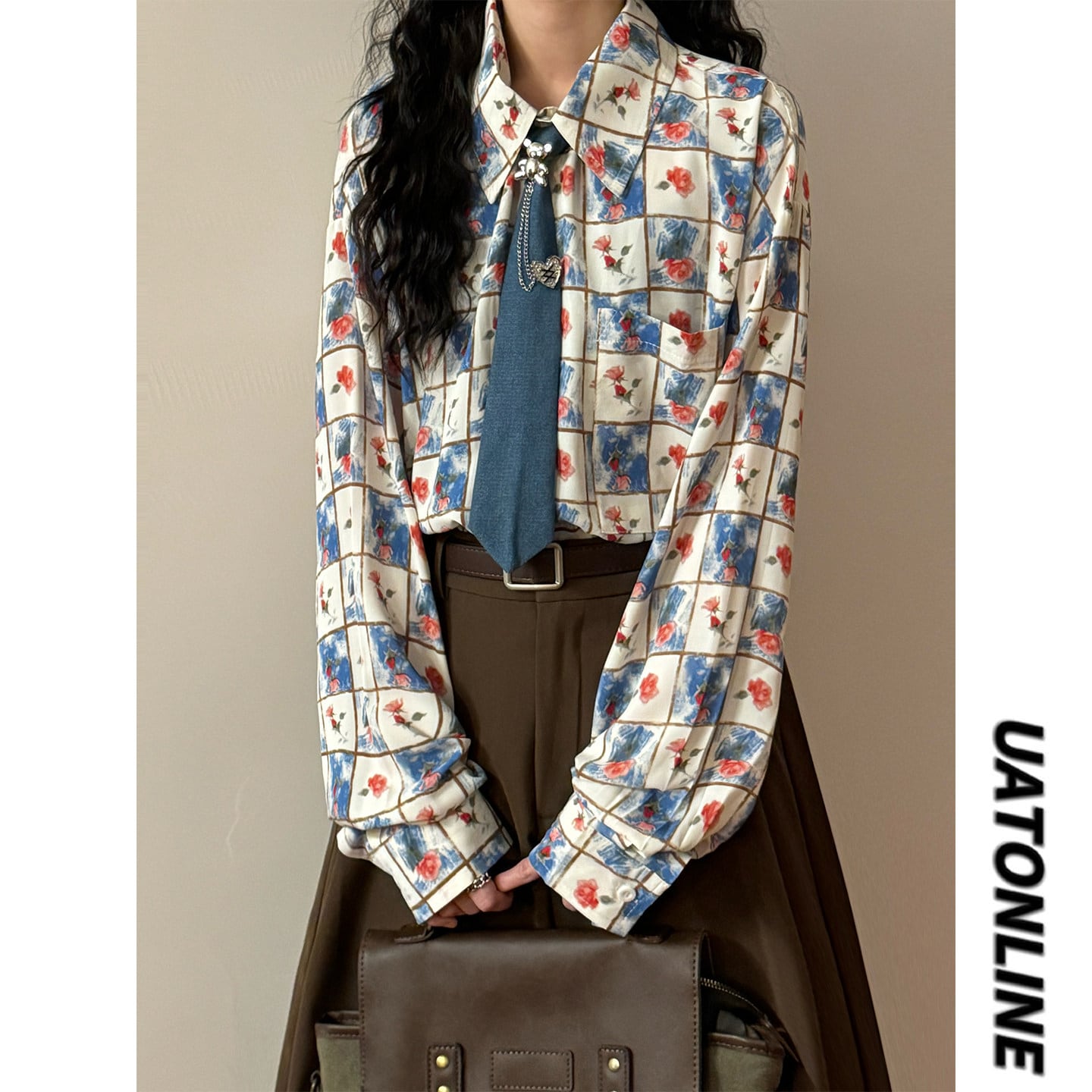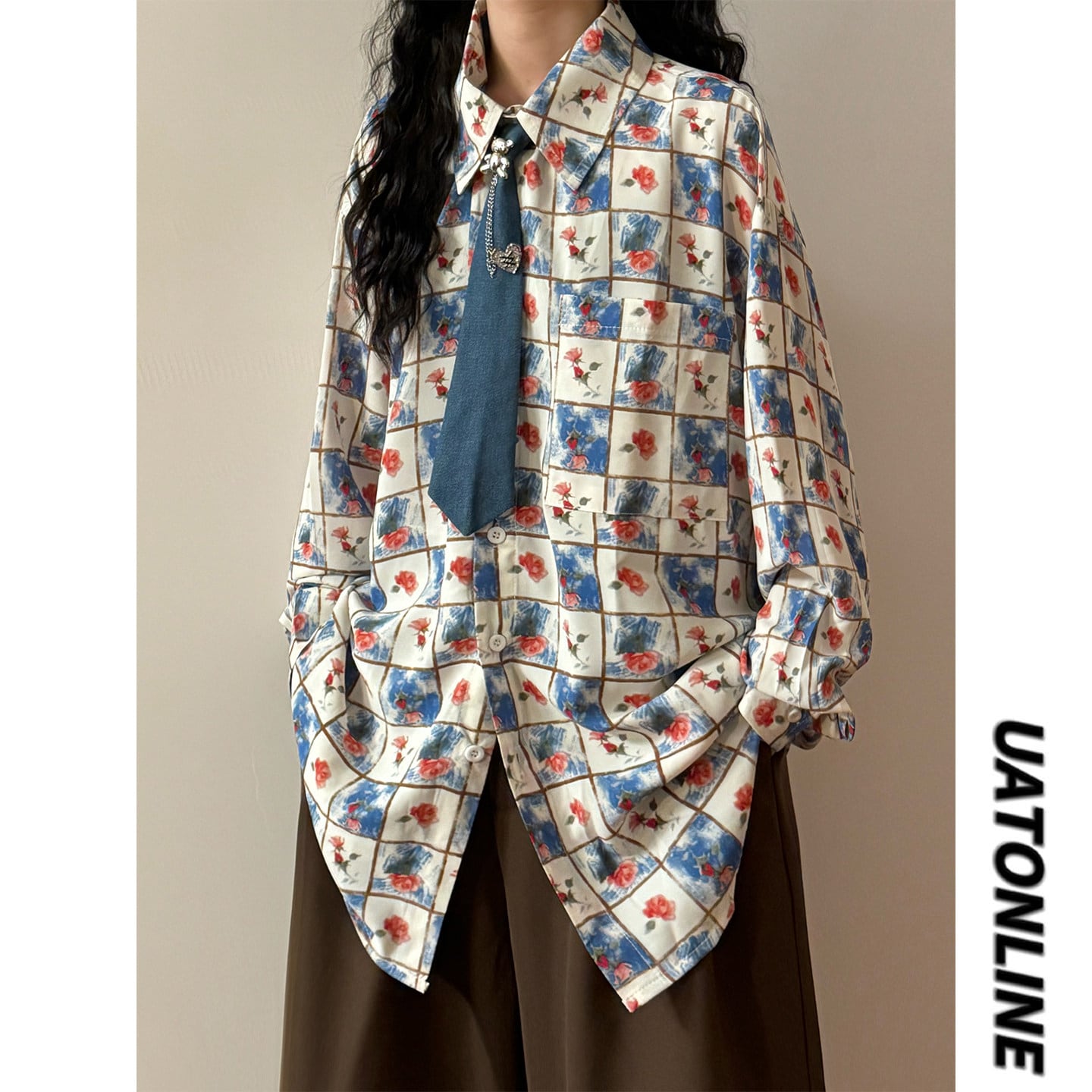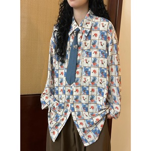 ♥チェック柄ネックレス付きシャツ!【UATONLINEシリーズ】★シャツ★ ネクタイ付き ユニセックス トップス 長袖シャツ チェック柄