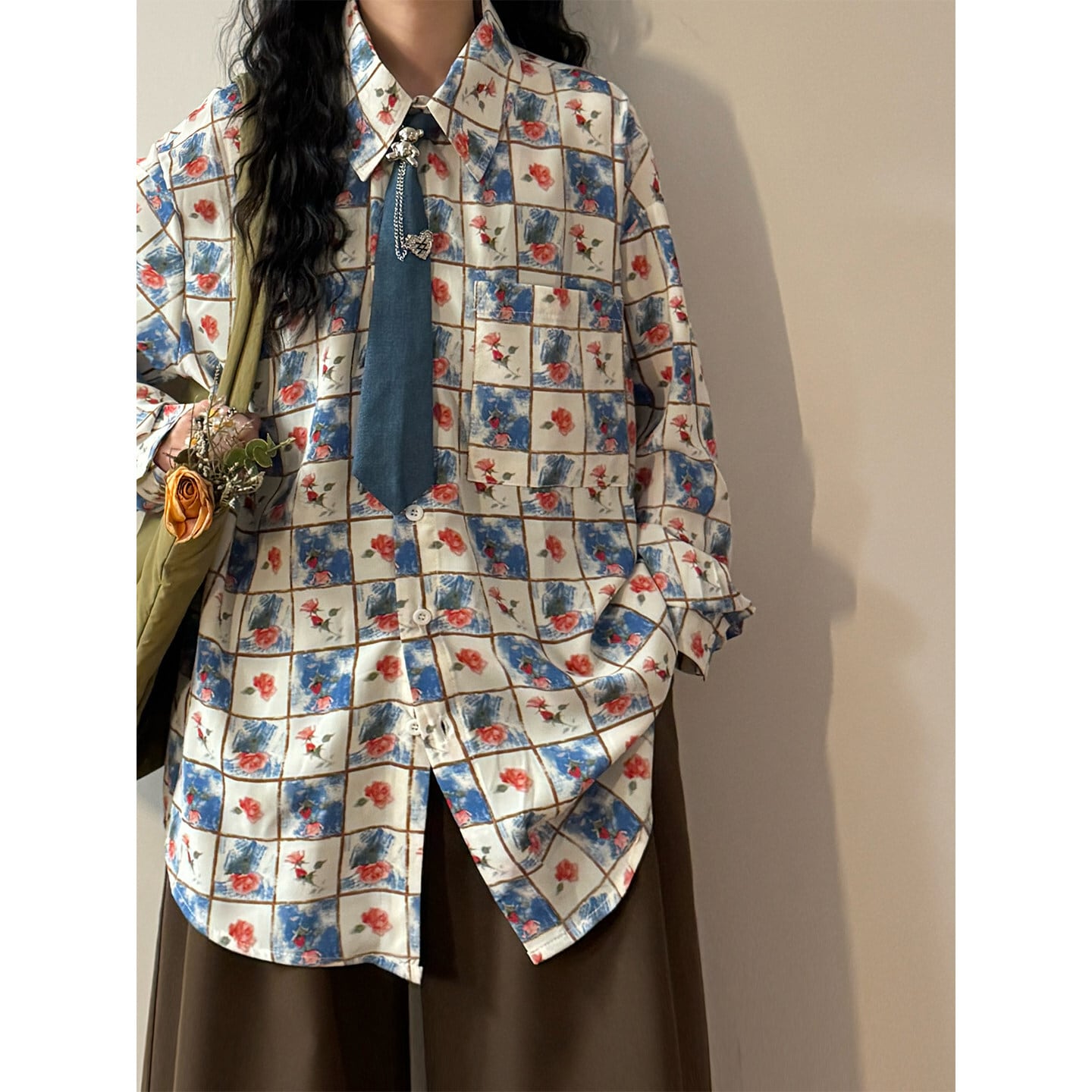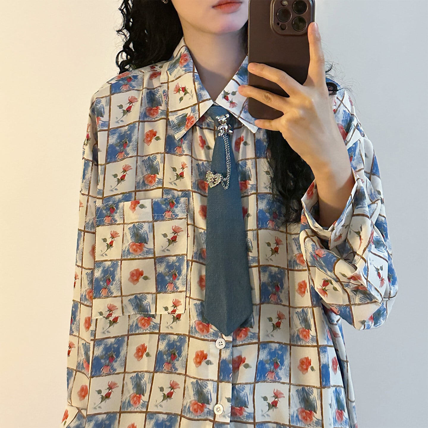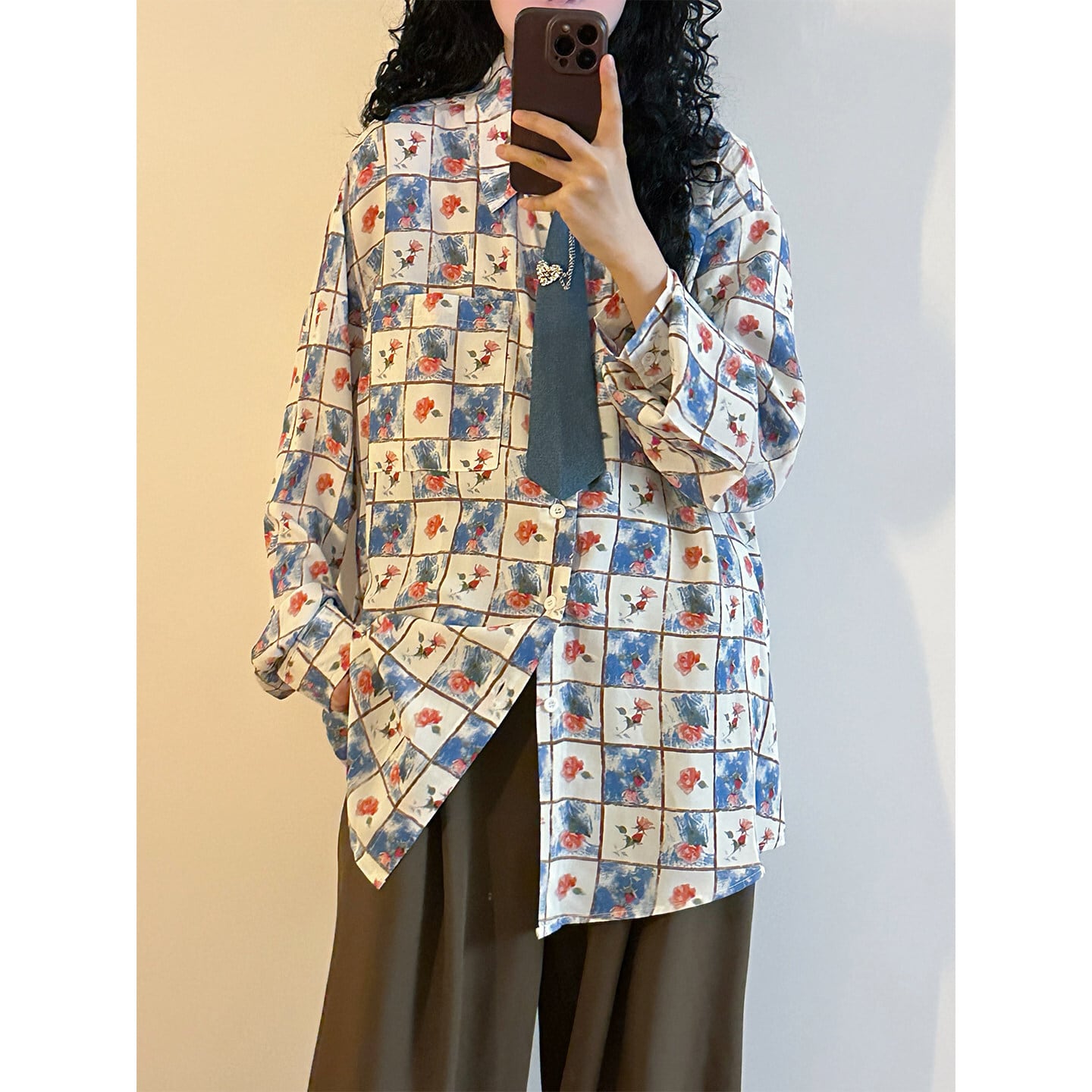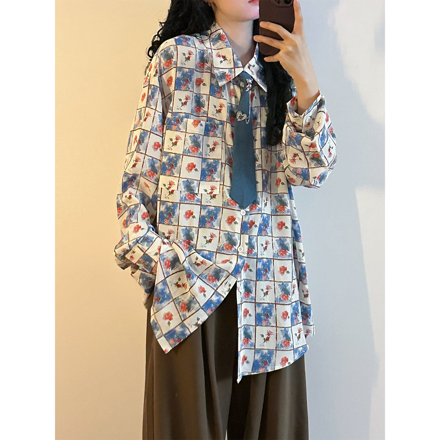 ♥チェック柄ネックレス付きシャツ!【UATONLINEシリーズ】★シャツ★ ネクタイ付き ユニセックス トップス 長袖シャツ チェック柄