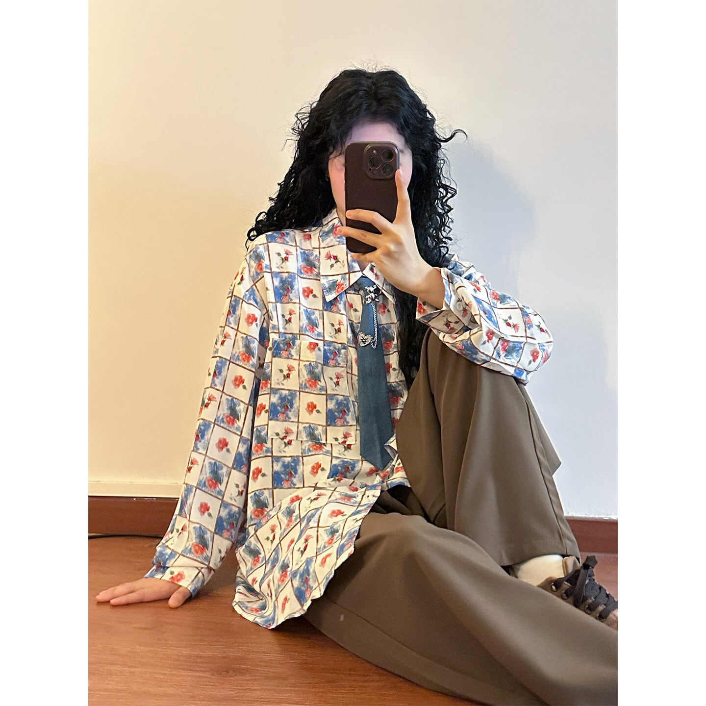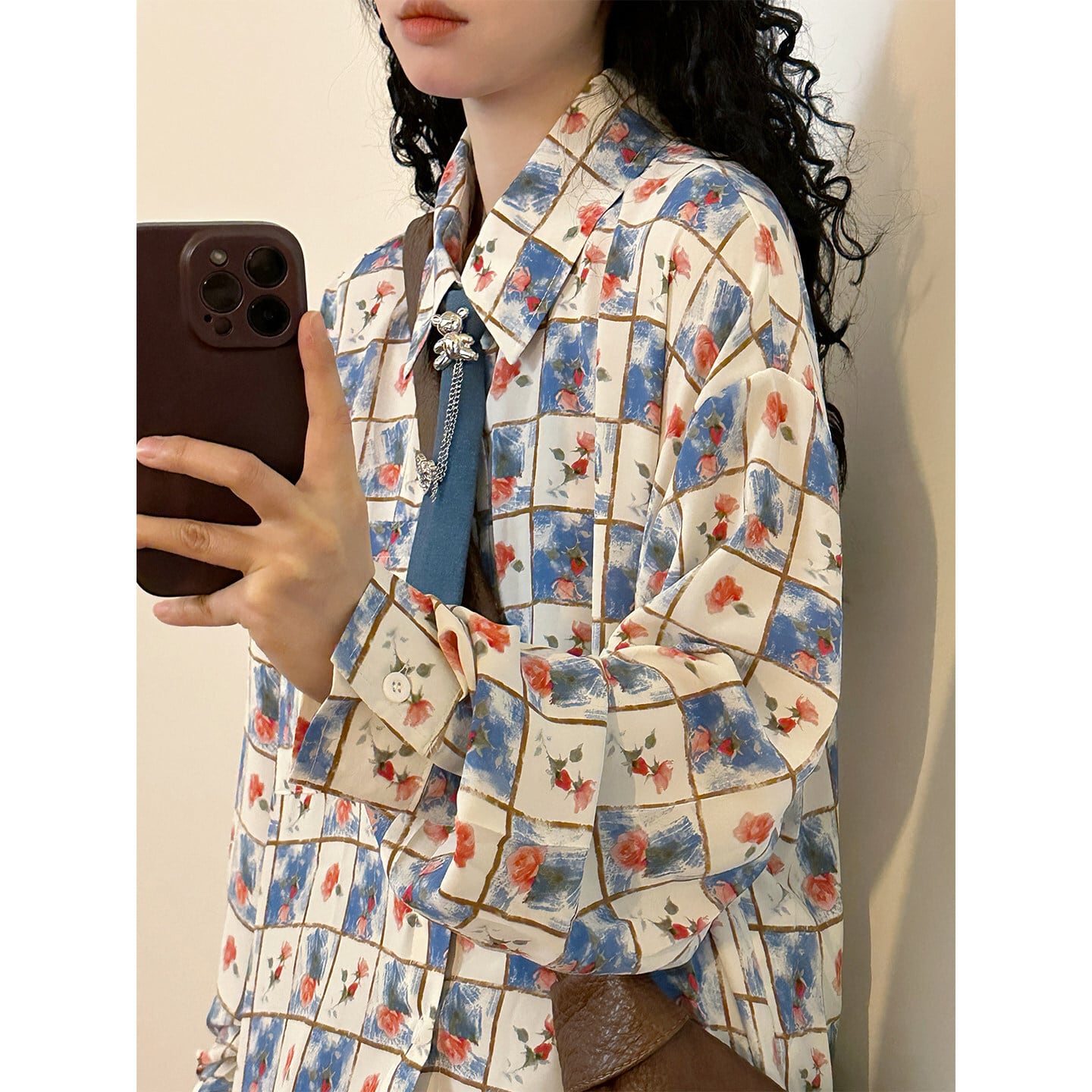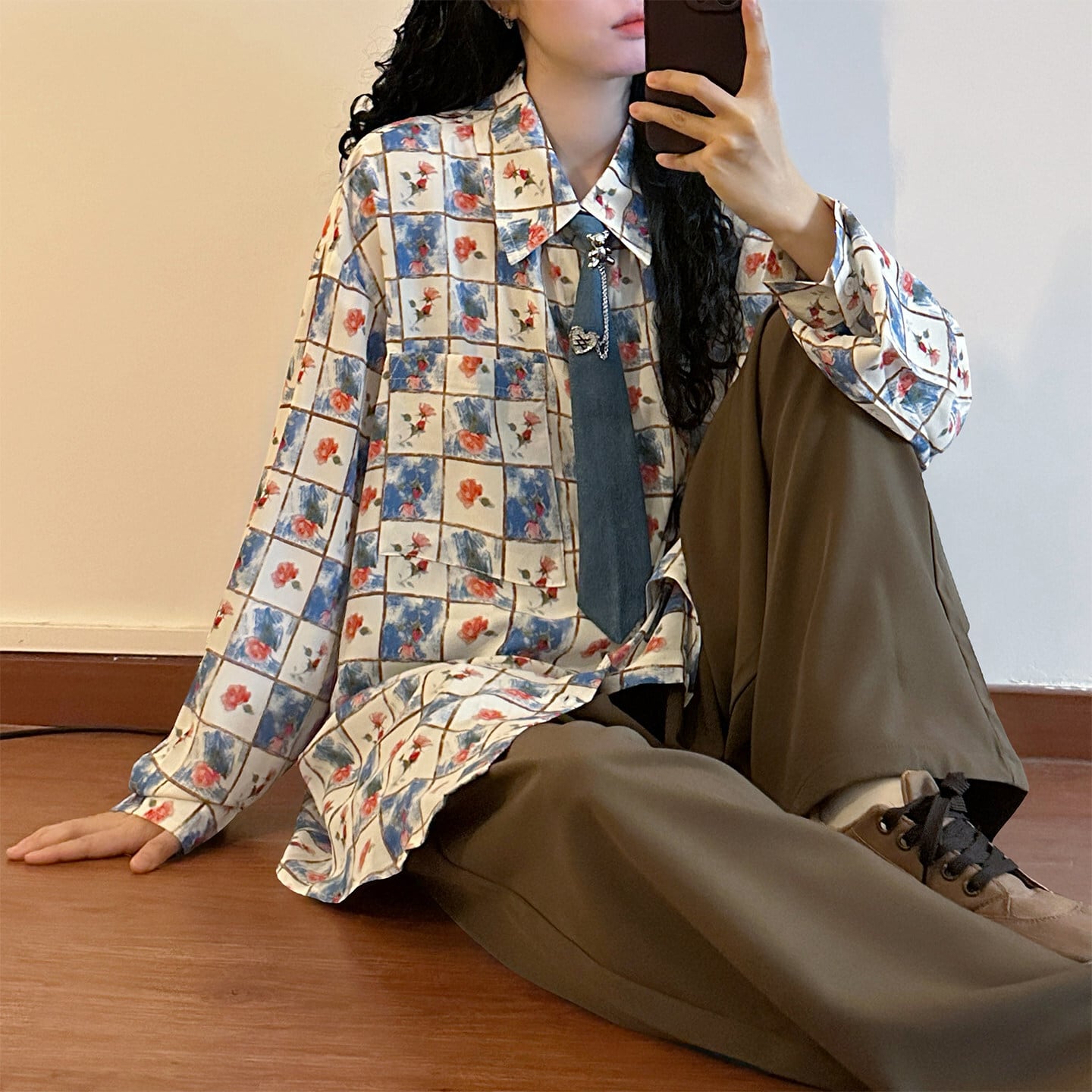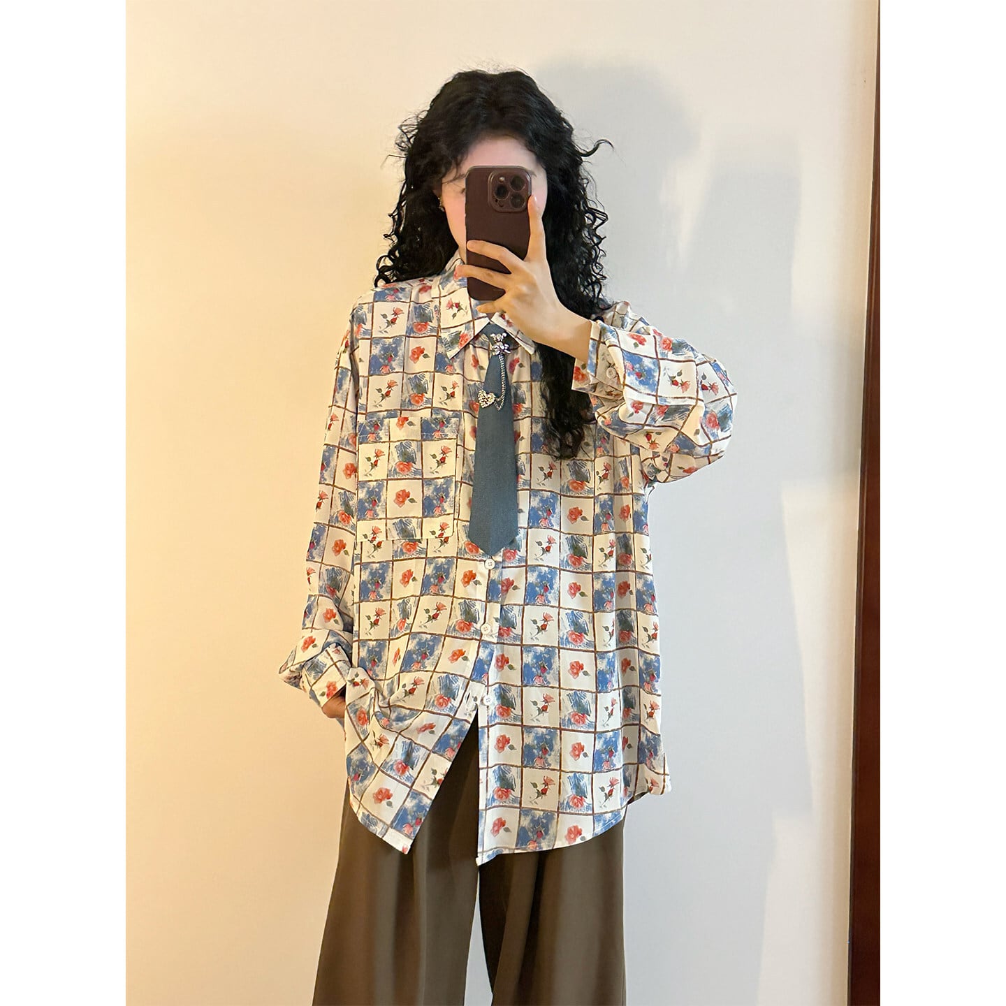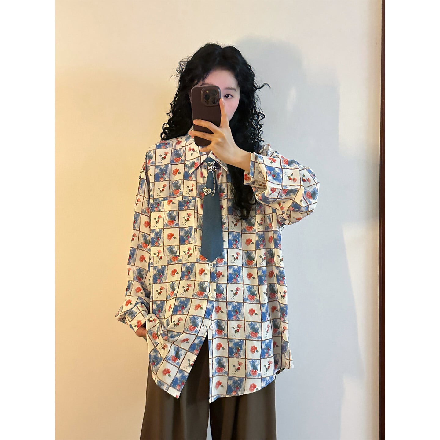 ♥チェック柄ネックレス付きシャツ!【UATONLINEシリーズ】★シャツ★ ネクタイ付き ユニセックス トップス 長袖シャツ チェック柄