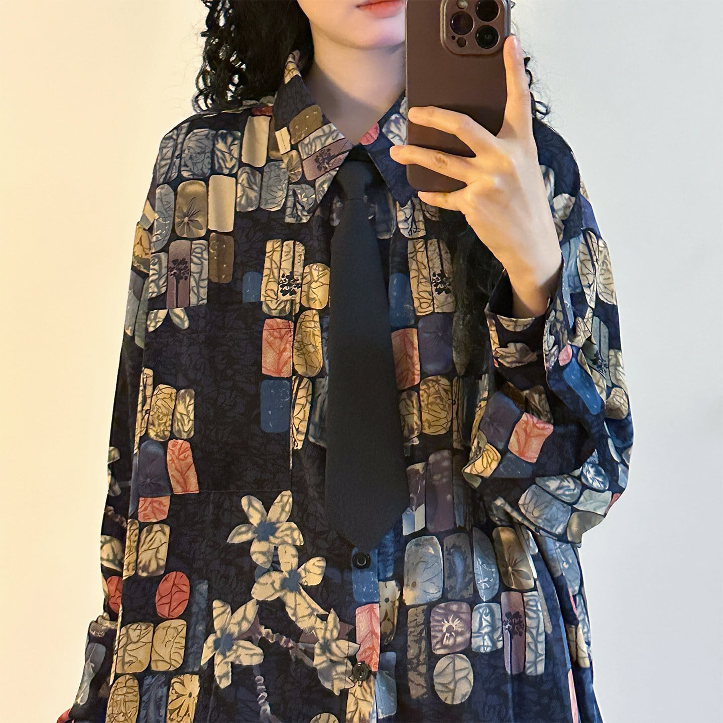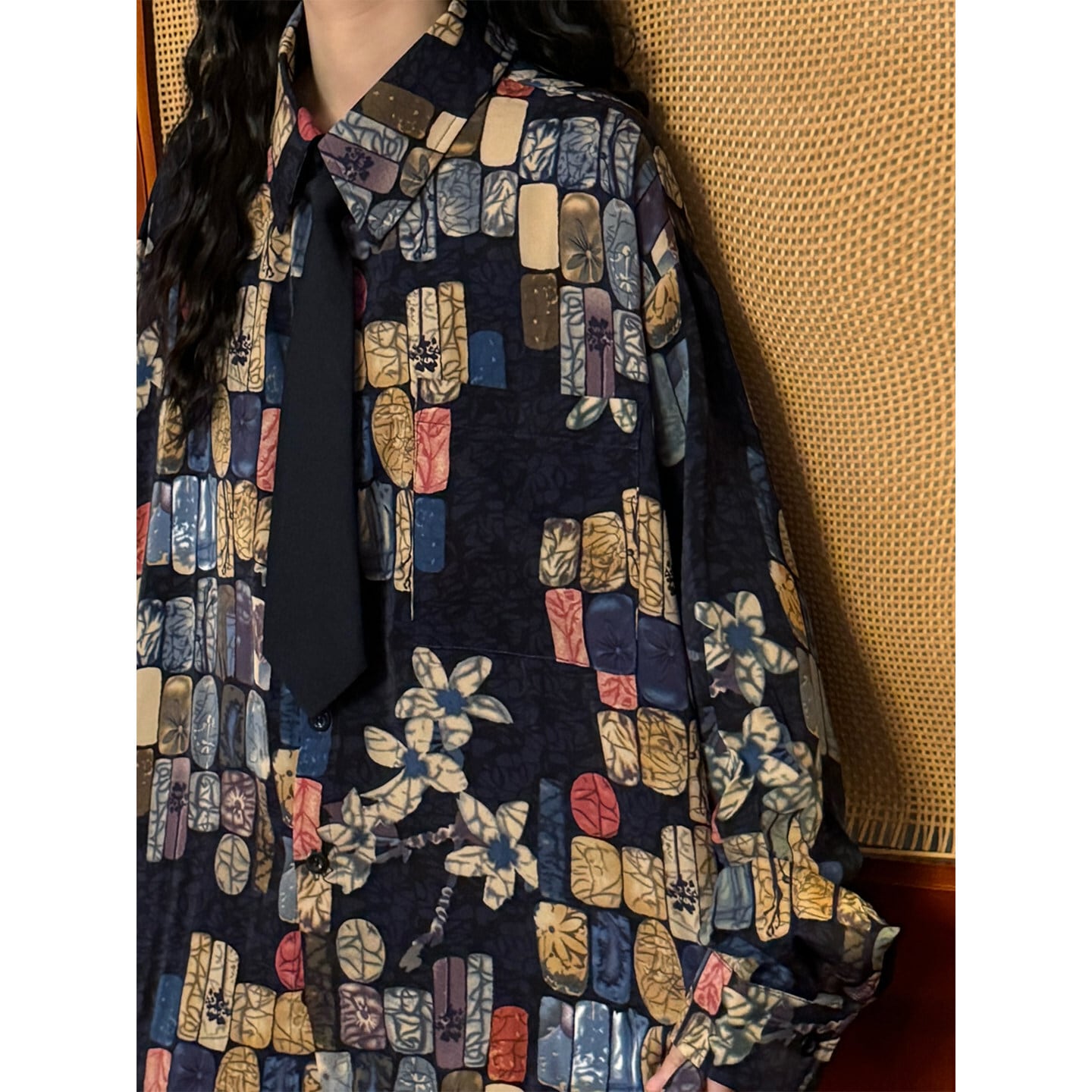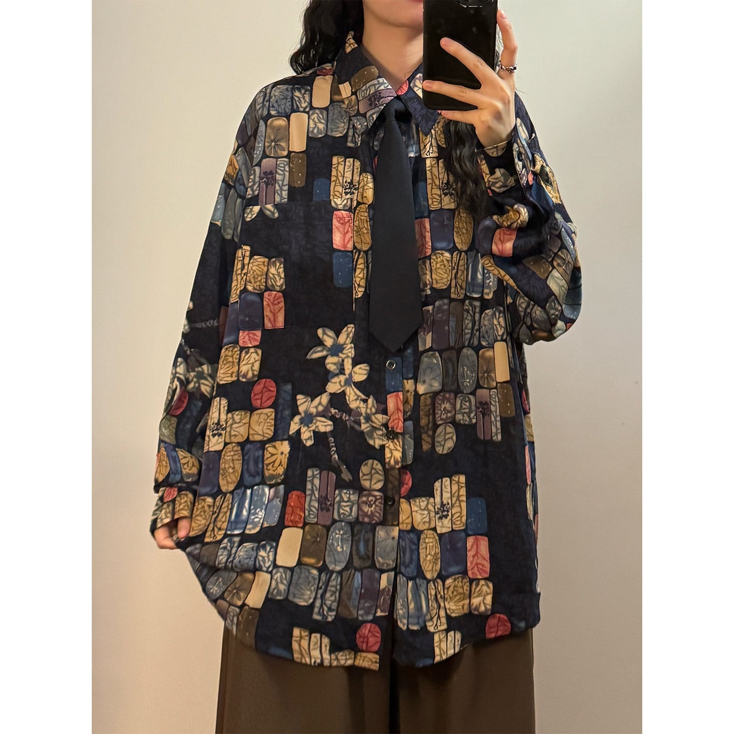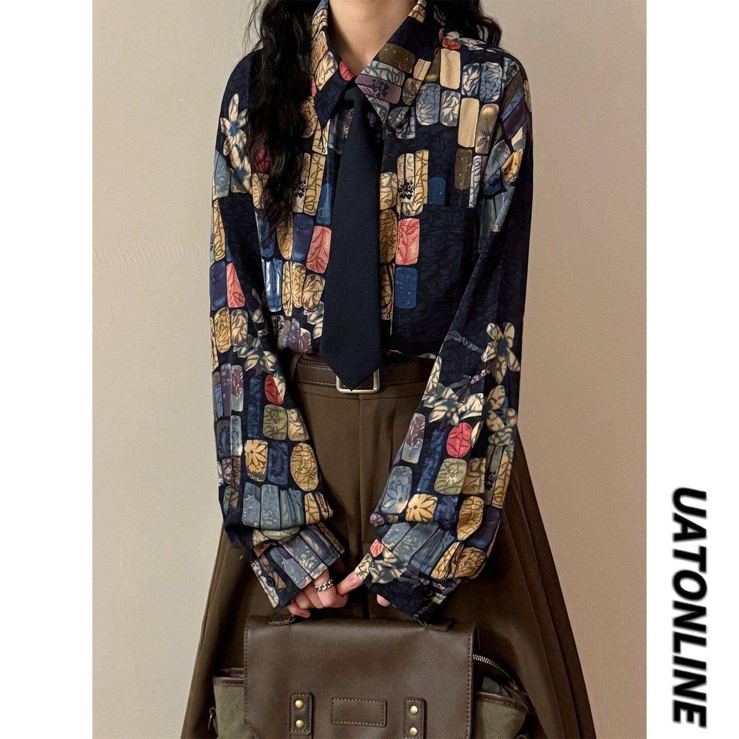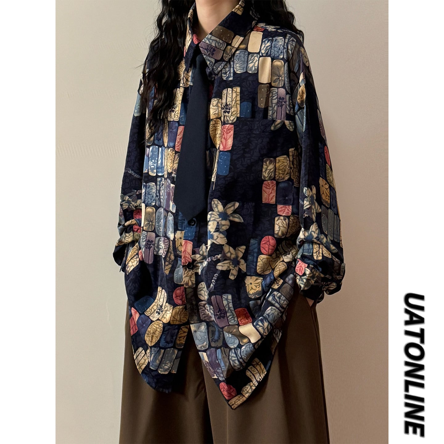 ♥ベースの上に、幾何学のアクセント!【UATONLINEシリーズ】★シャツ★ ネクタイ付き ユニセックス トップス 長袖シャツ チェック柄