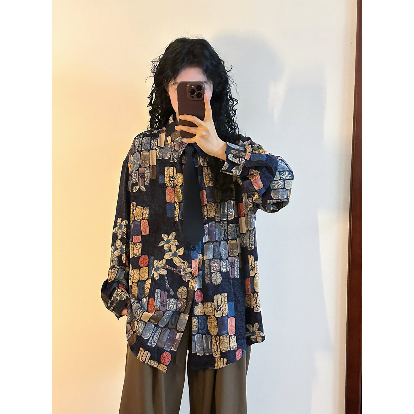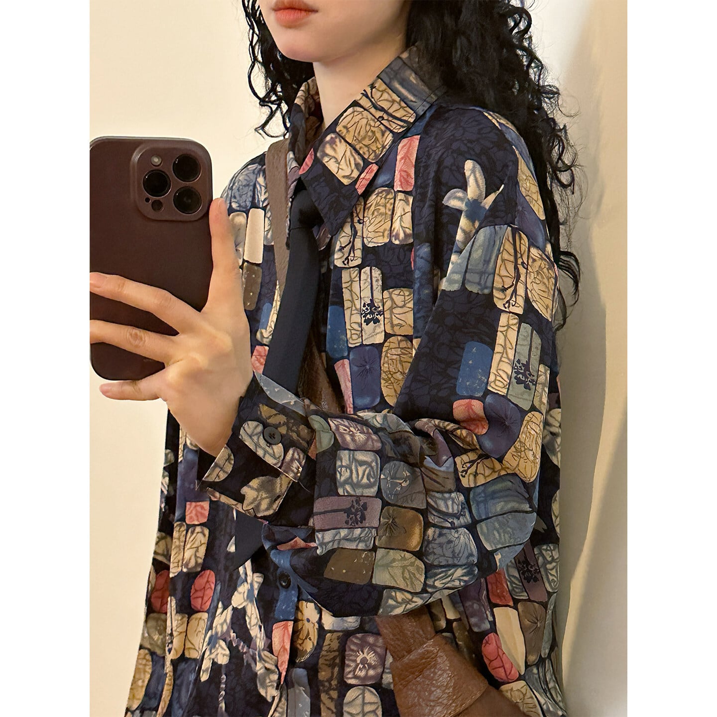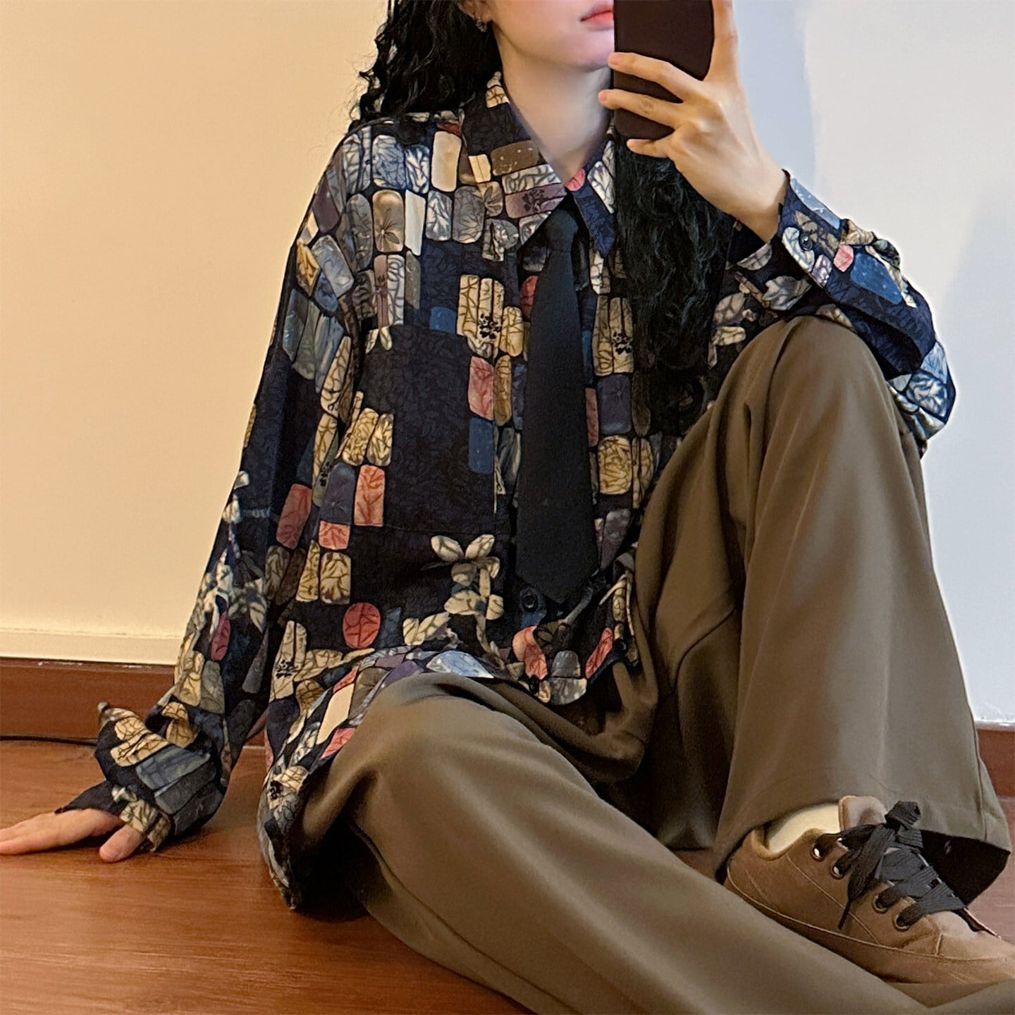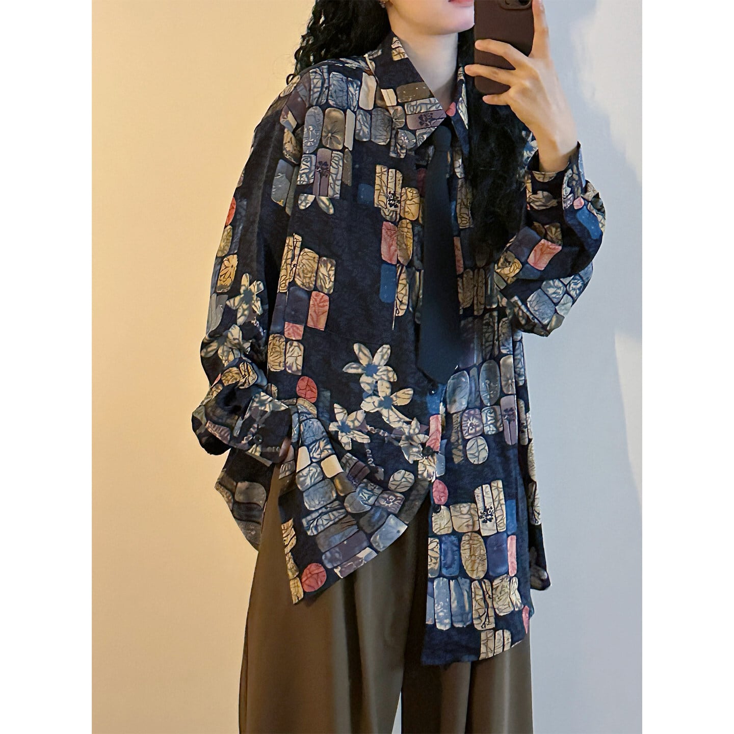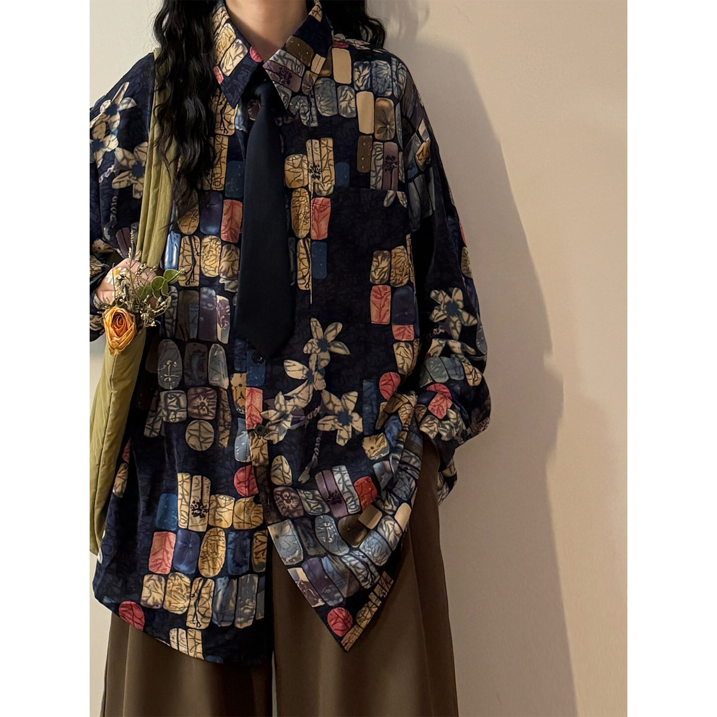 ♥ベースの上に、幾何学のアクセント!【UATONLINEシリーズ】★シャツ★ ネクタイ付き ユニセックス トップス 長袖シャツ チェック柄