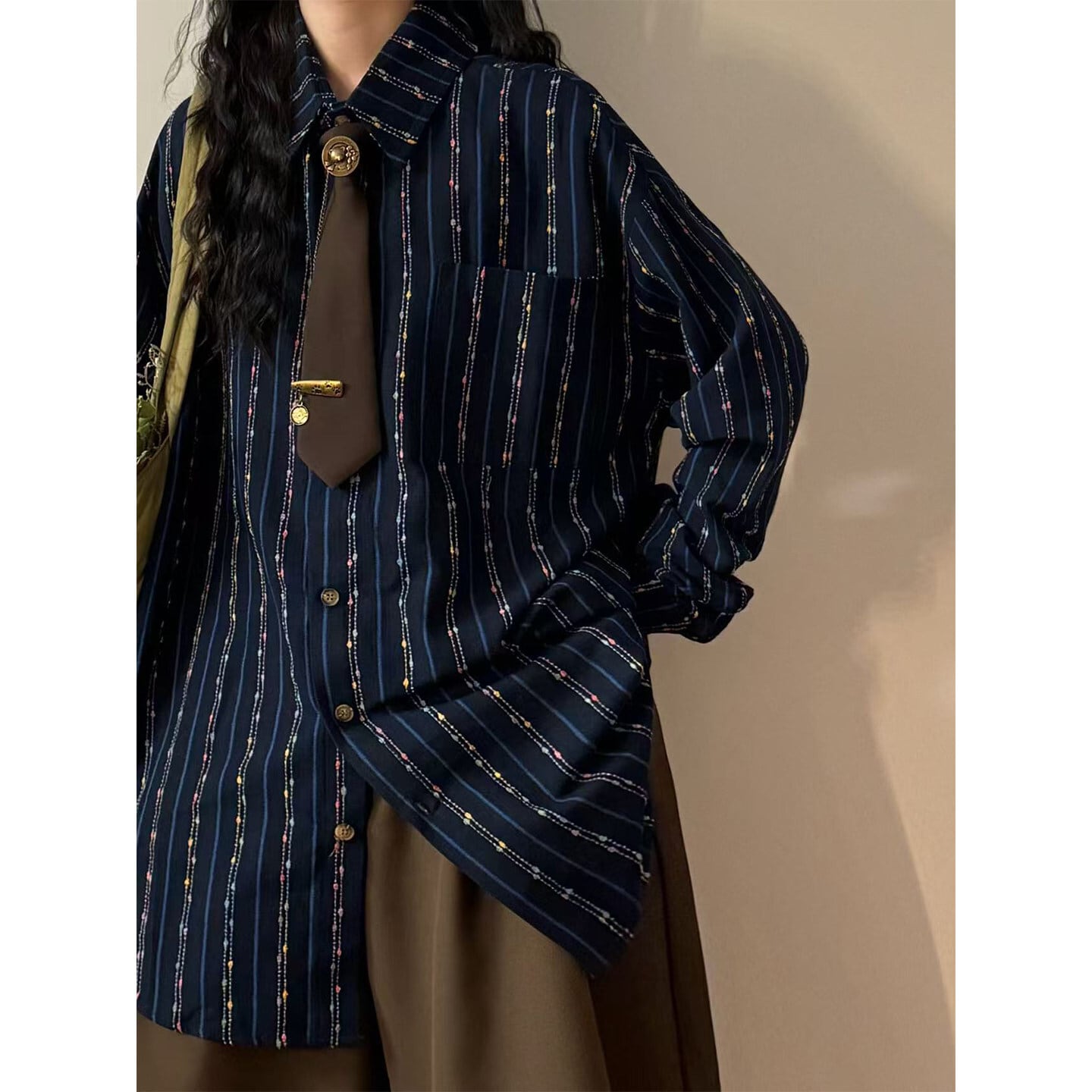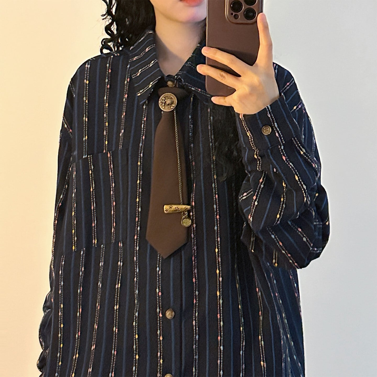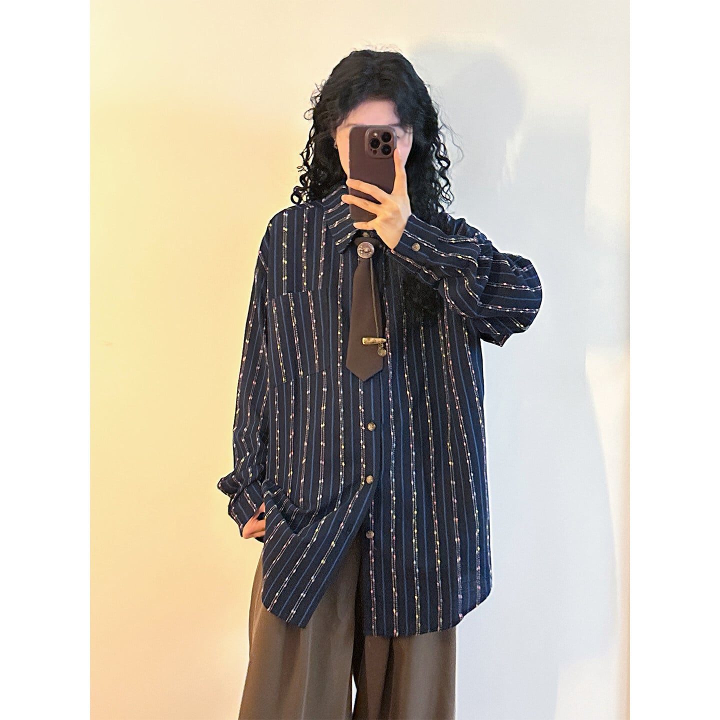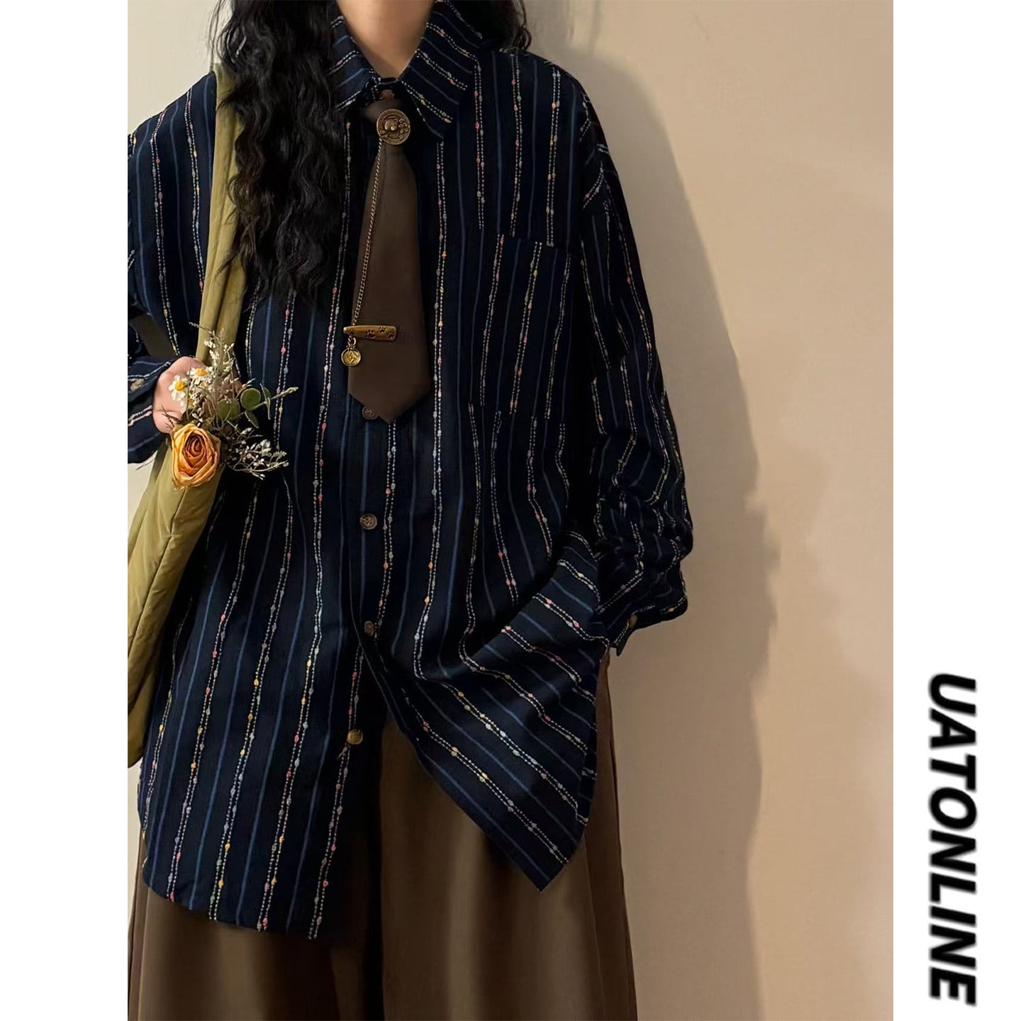 ♥ストライプの古典、レトロの呼吸!【UATONLINEシリーズ】★シャツ★ ネクタイ付き ユニセックス トップス 長袖シャツ 縦縞 縞模様