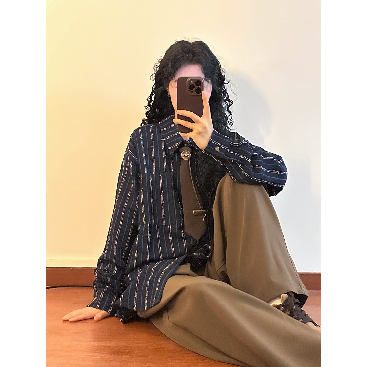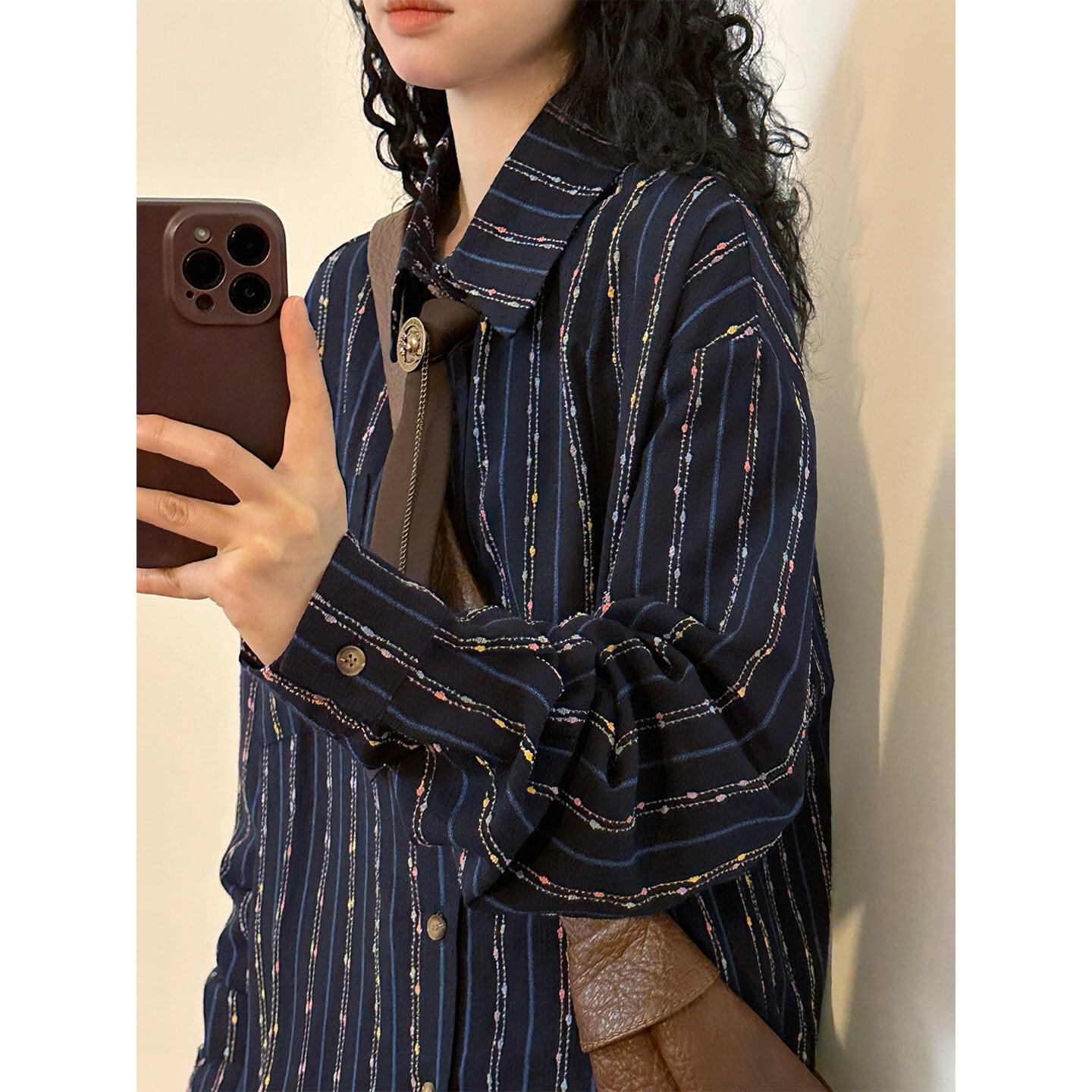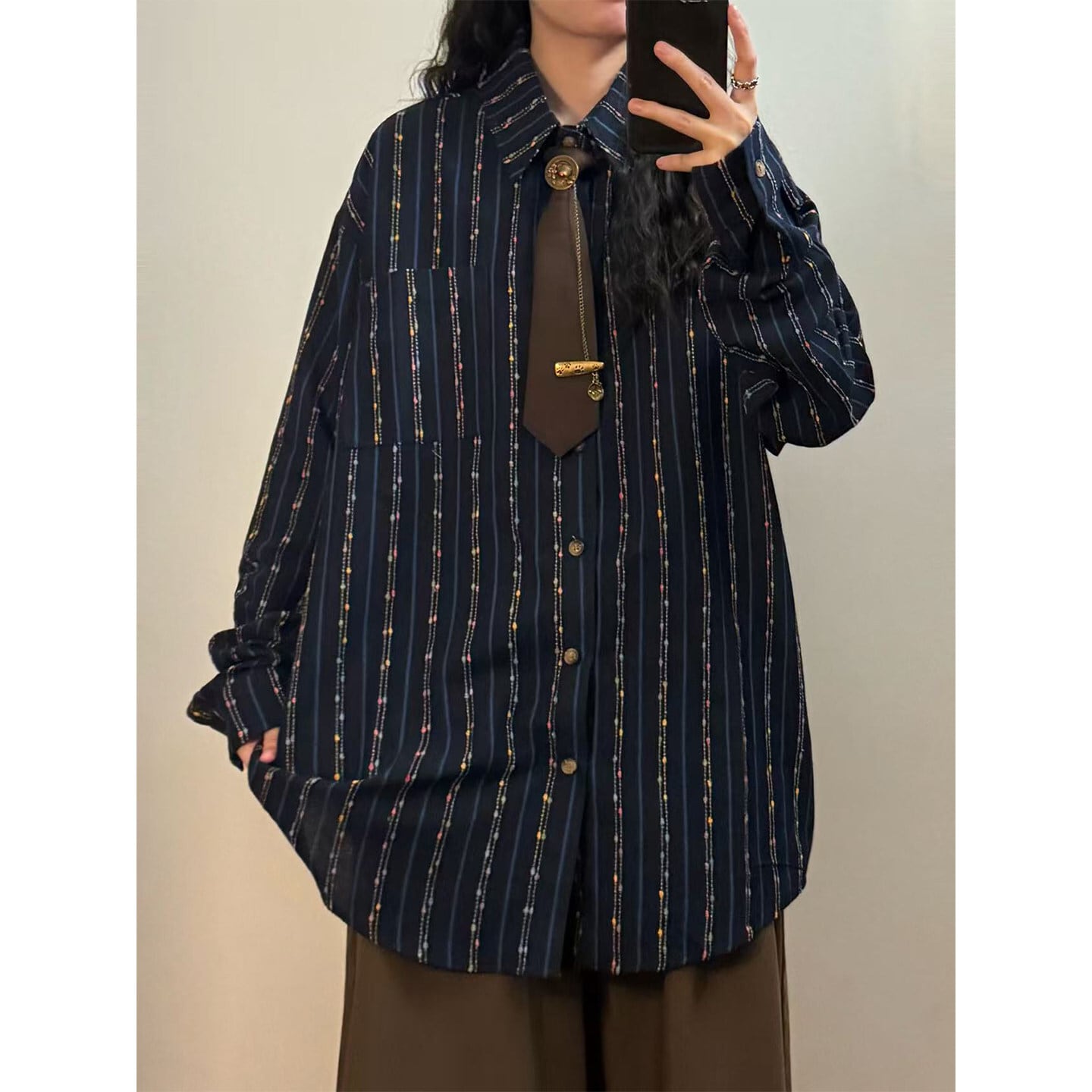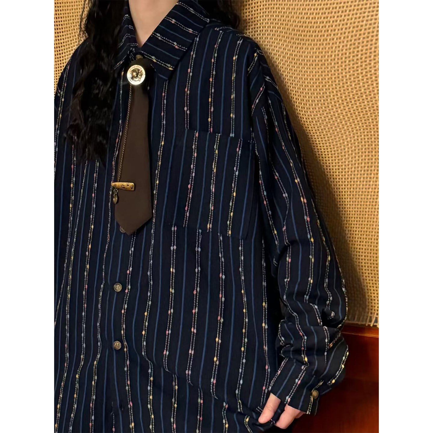 ♥ストライプの古典、レトロの呼吸!【UATONLINEシリーズ】★シャツ★ ネクタイ付き ユニセックス トップス 長袖シャツ 縦縞 縞模様