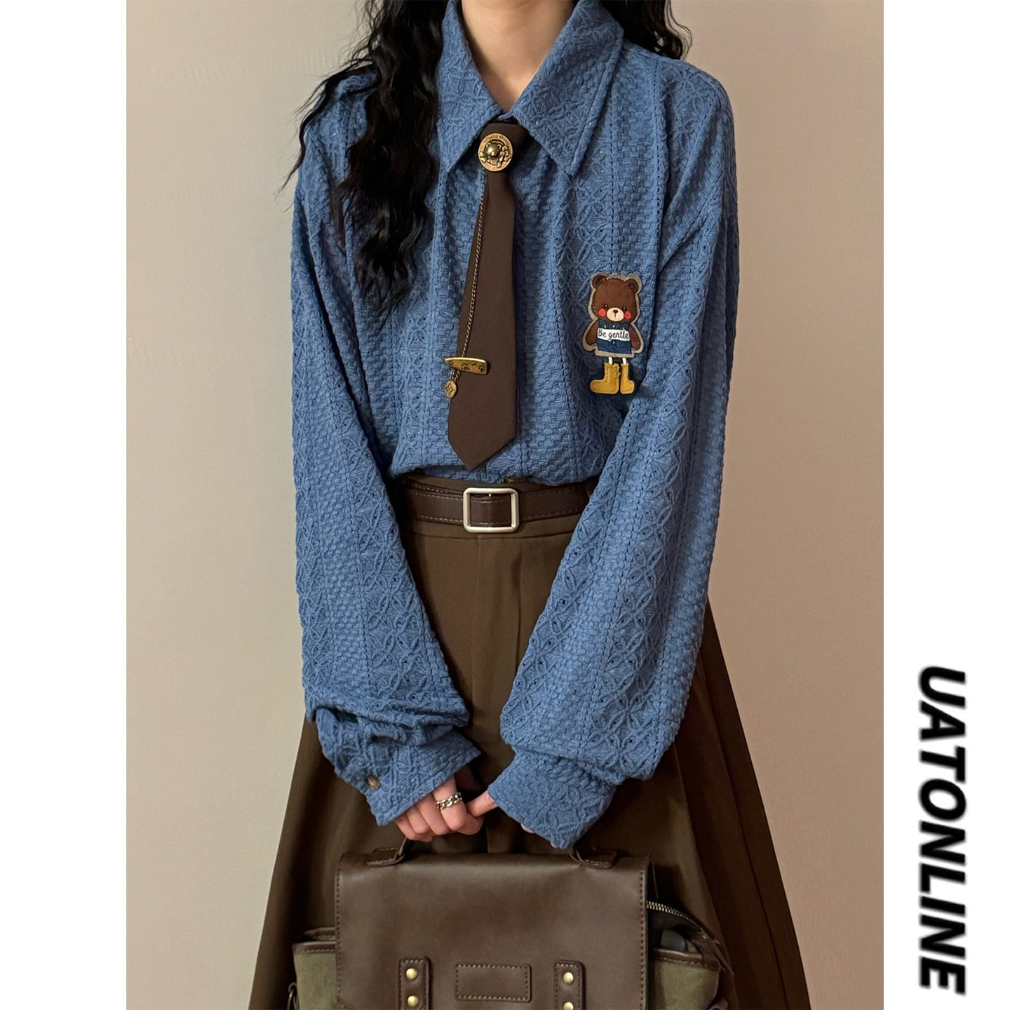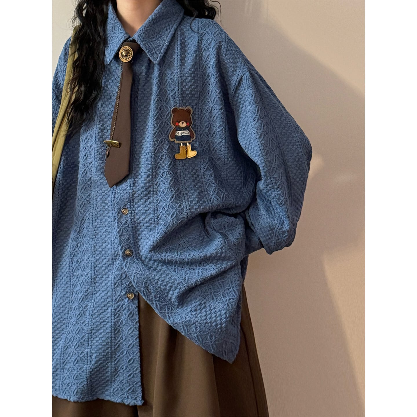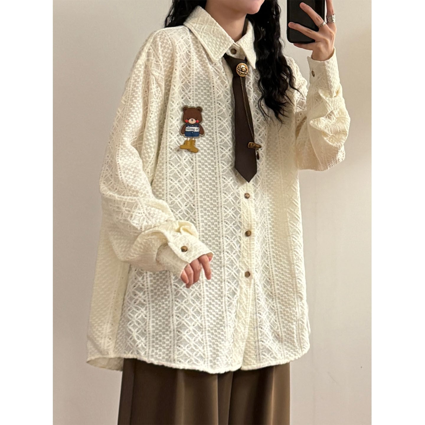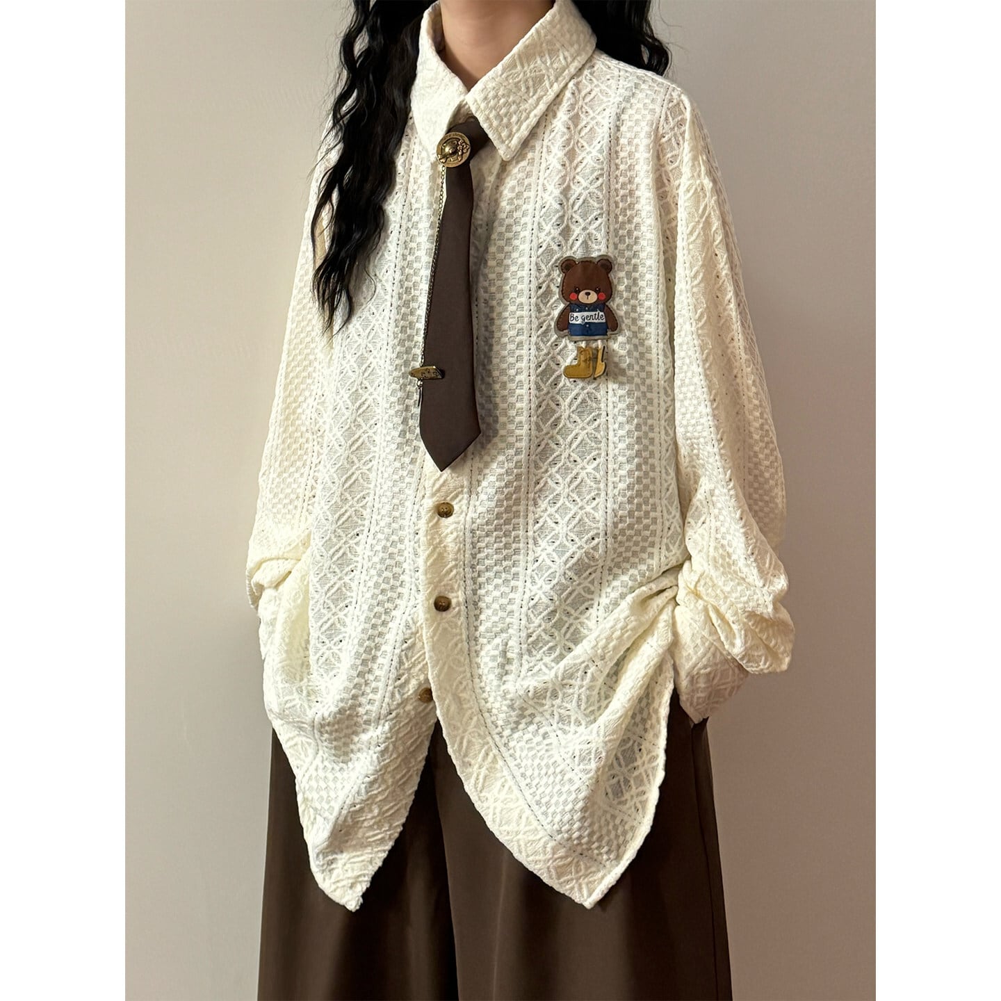 ♥ミニマルは形、肌理は魂!【UATONLINEシリーズ】★シャツ★ 2color ネクタイ付き ユニセックス トップス 長袖シャツ 熊 カートゥーン
