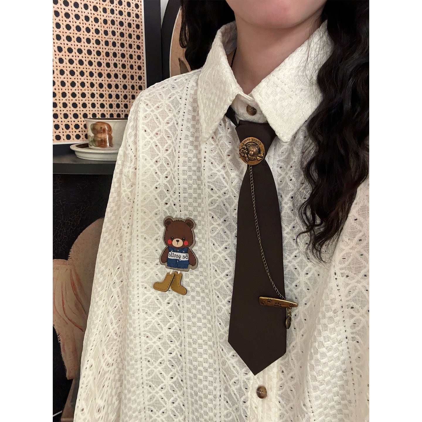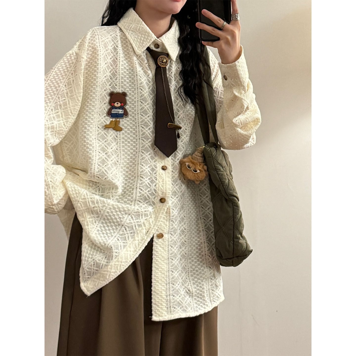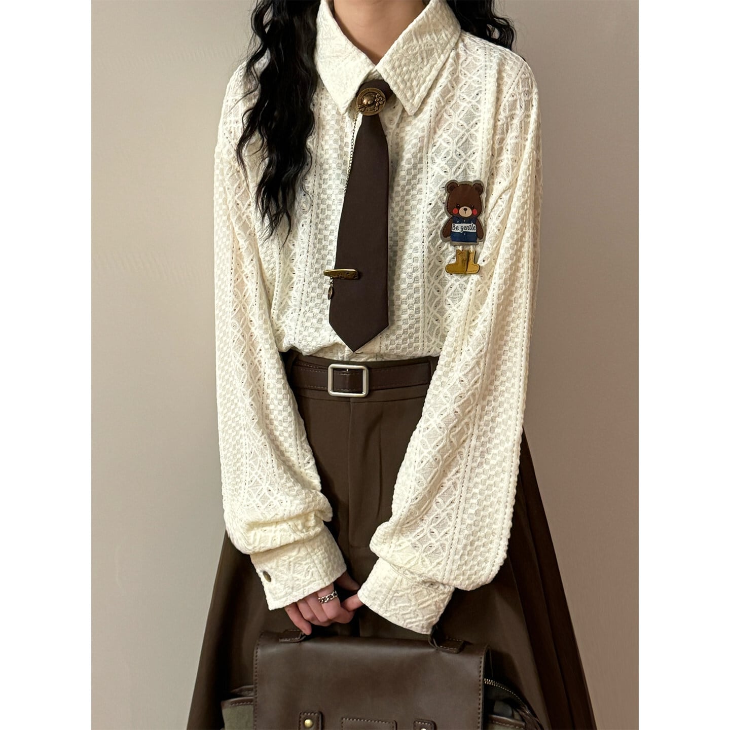♥ミニマルは形、肌理は魂!【UATONLINEシリーズ】★シャツ★ 2color ネクタイ付き ユニセックス トップス 長袖シャツ 熊 カートゥーン