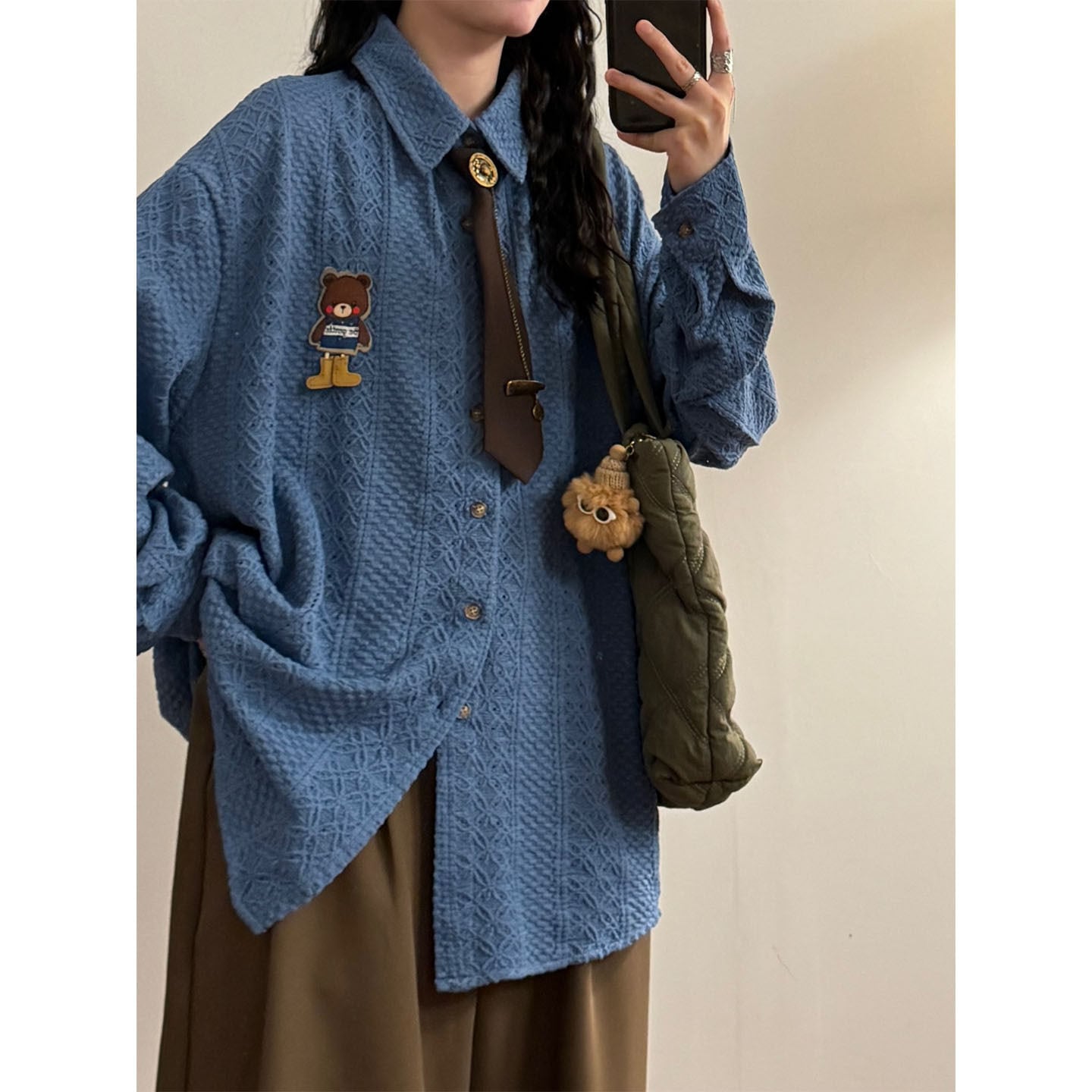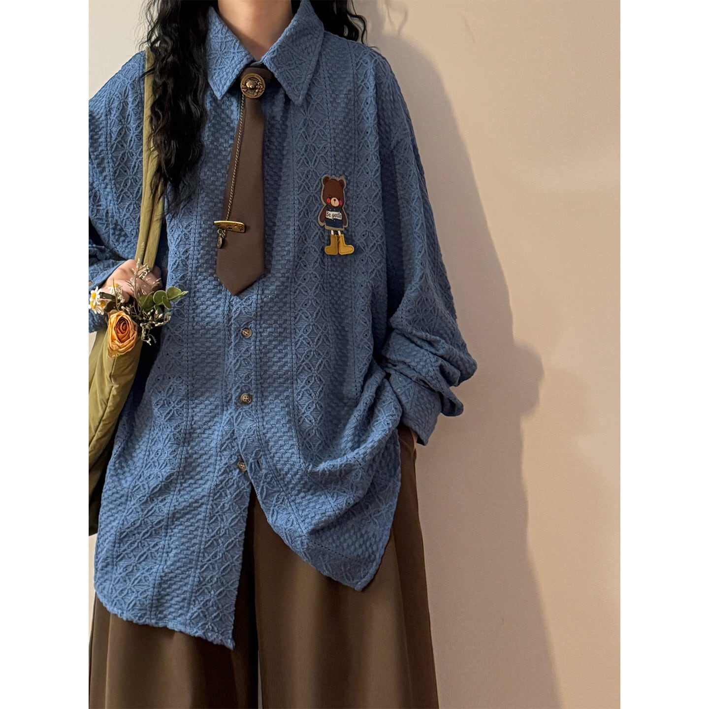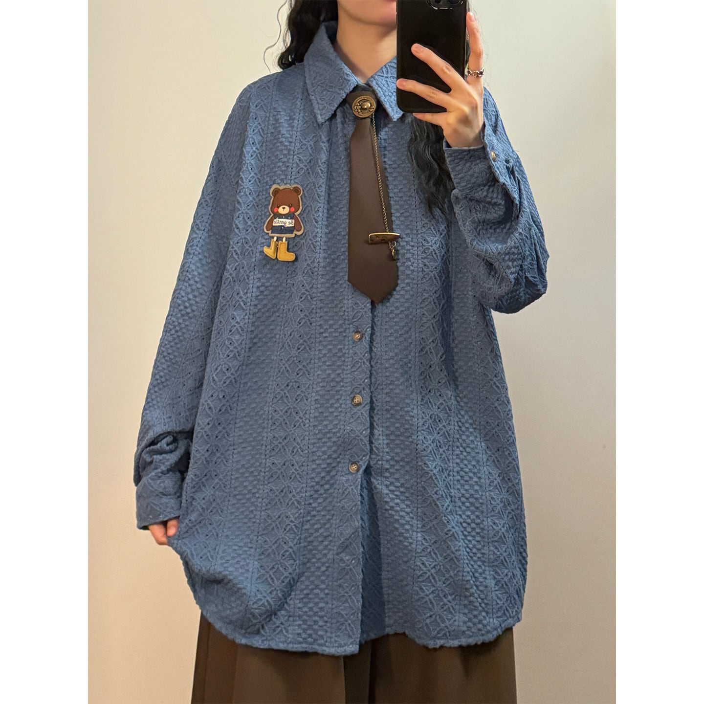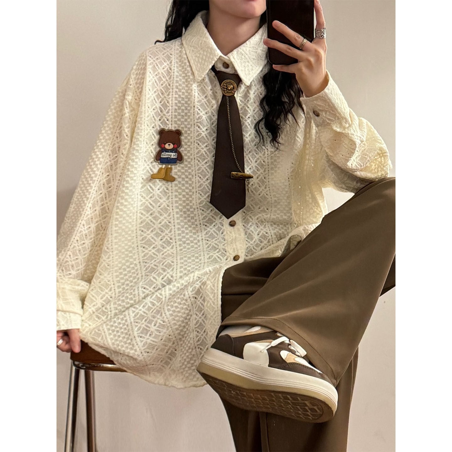 ♥ミニマルは形、肌理は魂!【UATONLINEシリーズ】★シャツ★ 2color ネクタイ付き ユニセックス トップス 長袖シャツ 熊 カートゥーン