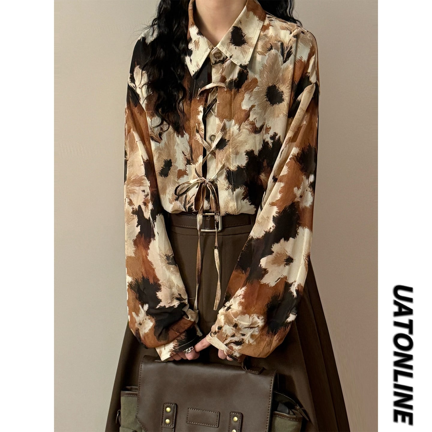 ♥一枚で纏う、レトロな春!【UATONLINEシリーズ】★シャツ★ 2color ユニセックス トップス 長袖シャツ 花柄シャツ