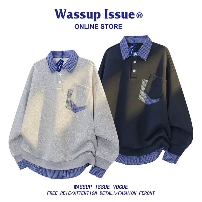 ♥オフの一日を着こなす必須トップス!【WSシリーズ】★POLOシャツ★ 2color トップス ユニセックス トップス チェック柄 青 灰