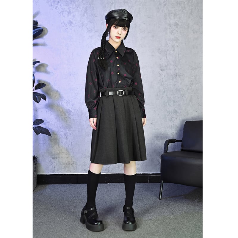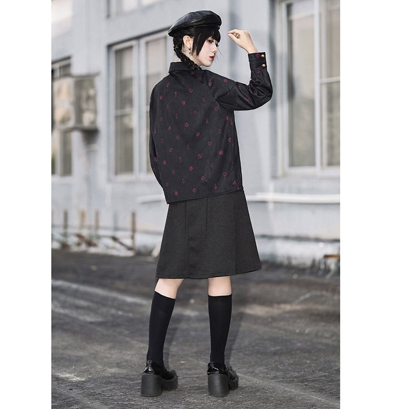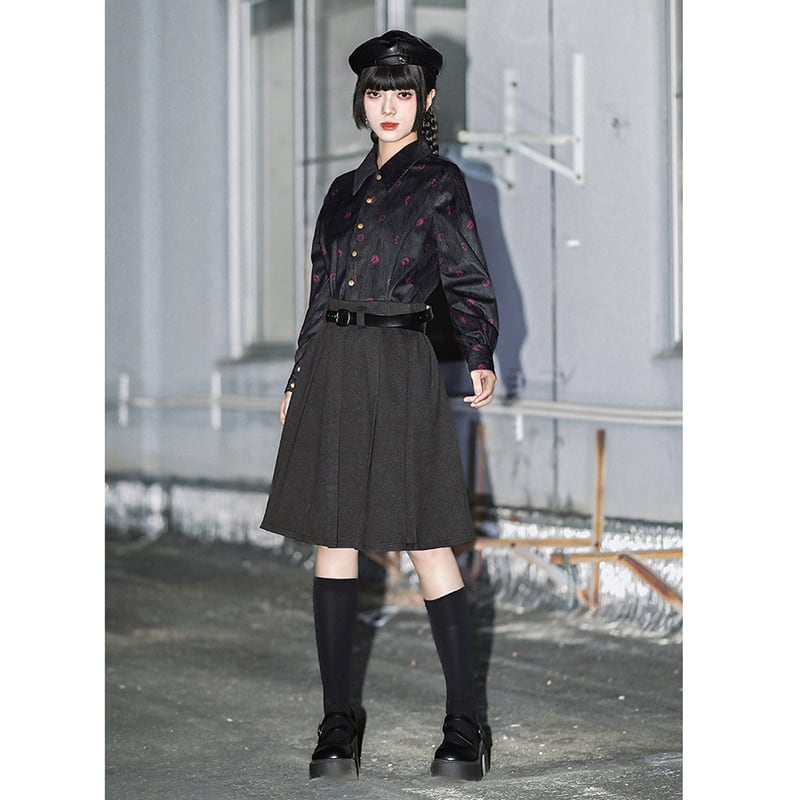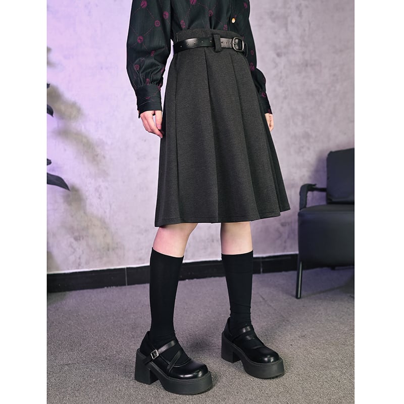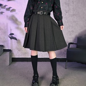 ♬厚手の秋冬素材が、確かな温もりを包む!【古怪舍---灰調晚風シリーズ】★スカート★ ボトムス 厚て レトロ プリーツスカート 五分丈 ラシャ