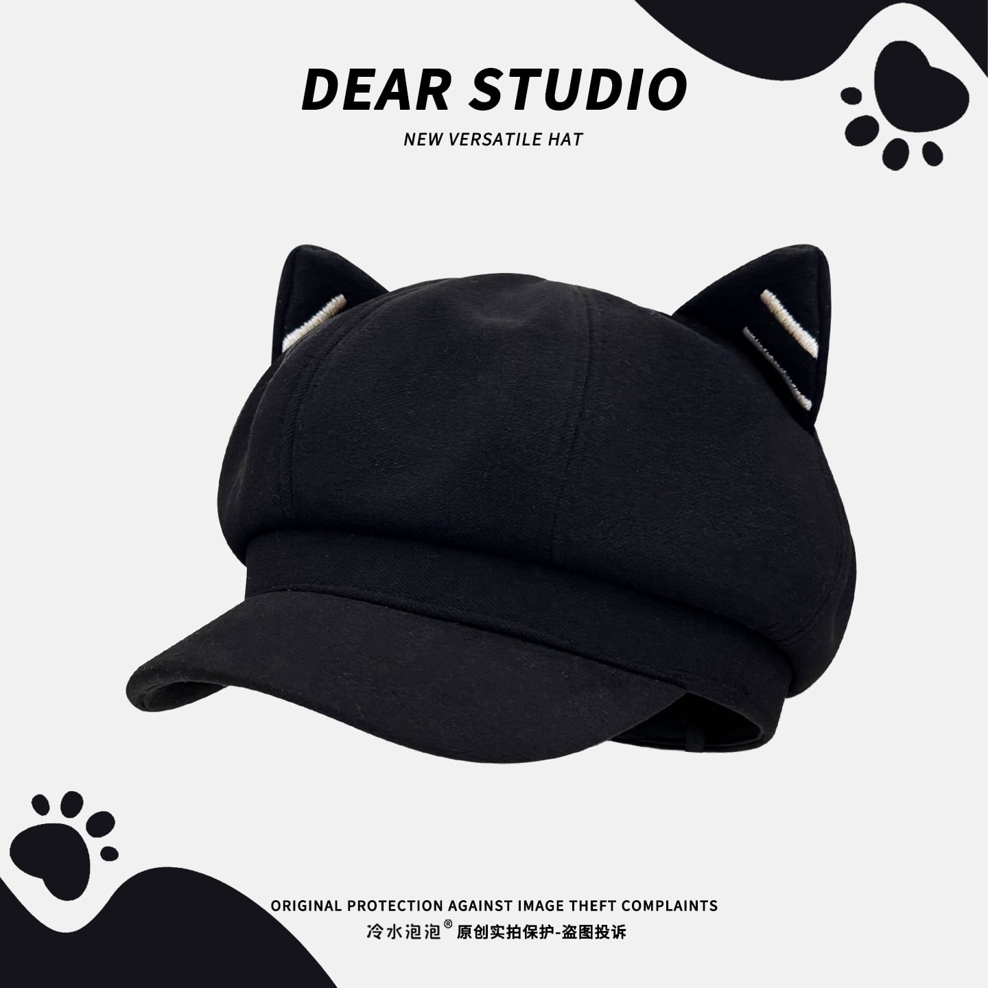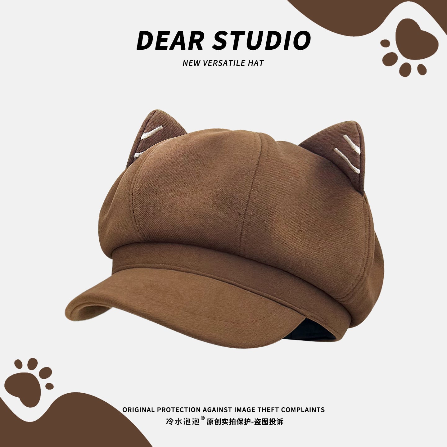 ♥動く猫耳、一枚で何役も!【Dear studioシリーズ】★帽子★ 5color ベレー帽 レトロ レディース ねこ 猫 ネコ 可愛い