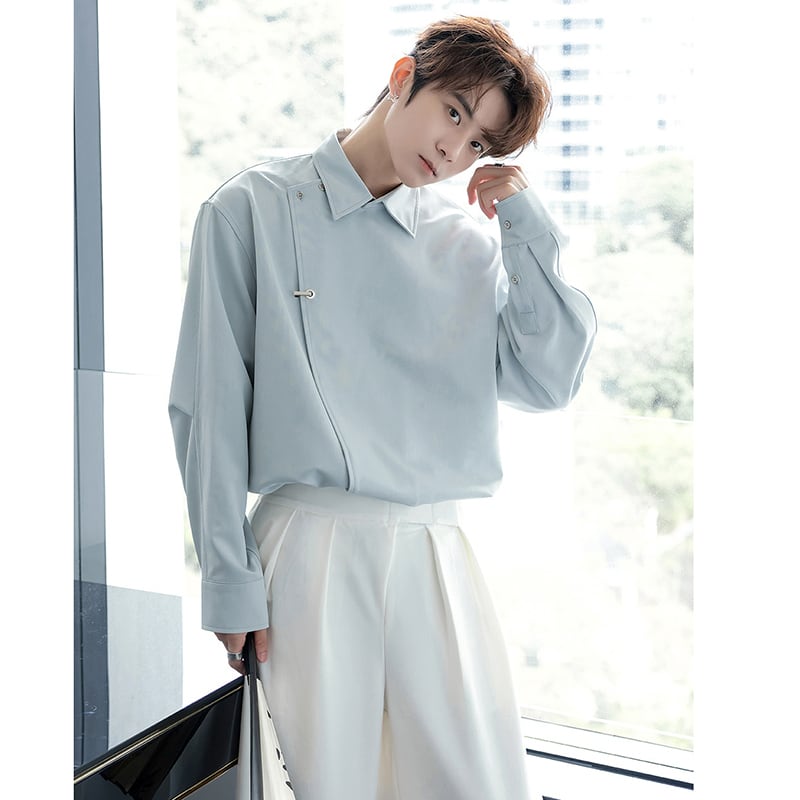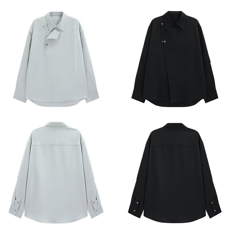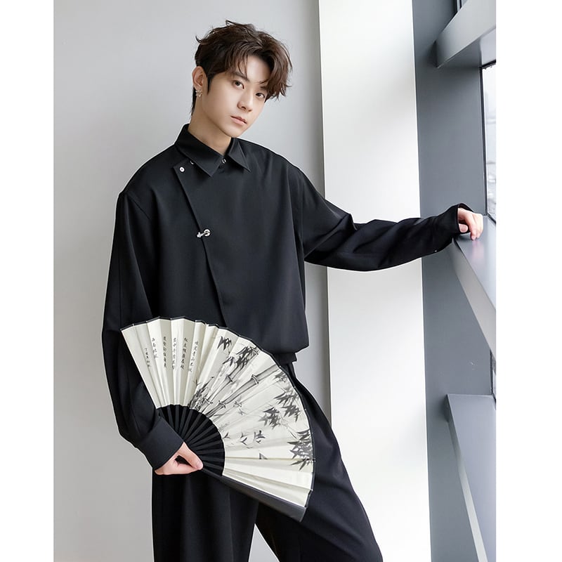 ♥新しい中華スタイルは、自由そのもの!【CHICERROシリーズ】★チャイナ風シャツ★ 2color ユニセックス トップス 長袖 男女兼用 メンズ 黒 青 金属ボタン
