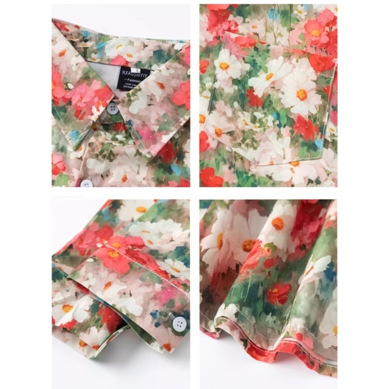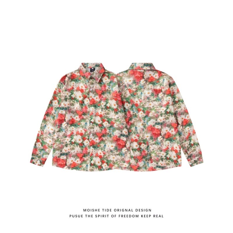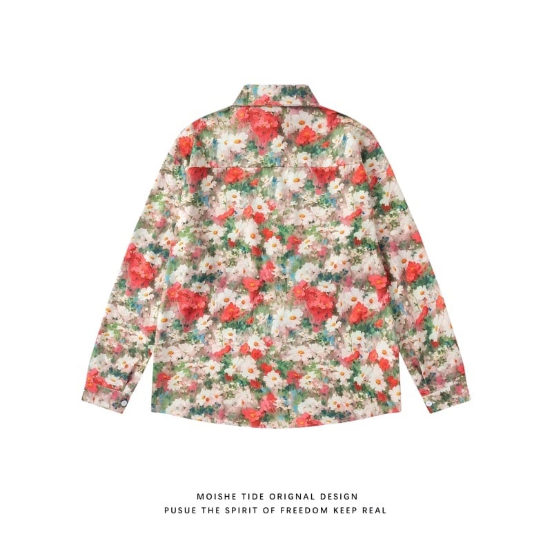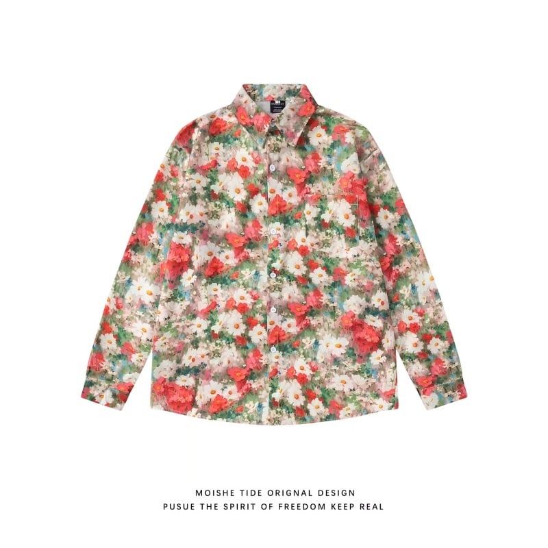❤花咲く彩りシャツ!【MOISHE TIDEシリーズ】★シャツ★ トップス 長袖シャツ 彩り 男女兼用 レディース 花柄シャツ 合わせやすい
