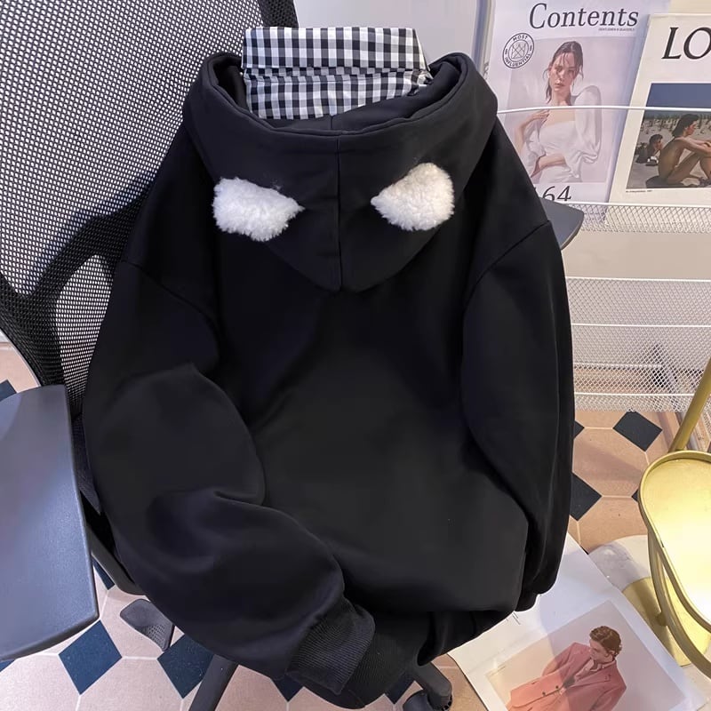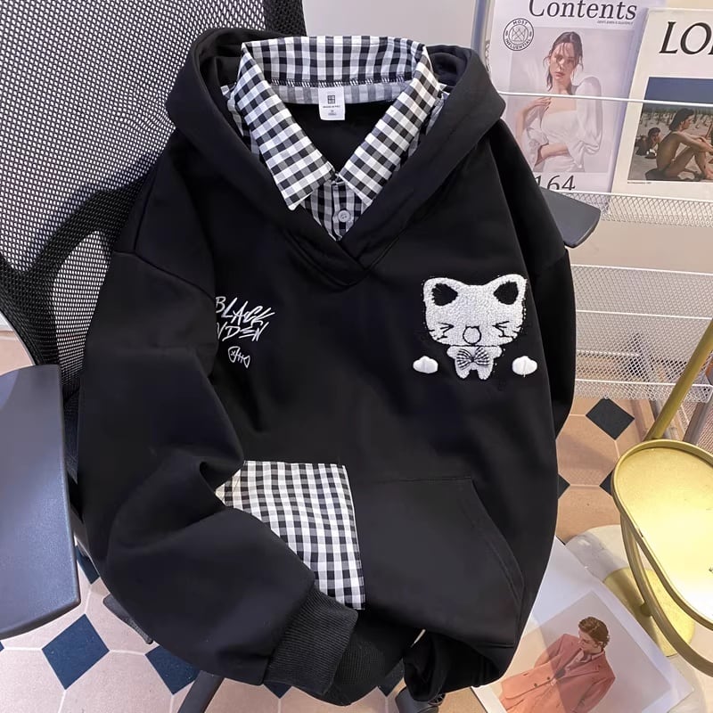❤可愛さ爆発!萌え度MAX!【DWYSシリーズ】★パーカー★ 2color トップス カジュアル 男女兼用 メンズ レディース 猫 ネコ チェック柄