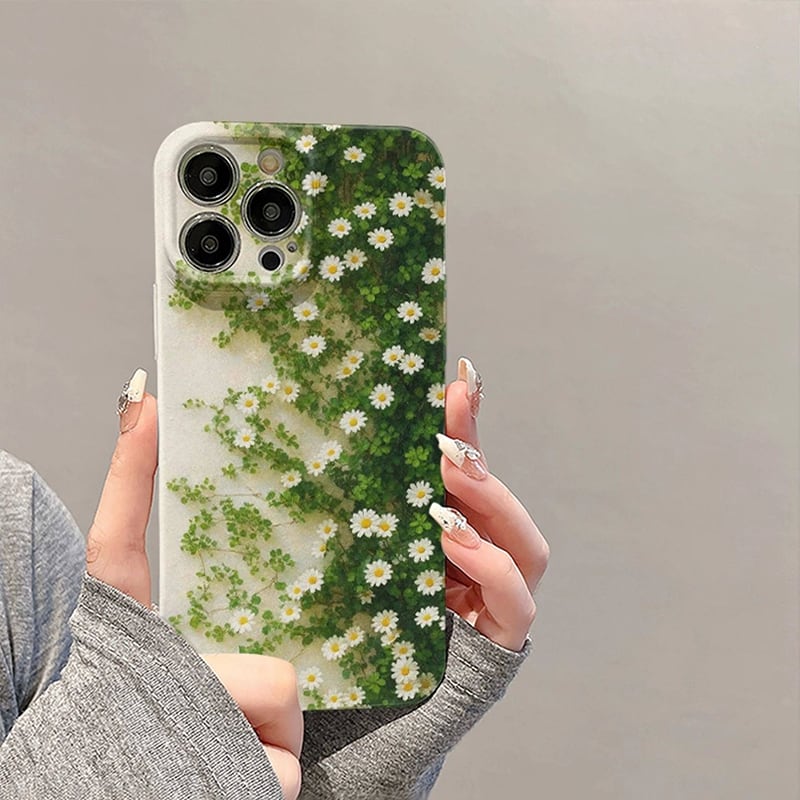 ♥落書きの蔦、白い花を軽やかに描く!【MEIBAOSHIシリーズ】★携帯ケース★ 花柄 アイホン iPhone17 iPhone16 iPhone15 iPhone14 iPhone13/12/11