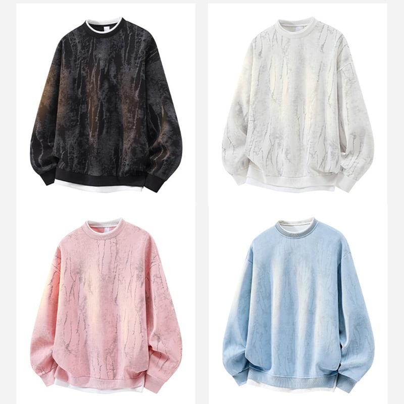 ♥アートな風合い、日常に着る!【WSシリーズ】★トップス★ フェイクレイヤード 4color スウェット ユニセックス メンズ 大きいサイズ 黒 青 白