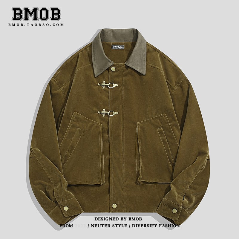 ♥ボタンで時間を留め、襟がトレンドを導く!【BMOBシリーズ】★ジャケット★ ユニセックス 2color アウター 金属ボタン PU襟 切り替え