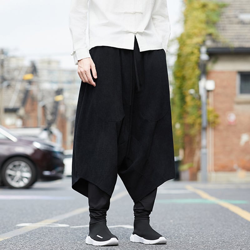 ♥コーデュロイのレイヤードパンツ!【MUMUシリーズ】★ズボン★ 2color ボトムス ユニセックス カジュアルパンツ フェイクレイヤード コーデュロイ