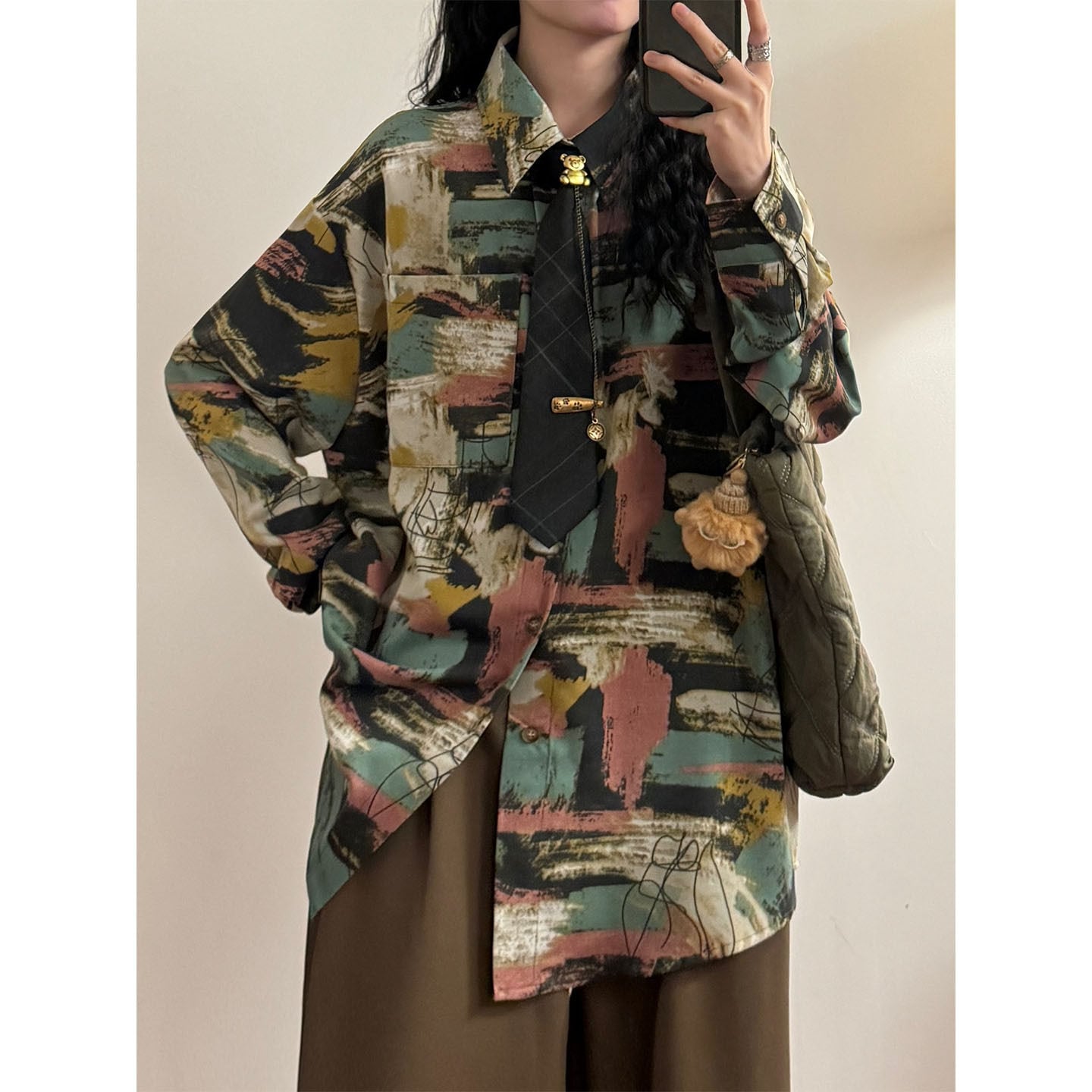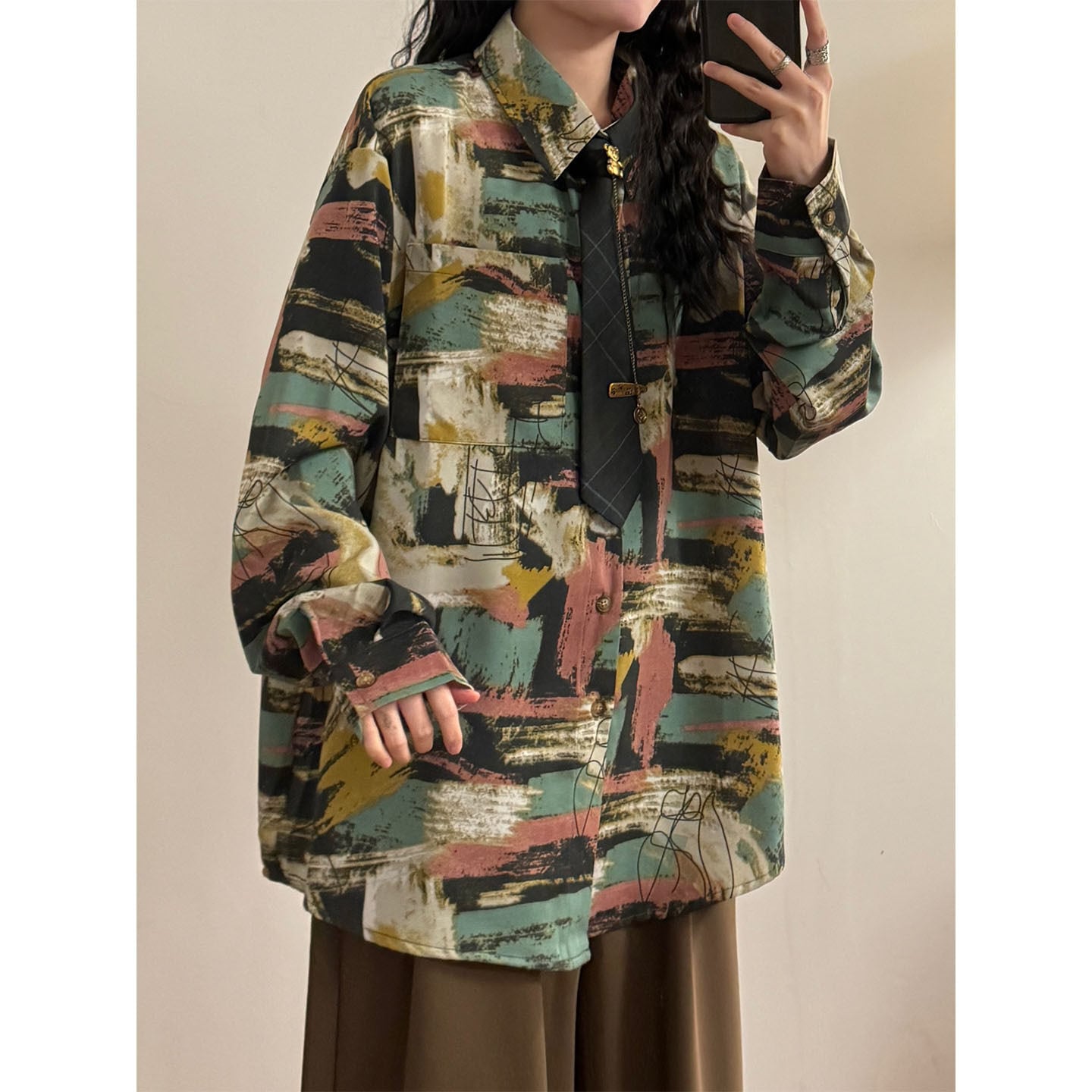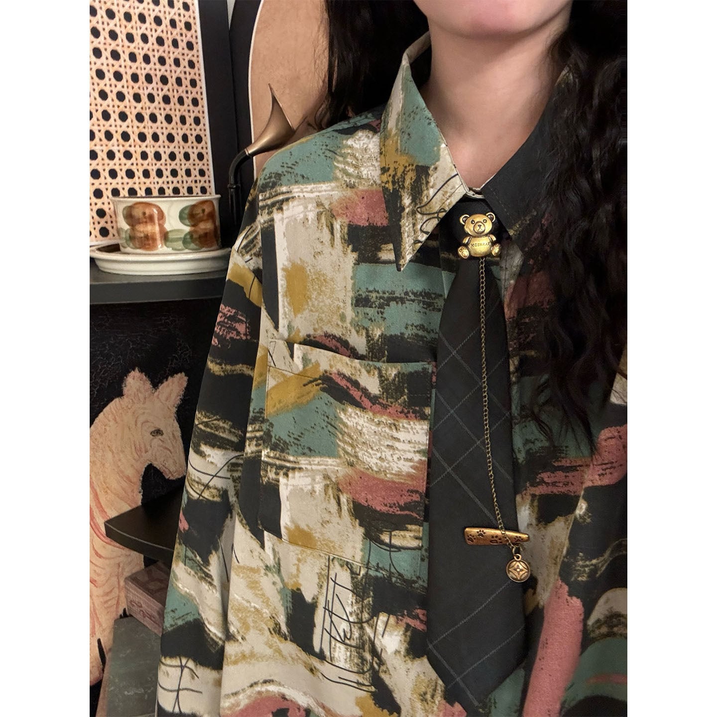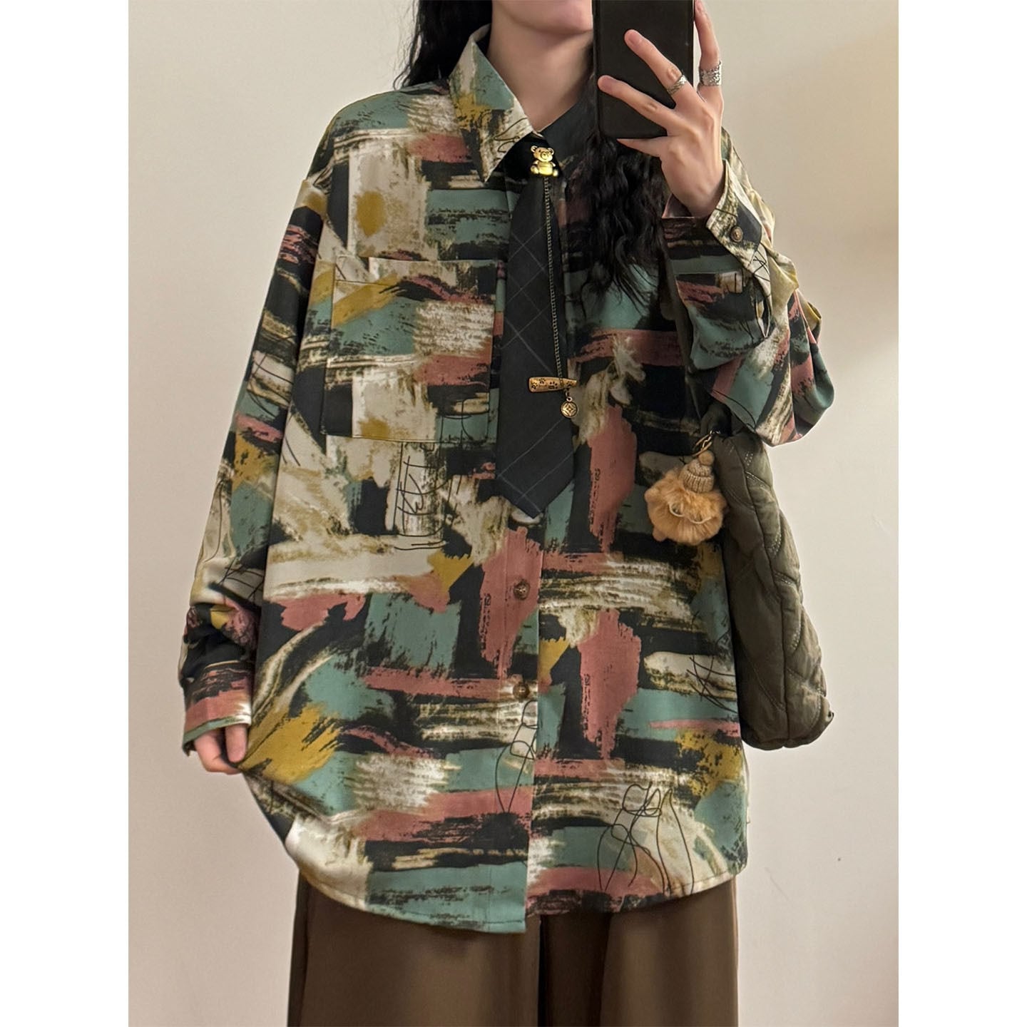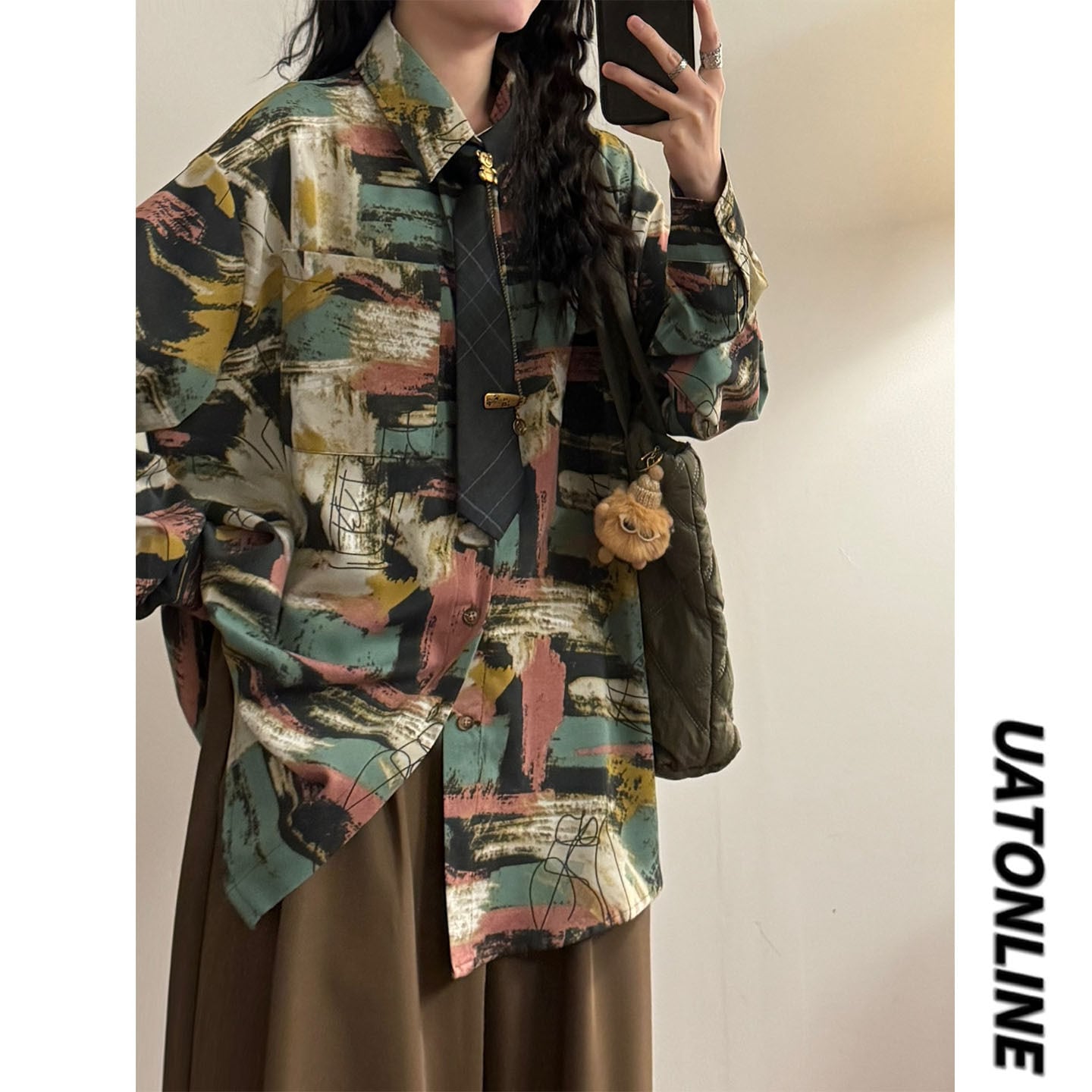 ♥日常をアートに変える、ラガーシャツ!【UATONLINEシリーズ】★シャツ★ ネクタイ付き ユニセックス トップス 長袖シャツ