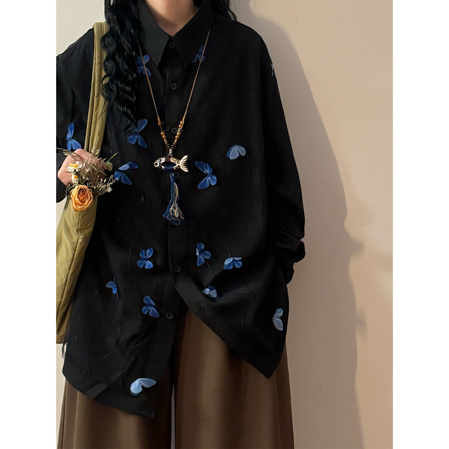 ♥立体的な蝶々シャツ!【UATONLINEシリーズ】★シャツ★ ユニセックス トップス 長袖シャツ 蝶々