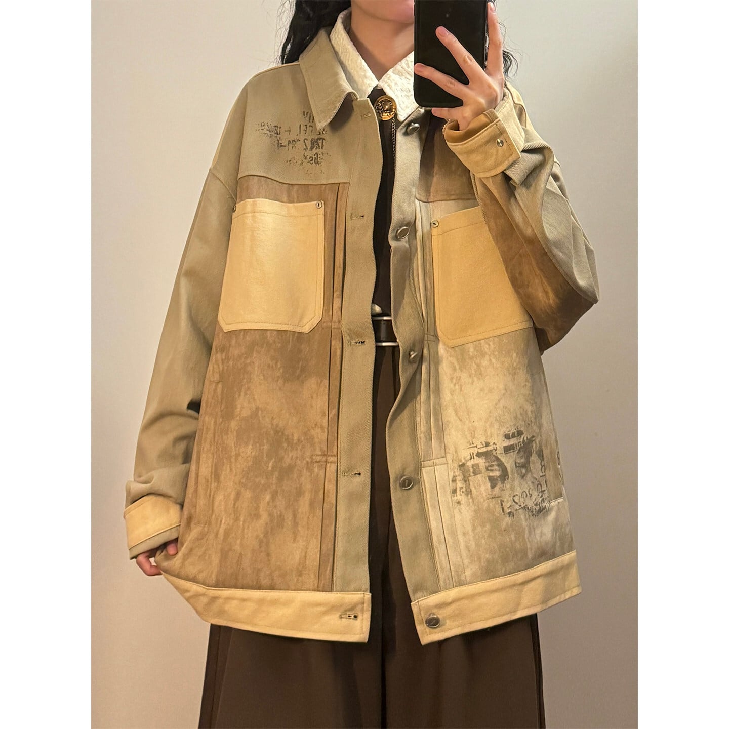 ♥レトロとモダンが交差する、遊び心のある一着!【UATONLINEシリーズ】★ジャケット★ ユニセックス アウター 配色 カジュアル 切り替え レトロ色