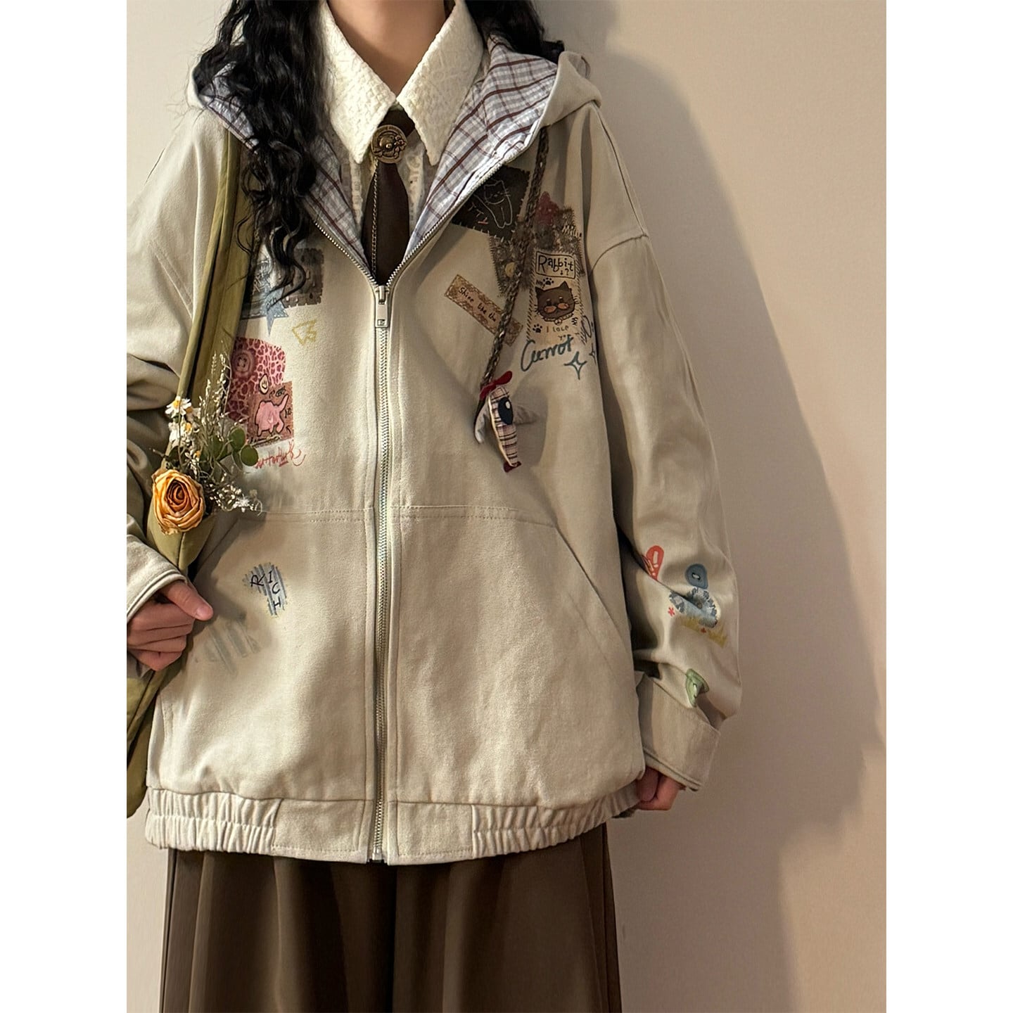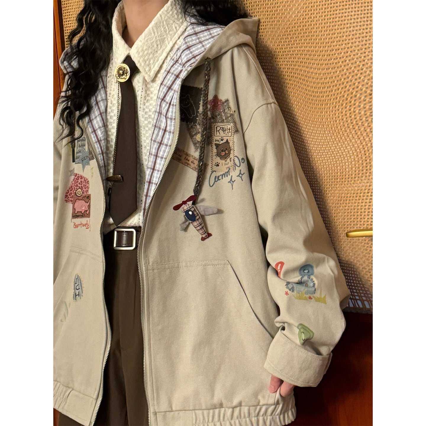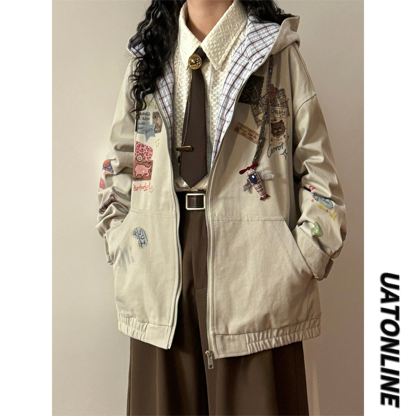 ♥フード付きで軽やかな春へ!【UATONLINEシリーズ】★ジャケット★ ユニセックス アウター チェック柄 カジュアル レトロ色