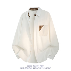 ♥大人の脱ぎっぷり。シンプルで、気ままに!【WSシリーズ】★シャツ★ 3color ユニセックス トップス チェック柄 切り替え 青 白